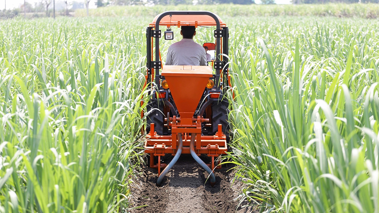 รถแทรกเตอร์ติดเครื่องฝังปุ๋ย.ใช้ชีวิตเป็นมนุษย์เงินเดือน ซ่อมเครื่องยนต์ขนาดใหญ่ในเมืองกรุงมาตั้งแต่อายุ 19 ...ผ่านไป 20 ปี มีเงินเก็บสี่หมื่น กริชอารักษ์ รักษาผล ตัดสินใจกลับบ้านเกิด ต.บ่อใหญ่ อ.บรบือ จ.มหาสารคาม ตั้งความหวังจะขอแบ่งที่ดินไร่อ้อยจากพ่อแม่มาทำกินเองด้วยห่างเหินชีวิตชาวไร่ไปนาน การลงมือในช่วงแรกเป็นได้แค่ลูกมือ...แต่เพราะผ่านชีวิตคนเมืองมาพอสมควร ที่ใช้ชีวิตปรับตัวแข่งกับคน ระหว่างเป็นลูกมือได้ข้อคิดจากการสังเกตสังกาการทำไร่อ้อยของพ่อแม่ยังคงยึดถือวิธีแบบเก่า ถึงเวลาโรงงานอ้อยเปิดเป็นอันได้เวลาตัดอ้อยส่งเข้าโรงหีบอ้อย แต่ละปีหลังหักต้นทุนค่าพันธุ์อ้อย ปุ๋ย แรงงาน เงินแทบไม่เหลือ กำจัดวัชพืช. พรวนดินพร้อมใส่ปุ๋ย.และเมื่อ สยามคูโบต้า และกลุ่มน้ำตาลวังขนาย ทำโครงการส่งเสริมให้เกษตรกรในพื้นที่รอบโรงงานน้ำตาล ปลูกอ้อยด้วยนวัตกรรม Kubota (agri) solutions (KAS) จึงขอร่วมคณะดูชาวไร่ในจังหวัดชัยภูมิ นครราชสีมา และลพบุรี ปลูกอ้อยด้วยวิธีใหม่ ทำกันแบบไหนถึงกำไรงามได้กันไร่ละ 20–22 ตัน...ในขณะทำตามแบบพ่อแม่ได้แค่ 12 ตัน“การปลูกอ้อยแบบ KAS เน้นใช้เครื่องมือ เครื่องจักรเข้าไปช่วยให้ทำงานได้เร็ว ลดปัญหาแรงงาน และปรับวิธีการปลูกอ้อยใหม่ แบบแถวคู่ ไม่ยกร่อง นอกจากช่วยประหยัดต้นทุนกลบร่องอ้อย ช่วงที่ต้นอ้อยยังโตไม่เต็มที่ สามารถนำรถเข้าไปกำจัดวัชพืชได้ ช่วยให้ทำงานได้เร็ว ค่าใช้จ่ายถูกกว่าจ้างแรงงาน เลยอยากปรับเปลี่ยนวิธีการปลูกบ้าง แต่พ่อแม่กลัวถ้าปรับพื้นที่เปลี่ยนทั้งหมด หากไม่ได้ผลเหมือนอย่างที่ไปเห็นมา สิ้นปีมีหนี้แน่”ปี 2557/2558 กริชอารักษ์ จึงทดลองปลูกอ้อยแบบใหม่แค่ 1 ไร่ เผื่อไม่ได้ผลอย่างน้อยสิ้นปีรายได้ขาดหายไม่มากนัก กลบดินโคนอ้อยพร้อมชักร่องน้ำ. ส่วนวิธีปลูกเริ่มจากระเบิดดินด้านล่างแล้วใช้โรตารี่ปั่นให้ดินร่วน ลงไถผาน 3 แบบตีร่องคู่ ไม่ชักร่อง...ส่วนระหว่างร่องคู่ เว้นระยะห่าง 1.20 เมตร จากนั้นใช้พันธุ์อ้อยพันธุ์ CSB 162, และ KKU 9903 มาปลูก เพราะทั้งสองสายพันธุ์ปลอดโรคใบขาว ไม่มีหนอนกอ ไม่มีเชื้อรา ต้านเพลี้ยกระโดด ทนแล้ง ความหวาน 14.60 บริกซ์ เหมาะกับพื้นที่ดินทรายภาคอีสานพื้นที่ 1 ไร่ ใช้ท่อนพันธุ์ 1.5 ตัน วิธีนี้นอกจากช่วยลดต้นทุนค่ากลบร่อง ยังกำจัดวัชพืชหน้าดินได้ง่ายกว่าวิธียกร่องแบบเดิม ลงท่อนพันธุ์เสร็จฉีดยาคุมหญ้า และเมื่ออ้อยมีอายุได้ 5-6 เดือน ฉีดยาคุมหญ้าอีกรอบใส่ปุ๋ยสูตร 16-16-8 ปริมาณ 50 กก.ต่อไร่ เสร็จแล้วกลบโคนช่วยป้องกันไม่ให้ต้นอ้อยล้มง่าย ป้องกันปุ๋ยไหลหากฝนตก หรือให้น้ำอ้อย 1 ไ