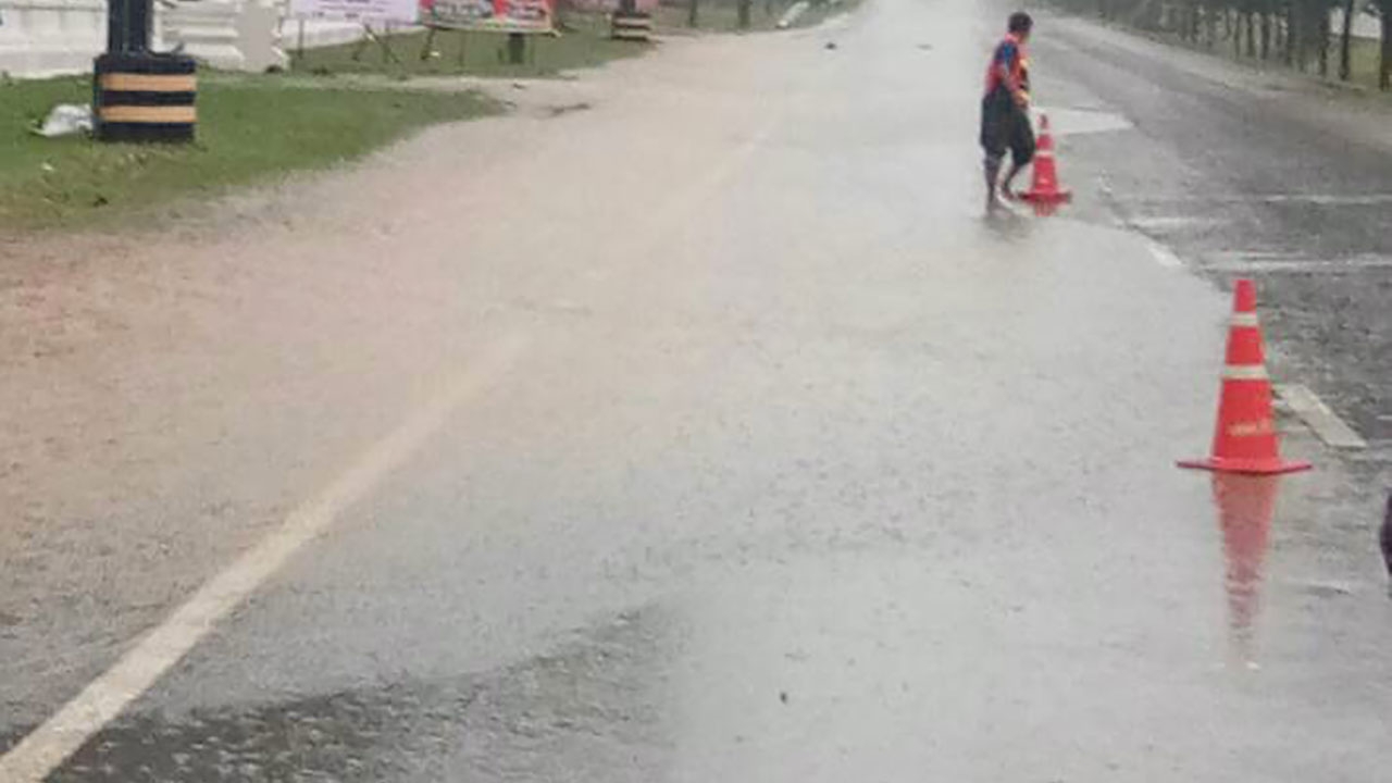 แฟ้มภาพเมื่อวันที่ 9 พ.ย. กรมทางหลวงชนบทแจ้งว่า สำนักงานทางหลวงชนบทที่ 4 (เพชรบุรี), แขวงทางหลวงชนบทประจวบคีรีขันธ์ และหมวดบำรุงทางหลวงชนบททับสะแก ได้ติดตั้งป้ายเตือนห้ามรถผ่านทางหลวงชนบทสาย ปข.1044 แยกทางหลวงหมายเลข 4-บ้านหนองขนาน กม.ที่ 13+500 เนื่องจากมีฝนตกหนักอย่างต่อเนื่อง ถนนได้ถูกน้ำกัดเซาะทางขาด ส่งผลให้รถไม่สามารถสัญจรผ่านได้ส่วนทางหลวงชนบทสาย ปข.5060 แยกทางหลวงชนบท ปข.1029-บ้านทับสะแก กม.ที่ 0+350-0+450 ที่มีน้ำท่วมไหล่ทางสูงนั้น ปัจจุบันระดับน้ำลดเข้าสู่ภาวะปกติแล้ว โดยหมวดบำรุงทางหลวงชนบททับสะแกได้นำเครื่องจักรเข้าซ่อมผิวจราจรที่ชำรุด เป็นหลุมบ่อเรียบร้อยแล้ว ส่วนสายทางอื่นที่ได้รับผลกระทบ 3 สายทาง ได้แก่ ทางหลวงชนบทสาย ปข.2029 ปข. 4007 และ ปข.1029 มีเพียงลาดคันทางชำรุด ผิวจราจรใช้งานได้ปกติ ขณะนี้กำลังสำรวจประมาณความเสียหาย.