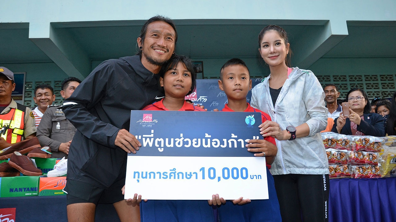 “ตูน บอดี้สแลม” มอบ ทุนการศึกษาให้กับนักเรียน โรงเรียนวัดปากระวะ ต.หน้าสตน อ.หัวไทร จ.นครศรีธรรมราช 2 ทุน ทุนละ 10,000 บาท ระหว่างแวะเยี่ยมให้ กำลังใจครูและนักเรียน ช่วงวิ่งระดมทุนผ่านเข้ามาในพื้นที่ โดยวันที่ 9 ของ การวิ่ง มียอดเงินบริจาคทะลุกว่า 150 ล้านบาท.