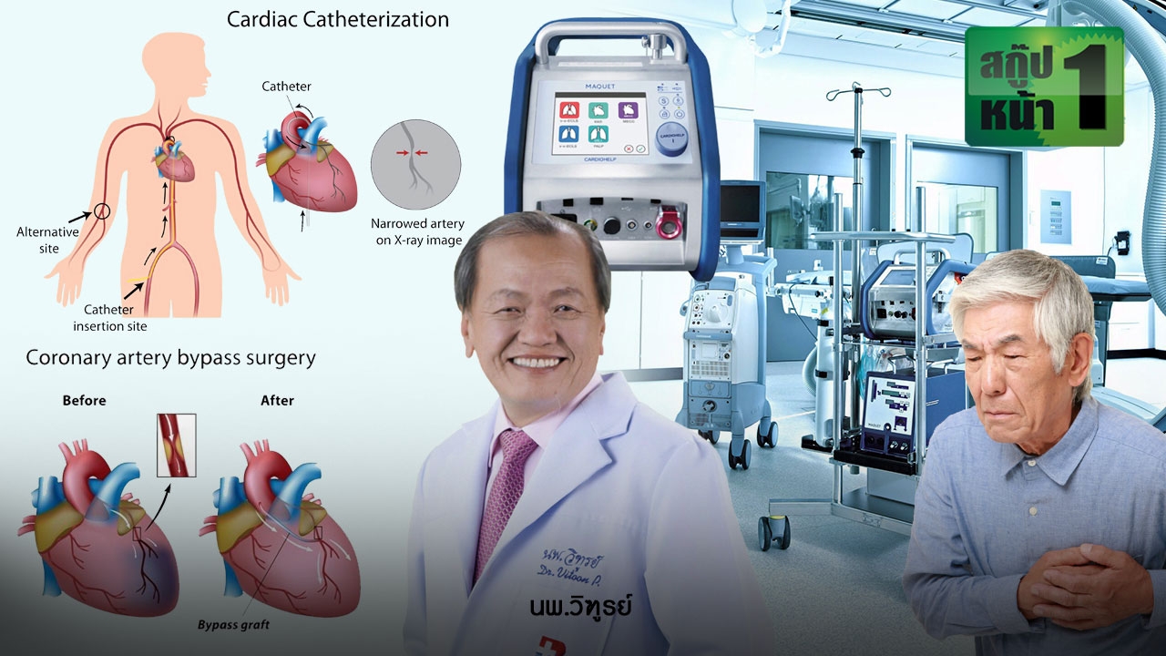 “รู้ก่อน...ป้องกันได้” ประโยคนี้สำคัญเกี่ยวกับเรื่องการดูแลสุขภาพ ไม่ต่างกับ...“You are what you eat”...คุณกินข้าวขาหมู ก็ต้องรับไขมัน คุณกินลอดช่อง...น้ำอ้อย ก็ต้องรู้ว่าน้ำตาลต้องขึ้น ต้องมีสติที่รู้ว่าจะกินอะไรแล้วจะได้อะไร และควรรู้จักป้องกันตัวเองเสียแต่เนิ่นๆขีดวงเจาะจงเรื่อง “หัวใจ” รายที่ต้องทำ “บายพาส” นายแพทย์วิฑูรย์ ปิติเกื้อกูล รองผู้อำนวยการศัลยแพทย์หัวใจและทรวงอก โรงพยาบาลหัวใจกรุงเทพ บอกว่า คนไข้ที่มีเส้นเลือดหัวใจตีบจำเป็นต้องทำบายพาส ถามว่าจะรู้ได้อย่างไรคนไข้คนไหนเป็นหรือไม่? อาการส่วนใหญ่แล้ว จะแน่นหน้าอก ที่ชัดเจนคือแน่นแล้วร้าวไปที่กรามข้างซ้ายหรือขวา หรือร้าวไปที่แขนข้างซ้ายหรือขวา แต่ส่วนใหญ่จะร้าวไปที่ข้างซ้ายมากกว่าถ้ามีอาการอย่างนี้ถือเป็นอาการที่เด่นชัดว่าน่าจะเป็น...“โรคหลอดเลือดหัวใจตีบ”กระนั้นในหลายๆคนก็อาจไม่มีอาการเด่นชัดอย่างนี้ก็ได้ บางคนก็มีอาการแค่จุกๆแน่นๆบริเวณลิ้นปี่ อาจเป็นอาการเริ่มต้นของโรคนี้ได้ การระบุชี้ชัดทางการแพทย์ตรวจเบื้องต้นทำได้ด้วยการตรวจคลื่นหัวใจ เพื่อดูความผิดปกติของคลื่นหัวใจ ถ้าคนไข้ขณะที่มีอาการเจ็บแน่นหน้าอก การตรวจก็จะเห็นความผิดปกติได้แต่ถ้ามีเส้นเลือดหัวใจตีบ แล้วขณะนั้นไม่มีอาการ การตรวจคลื่นหัวใจก็อาจไม่พบความผิดปกติได้...ต้องตรวจเพิ่มขึ้น ขั้นต่อไปคือ “การวิ่งสายพาน” ขณะที่วิ่งจะวัดคลื่นหัวใจไปด้วย เมื่อเราออกกำลังกายมากขึ้นหัวใจต้องการเลือดไปเลี้ยงกล้ามเนื้อมากขึ้น ถ้ามีเส้นเลือดตีบ เลือดไม่พอ...คลื่นหัวใจจะมีความผิดปกติเกิดขึ้น“จริงๆแล้ว การวิ่งสายพานจะบอกได้ 50-60 เปอร์เซ็นต์เท่านั้น...แล้วก็มีการตรวจที่มากขึ้นกว่านั้นอีก...โดยการให้ผู้ป่วยทำอัลตราซาวนด์หัวใจ ดูว่าหัวใจบีบตัวเป็นยังไง กล้ามเนื้อ...ผนังหัวใจผิดปกติหรือเปล่า สมบูรณ์ทุกด้านไหม เสร็จแล้วก็ให้ผู้ป่วยไปวิ่งบนสายพาน”ขณะวิ่งก็ตรวจคลื่นหัวใจปกติ แต่พอหลังจากวิ่งครบทันทีทันใดก็จับมานอน ทำอัลตราซาวนด์ซ้ำ เพื่อดูการตอบสนองของการบีบตัวของกล้ามเนื้อหัวใจ? ถ้าขาดเลือดไปเลี้ยงตรงบริเวณใดบริเวณหนึ่ง บริเวณนั้นก็จะบีบตัวน้อยกว่าปกติ แล้วจะแปรผลออกมาว่าโพสซิทีฟ...วิธีนี้จะบอกได้ประมาณ 70-80 เปอร์เซ็นต์กรณีผู้ป่วยสูงอายุวิ่งสายพานไม่ไหว จะใช้ยากระตุ้นให้หัวใจเต้นเร็วขึ้น แล้วก็ความดันสูงขึ้น พูดง่ายๆคือเป็นการจำลองการวิ่งบนสายพาน เมื่อหัวใจเต้นเร็วขึ้น ทำงานหนักขึ้น ความดันสูงขึ้น แล้วหัวใจรับได้ไหม ขณะที่ให้ยากระตุ้นก็ทำอัลตราซาวน
