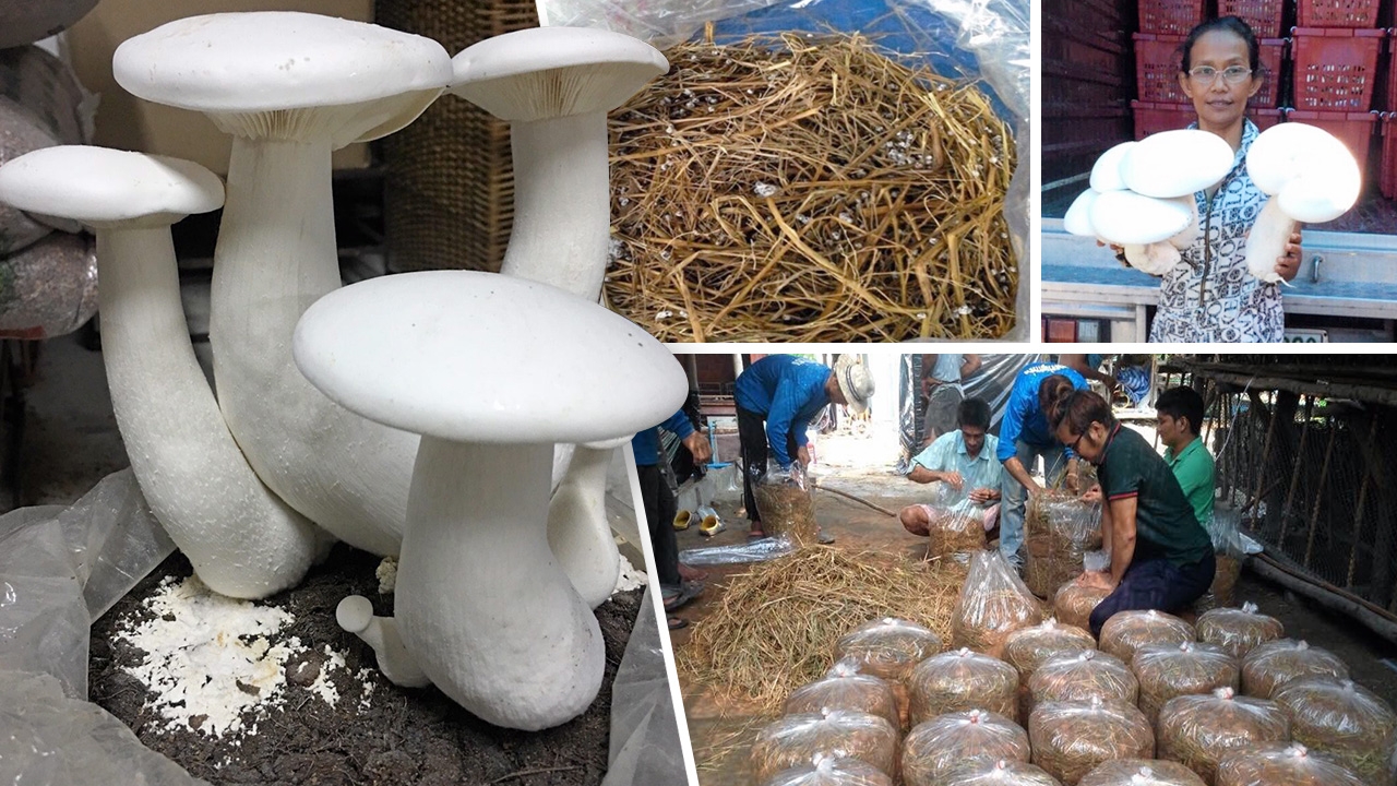 “เห็ดมิลค์กี้เป็นเห็ดขนาดใหญ่สายพันธุ์หนึ่งที่ถูกพัฒนาให้ปลูกได้ทุกภาคทั่วไทย รสชาติคล้ายเนื้อไก่ เนื้อแน่นหนุบหวานหอม ไม่เหนียวติดฟัน มีเส้นใยอาหารและไฟเบอร์สูง ปกติการเพาะเห็ดต้องนึ่งก้อนเชื้อและต้องมีโรงเรือน ระดับครัวเรือนทำได้ค่อนข้างยาก เราจึงพัฒนาการเพาะให้ง่ายขึ้น เทคนิคไม่ซับซ้อน เกษตรกรสามารถลงมือทำก้อนเชื้อได้เอง”พยงค์ แสนกมล เกษตรผู้เพาะเห็ด ม.1 ต.โคกพุทรา อ.โพธิ์ทอง จ.อ่างทอง อดีตผู้นำเกษตรกรยอดเยี่ยมแห่งอาเซียน ปี 2556 อธิบายถึงการพัฒนาการเพาะเห็ดมิลค์กี้ให้ทำได้ง่ายในระดับครัวเรือน...ที่สนใจทำตั้งแต่ 2557 เริ่มด้วยการเพาะในโรงเรือนเหมือนเห็ดทั่วไป แต่ต่อมามีแนวคิด ทำอย่างไรให้ชาวบ้านที่ขาดความรู้ ไม่มีอุปกรณ์เครื่องไม้เครื่องมือเพาะเห็ด สามารถทำได้ในครัวเรือน เป็นอาชีพเสริมให้ชาวบ้านได้จึงลองผิดลองถูก...ในที่สุดได้วิธีการเพาะในถุงพลาสติก โดยไม่ต้องนึ่งก้อนเชื้อ และไม่ต้องมีโรงเรือน วิธีการของ พยงค์ เริ่มจากเตรียมอุปกรณ์หลักๆ ฟางข้าว 3 ฟ่อน ถังน้ำหรืออ่างขนาด 200 ลิตร ขี้เถ้า 2 กก. ปูนขาว 2 กก. น้ำหมักชีวภาพ 2 ฝา ถุงพลาสติกขนาด 24×36 นิ้ว และหัวเชื้อเห็ดมิลค์กี้ เพื่อทำก้อนเห็ดมิลค์กี้ถุงใหญ่ 100 ก้อนใส่น้ำเกือบเต็มถัง เติมขี้เถ้า ปูนขาว และน้ำหมัก ผสมให้เข้ากัน ปูนขาวและขี้เถ้ามีฤทธิ์เป็นด่าง ช่วยยับยั้งการเจริญเติบโตของเชื้อโรคแทนการนึ่งฆ่าเชื้อแบบเดิม...จากนั้นนำฟางข้าวแช่ทิ้งไว้ในถัง 1 คืน จากนั้นนำฟางข้าวมาผึ่งพอสะเด็ดน้ำ อัดฟางใส่ถุงพลาสติกสูงประมาณ 10-15 ซม. โรยเชื้อเห็ดบางๆ แล้วอัดฟางทับเอาไว้เป็นชั้นๆ ทำเช่นนี้ไป 4-5 ชั้น มัดถุงแล้วทิ้งไว้ในที่ร่ม แดดส่องไม่ถึงเข้าวันที่ 7 ให้ใช้ไม้แหลมจิ้มด้านบนของถุง เพื่อให้เป็นรูระบายอากาศไม่เกิน 20 รู หากเจาะมากกว่านี้เสี่ยงต่อเชื้อโรคอื่นเข้ามาทำลายเชื้อเห็ด...เมื่อครบ 30 วัน เชื้อจะเดินเต็มที่ ให้เปิดปากถุงใช้ดินกลบเล็กน้อย และรดน้ำให้พอชุ่ม ถ้าเห็นน้ำแห้งต้องรดทันที แต่ถ้าเริ่มมีดอกห้ามรดที่ดอกโดยตรง เพราะจะทำให้เห็ดเหลืองและเน่า ผ่านไป 15 วัน เห็ดจะเริ่มให้ดอก รออีก 10 วัน ก็เก็บผลผลิตได้“เห็ดมิลค์กี้รสชาติดี คนยังผลิตกันไม่มาก ขาย หน้าฟาร์ม กก.ละ 150-250 บ. ใน 1 ก้อน ให้ผลผลิตเฉลี่ยครั้งละ 5 กก. ตลอดอายุก้อนเชื้อ 3-4 เดือน เก็บดอกเห็ดได้ 5-6 ครั้ง เท่ากับเห็ดแค่ก้อนเดียว สร้างมูลค่าได้กว่า 5,000 บาท แถมต้นทุนการผลิตแทบไม่ต้องควักจ่าย เพราะใช้วัตถุดิบที่มีในชุมชน”ปัจจุบันเห็ดจากฟาร์มแห่งนี้ ได้รับการสนับสนุนด้านการตลาดจากผู้ว่าราชการ