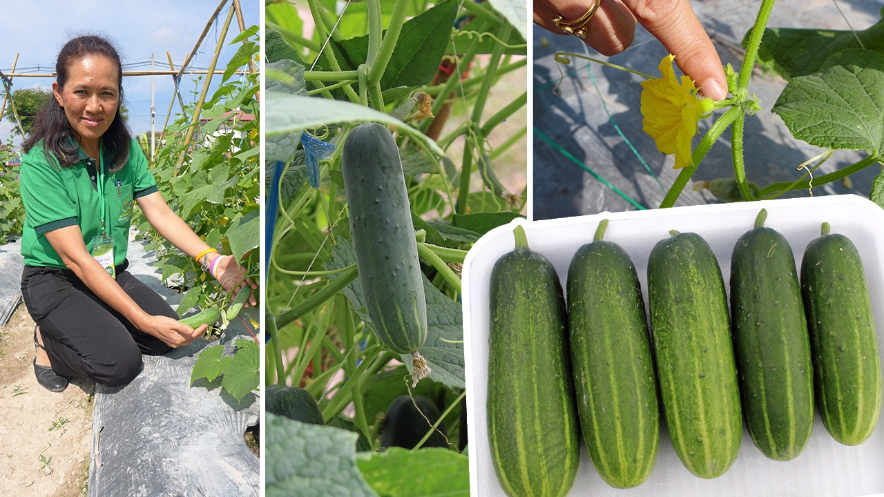 สภาวะโลกร้อนทำให้ฤดูกาลหาความแน่นอนไม่ได้ ส่งผลให้แตงกวาพันธุ์ลูกผสม ที่เคยให้ลูกดกเนื่องจากเป็นพันธุ์มีดอกตัวเมียดก ให้ผลผลิตไม่คงที่ ฤดูหนาวให้ดอกตัวเมียมาก ดอกตัวผู้น้อย ผลผลิตเลยลดลง ส่วนหน้าร้อนและหน้าฝน ถึงจะให้ดอกตัวผู้มากขึ้นก็จริง แต่ยังไม่สมดุลกับดอกตัวเมียในช่วง 10 กว่าปีที่ผ่านมา บริษัทผู้ผลิตและจำหน่ายเมล็ดพันธุ์แตงกวาแก้ปัญหาด้วยการเพิ่มปริมาณเมล็ดพันธุ์ที่ให้ดอกตัวผู้มากขึ้น 5-15% ออกมาจำหน่ายให้เหมาะกับฤดูกาล แต่ยังไม่สามารถแก้ได้หมดเพราะถ้าเกษตรกรเก็บเมล็ดพันธุ์ไปปลูกผิดฤดู ผลผลิตที่ได้ก็จะผิดเพี้ยน ไม่เต็มศักยภาพของพันธุ์ ดอกตัวเมีย. ดอกตัวผู้.“จากการศึกษาที่ได้รับทุนสนับสนุนจากสำนักงานพัฒนาวิทยาศาสตร์และเทคโนโลยีแห่งชาติ (สวทช.) เราพบว่า สาเหตุที่เป็นเช่นนั้นมาจากวิธีการผลิตแตงกวาพันธุ์ลูกผสม จะได้แตงกวาที่ให้ผลผลิตผันแปรไปตามสภาพแวดล้อม เนื่องจากมียีนบางตัวตอบสนองต่อการเปลี่ยนแปลงของสภาพอากาศ”เมื่อได้ศึกษารายงานการวิจัยของต่างประเทศ ผศ.ฉันทนา วิชรัตน์ สาขาพืชผัก คณะผลิตกรรมการเกษตร มหาวิทยาลัยแม่โจ้ พบว่า แตงกวากะเทย หรือแตงกวาที่ผสมพันธุ์ในตัวเองได้ เนื่องจากมีดอกให้เกสรตัวผู้และตัวเมียอยู่ในดอกเดียวกัน เป็นแตงกวาไม่มียีนตอบสนองต่อการเปลี่ยนแปลงของสภาพแวดล้อม ดอกกะเทย. ลูกกะเทยผสมแม่ขี้เหร่.จึงทดลองนำแตงกวากะเทยมาเป็นพ่อพันธุ์ผสมกับแม่พันธุ์ที่เป็นแตงกวาให้ดอกเฉพาะตัวเมีย เพื่อให้ได้พันธุ์ลูกผสมที่ให้ผลผลิตสูง ผลที่ออกมาปรากฏว่าได้แตงกวาลูกผสมที่ให้ดอกคงที่ ผลผลิตไม่ผันแปรไปตามสภาพแวดล้อมที่เปลี่ยนแปลงแต่กระนั้นผลแตงกวาที่ได้กลับมีลักษณะกลม หนามสีดำ ไม่เป็นที่ต้องการของตลาด ผศ.ฉันทนา กับ แตงกวาลูกผสมพันธุ์ใหม่.เนื่องจากแตงกวาที่นำมาเป็นแม่พันธุ์ลักษณะไม่ดีพอ จึงร่วมกับบริษัทเอกชนระดับ SME ผู้ผลิตเมล็ดพันธุ์แตงกวา ขอความร่วมมือนำเกสรตัวผู้จากแตงกวาพันธุ์กะเทยที่ได้คัดเลือกพันธุ์ไว้ไปผสมกับเกสรตัวเมียพันธุ์แม่ของบริษัท และทำการคัดเลือกจนได้สายพันธุ์แตงกวาดอกกะเทยที่มีลักษณะที่ดีคือผลยาวขึ้นและหนามมีสีดำ เหมาะสมกับการเป็นพ่อพันธุ์จากนั้นนำพันธุ์ดอกกะเทยดังกล่าวมาเป็นพ่อพันธุ์ ผสมกับพันธุ์ตัวเมียของบริษัทเอกชน พบว่าลูกผสมที่ได้มีลักษณะดี ผลยาวหนามขาว และไม่มีปัญหาผลผลิตไม่แน่นอนตามสภาพอากาศที่เปลี่ยนไป.ชาติชาย ศิริพัฒน์