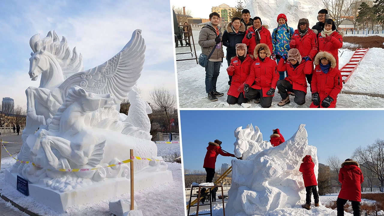 ทีมนักเรียนอาชีวะอุบลฯประกาศศักดา คว้าแชมป์โลกแกะสลักหิมะที่เมืองฮาร์บิน ประเทศจีน รักษาแชมป์สมัยที่ 2 ไว้ได้สำเร็จ หลังโชว์ฝีมือนำเสนอผลงานชื่อ “อาชา ปักษา มัจฉา วารี” ใช้แนวคิดสัตว์มงคลจากป่าหิมพานต์ มาออกแบบและสื่อความหมาย ส่วนอีก 2 ทีมเด็กเก่งจากเมืองไทย วิทยาลัยอาชีวศึกษาสุราษฎร์ธานี นำเสนอผลงานการแกะสลักภาพไก่ชนพื้นบ้าน และผลงานการแกะสลักภาพสัตว์นำโชคเต่าและมังกร จากวิทยาลัยเทคนิคสมุทรปราการ คว้ารางวัลรองชนะเลิศอันดับ 1 ร่วมกันเด็กอาชีวะอุบลฯประกาศฝีมือคว้าแชมป์แกะสลักหิมะมาครองได้เป็นปีที่ 2 ติดต่อกัน เมื่อเวลา 17.00 น. วันที่ 7 ม.ค. นายธวัชชัย พันธ์นิกุล ผู้อำนวยการวิทยาลัยอาชีวศึกษาอุบลราชธานี เผยว่า รายงานการประกาศผลการแข่งขันแกะสลักหิมะนานาชาติ (The 10th International Collegiate Snow Sculpture Contest 2018) ณ มหาวิทยาลัยวิศวกรรมฮาร์บิน เมืองฮาร์บิน มณฑลเฮยหลงเจียง ประเทศจีน จัดขึ้นระหว่างวันที่ 4-7 ม.ค. มีทีมเข้าแข่งขันทั้งหมด 55 ทีม 12 ประเทศทั่วโลก ประเทศไทยส่งทีมเข้าร่วมแข่งขัน 3 ทีม ประกอบด้วย วิทยาลัยอาชีวศึกษาอุบลราชธานี วิทยาลัยอาชีวศึกษาสุราษฎร์ธานี และวิทยาลัยเทคนิคสมุทรปราการผลการแข่งขันปรากฏว่า ทีมวิทยาลัยอาชีวศึกษาอุบลราชธานี ดีกรีแชมป์เก่า รางวัล Top Grade Awards เมื่อปีที่แล้ว ในปีนี้สามารถคว้า 2 รางวัล คือรางวัลชนะเลิศ และรางวัล Best Technique Award (รางวัลทักษะฝีมือใช้เทคนิคการแกะสลักยอดเยี่ยม) สร้างสถิติรักษาแชมป์สมัยที่ 2 ให้กับทีม และเป็นแชมป์สมัยที่ 9 ให้กับประเทศไทย ทีมนี้นำโดยนางสุวนิจ สุริยพันตรี รอง ผอ.วิทยาลัยอาชีวศึกษาอุบลราชธานี ผู้ประสานงาน นายพิศิษฐ์ อู่ศิริกุลพาณิชย์ นายสุรชาติ พละศักดิ์ ครูผู้ควบคุมทีมการแข่งขัน พร้อมด้วยนายกฤษณะ คบสหาย นายธนศักดิ์ พิพัฒน์ นายธนากร ศักดิ์สิงห์ และนายอภิสิทธิ์ ศรชัย นักเรียน ปวช.3 สาขาวิจิตรศิลป์ วิทยาลัยอาชีวศึกษาอุบลราชธานี ผู้เข้าแข่งขันผลงานที่คว้ารางวัลครั้งนี้ ใช้สัตว์มงคลจากป่าหิมพานต์ ตัวแทนของบุญวาสนาและความสำเร็จเป็นแนวคิดในการออกแบบ ชื่อผลงานว่า “อาชา ปักษา มัจฉา วารี” (Belief…Faith…Miracle) ด้วยการนำม้า นก ปลา และน้ำ จากป่าหิมพานต์มาแกะสลักลงบนก้อนหิมะ ม้า เป็นสัญลักษณ์สื่อถึงความเจริญก้าวหน้า มุมานะ อดทน และการขยันขันแข็งในการทำงานเพื่อเป้าหมายสู่ความสำเร็จในชีวิต “นก” หมายถึง ความอิสระของพลังแห่งความคิด การกระทำ มักมีความฉลาดหลักแหลมด้านสติปัญญา และทะยานบินไกลสู่ความสำเร็จ “ปลา” หมายถึง สัญลักษณ์ของความมั่งคั่ง การมีเงินทองล้นหลาม ความอุดมสมบูรณ์ ร่ำรวย มีผลกำ