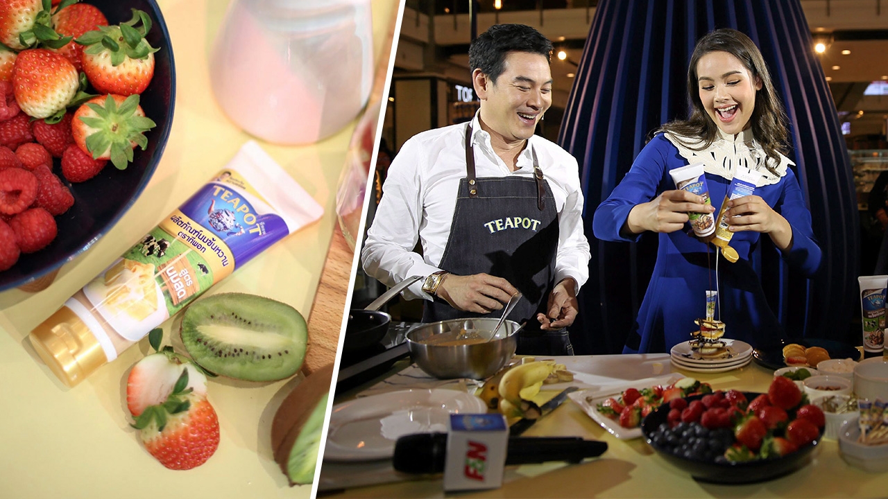 ตอบโจทย์ความต้องการความแปลกใหม่ และไลฟ์สไตล์คนรุ่นใหม่ สะดวกซื้อ สะดวกใช้ อร่อยได้ทุกที่ทุกเวลา TEAPOT (ทีพอท) ผลิตภัณฑ์นมข้นหวาน โดย บริษัท เอฟแอนด์เอ็น แดรี่ส์ (ประเทศไทย) จำกัด เปิดตัวผลิตภัณฑ์นมข้นหวานแบบหลอดบีบเป็นครั้งแรก ในงาน “TEAPOT CHOC IT OUT อร่อยช็อก! กับ TEAPOT” พร้อมเผยโฉมพรีเซ็นเตอร์ของแบรนด์ “ญาญ่า” อุรัสยา เสปอร์บันด์ ทีมผู้บริหาร เอฟแอนด์เอ็น แดรี่ส์...สุชิต ริ้วจรูญ, การณ์ จิตรวิมล และ กิระณัช กิตติบรรลุ.ภายในงาน พรีเซ็นเตอร์แบรนด์ ทีพอท “ญาญ่า” ได้โชว์ฝีมือทำแพนเค้กสูตรพิเศษ “TEAPOT Yummy Choco Pancake Tower” ที่ชุ่มฉ่ำไปด้วยนมข้นหวานทีพอท สูตรนมสด และสูตรนมสด รสช็อกโกแลต ร่วมกับสเปเชี่ยลเชฟ “ชาคริต แย้มนาม” นอกจากนี้ยังมีเซเลบริตี้ ปัทม สุจริตกุล และสาริศา คชเสนี มาร่วมโชว์เมนูสุดสร้างสรรค์ด้วยนมข้นหวานทีพอท อย่าง มิลค์เชคที่ทำจากสตรอว์เบอร์รี ราสพ์เบอร์รี และบลูเบอร์รี ปั่นรวมกับไอศกรีมวานิลลา และนมข้นหวานทีพอท สูตรนมสด และช็อกโกแลต ฟัดจ์ วาฟเฟิล ท็อปปิ้งด้วยผลไม้นานาชนิด และนมข้นหวานทีพอท สูตรนมสด รสช็อกโกแลตอีกด้วย ด้าน การณ์ จิตรวิมล ผู้บริหาร เอฟแอนด์เอ็น แดรี่ส์ (ประเทศไทย) เปิดเผยว่า นับเป็นการพลิกโฉมครั้งสำคัญของทีพอท และเป็นครั้งแรกที่นมข้นหวานจะมาใน 2 รสชาติใหม่ คือ สูตรนมสด และสูตรนมสด รสช็อกโกแลต เป็นการเน้นประสบการณ์ใหม่ๆ ในการกินนมข้นหวาน ให้แก่ผู้บริโภค โดยส่วนผสมของนมมาจากแหล่งต้นกำเนิดชั้นเยี่ยมจากประเทศนิวซีแลนด์ ด้วยบรรจุภัณฑ์โฉมใหม่ที่พร้อมใช้ทันที ซึ่งหาซื้อได้ตามซุปเปอร์มาร์เกตชั้นนำ.