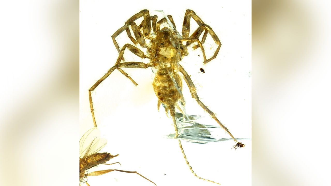 ยุคครีเทเชียสเป็นยุคที่รู้กันว่าเต็มไปด้วยไดโนเสาร์และสัตว์เลื้อยคลานโบราณทั้งบนบกและในน้ำหลายสายพันธุ์ รวมทั้งสัตว์ชนิดเล็กๆ แปลกประหลาดอีกมากมาย เมื่อเร็วๆนี้นักบรรพชีวินวิทยาจากสถาบันวิทยาศาสตร์แห่งชาติจีนและมหาวิทยาลัยแคนซัส ในสหรัฐอเมริกา เผยว่า ค้นพบก้อนอำพันทางภาคเหนือของประเทศพม่า ที่มีซากดึกดำบรรพ์หรือฟอสซิลของแมงมุมโบราณชนิดหนึ่งฝังอยู่ข้างในทีมนักบรรพชีวินวิทยาได้ตั้งชื่อแมงมุมตัวนี้ว่า Chimerarachne yingi โดยระบุว่าแมงมุมชนิดดังกล่าวอาศัยอยู่ในเขตร้อนชื้นของยุคครีเทเชียสเมื่อ 100 ล้านปีที่แล้ว ขนาดตัวเล็กจิ๋วเพียง 7.5 มิลลิเมตร แต่มีลักษณะคล้ายแมงมุมยุคปัจจุบันและมีอวัยวะส่วนสร้างเส้นใยเหมือนกัน ที่น่าทึ่งคือมันมีหางยาวเหมือนหางแมงป่องปกคลุมด้วยขนสั้นๆที่ดูคล้ายแส้ ซึ่งอาจใช้ดักจับเหยื่อโดยจะอาศัยอยู่ตามเปลือกของต้นไม้มีข้อมูลก่อนหน้าเผยว่า บรรพบุรุษแมงมุมมีชีวิตอยู่เมื่อประมาณ 315 ปีที่ผ่านมา ทว่าซากฟอสซิลแมงมุมหางยาวตัวนี้น่าจะมีวิวัฒนาการต่างออกไป ทั้งยังบอกเป็นนัยถึงเครือญาติของแมงมุมมีหางที่เป็นไปได้ว่าจะเกิดขึ้นในยุคพาลีโอโซอิกซึ่งสิ้นสุดเมื่อ 251 ล้านปีที่แล้ว ดังนั้น ซากแมงมุมหางยาวดังกล่าวอาจเป็นหลักฐานสำคัญที่จะช่วยให้นักบรรพชีวินวิทยาศึกษาความเชื่อมโยงของวิวัฒนาการและต้นกำเนิดสายพันธุ์แมงมุมได้ในอนาคต.