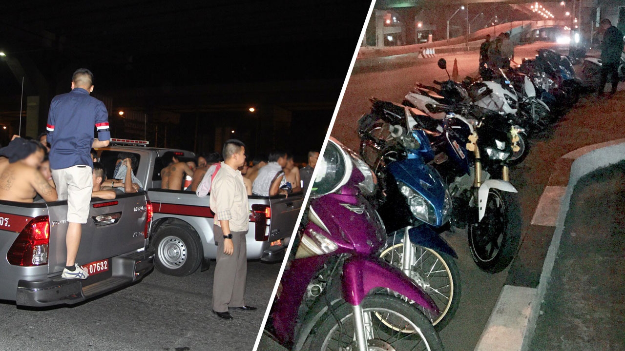 รอง ผกก.สน.วิภาวดี ส่งสายลับ แฝงตัวในก๊วนเด็กแว้น พบปิดถนนในคืนวันวาเลนไทน์รวมตัวซิ่งป่วนเมืองบนถนนวิภาวดีรังสิตขาออกกว่าครึ่งร้อยหน้าวัดเสมียนนารี ก่อนซิ่งมาจนมุมบริเวณจุดยูเทิร์นหน้าบริษัทยาคูลท์ เจ้าหน้าที่กว่า 30 คน ซุ่มริมถนนใช้รถปิดล้อม รวบเด็กแว้นและสาวสก๊อย 43 คน ยึดรถ จยย. 59 คัน เผยนัดกันแข่งรถสร้างความเดือดร้อนผ่านโซเชียล เตือนผู้ปกครองปล่อยปละละเลยมีความผิดด้วยตำรวจรวบเด็กแว้นและสาวสก๊อยแข่งซิ่งป่วนเมืองในคืนวันวาเลนไทน์ เหตุการณ์นี้เผยขึ้นเมื่อเวลา 03.00 น. วันที่ 15 ก.พ. พ.ต.ท.พันษา อมราพิทักษ์ รอง ผกก.ศูนย์ควบคุมจราจรวิภาวดีรังสิตและทางพิเศษ กก.2 บก.จร. (สน.วิภาวดี) พ.ต.ท.รัฐศาสตร์ ไชยพลี สว.จร. นำกำลังกว่า 30 นาย สกัดจับ เด็กแว้นขี่รถจักรยานยนต์แต่งซิ่งประลองความเร็วบนถนนวิภาวดีรังสิต สร้างความเดือดร้อนให้กับผู้ใช้เส้นทาง สามารถยึดรถจักรยานยนต์ได้ทั้งหมด 59 คัน และควบคุมคนขี่และผู้ซ้อนท้าย รวม 43 คน แบ่งเป็นชาย 26 คน หญิง 17 คน ในจำนวนนี้มีเยาวชนอายุต่ำกว่า 18 ปี 15 คน แบ่งเป็นชาย 7 คน หญิง 8 คน จับกุมได้บริเวณถนนวิภาวดีรังสิตขาเข้าและขาออก ช่วงทางกลับรถบริเวณหน้าบริษัทยาคูลท์ จำกัด แขวงตลาดบางเขน เขตหลักสี่ กทม. พ.ต.ท.พันษากล่าวว่า สืบสวนหาข่าวกลุ่มเยาวชนที่มีพฤติกรรมรวมกลุ่มแข่งรถจักรยานยนต์ในทางสาธารณะ จนทราบว่าจะรวมกลุ่มกันออกมาช่วงคืนวันวาเลนไทน์วันที่ 14 ก.พ.ต่อเนื่องหลังเที่ยงคืนวันที่ 15 ก.พ. ส่งเจ้าหน้าที่แฝงตัวไปกับกลุ่มรถจักรยานยนต์แข่งดังกล่าว พบกลุ่มเด็กแว้นรวมตัวซิ่งรถจักรยานยนต์ประมาณ 60 คัน บริเวณถนนวิภาวดีรังสิตขาออกช่วงวัดเสมียนนารีมุ่งหน้าแยกม.เกษตรฯ ก่อนกลุ่มเด็กแว้นซิ่งมาถึงจุดกลับรถบริเวณหน้าบริษัทยาคูลท์กำลังเจ้าหน้าที่นอกเครื่องแบบที่เฝ้าสังเกตการณ์ตามจุดต่างๆกว่า 30 นาย รถยนต์ ส่วนตัวของเจ้าหน้าที่ 14 คัน รถจักรยานยนต์ทั้งส่วนตัวและรถหลวงกว่า 10 คัน ปิดช่องทางหลบหนีสกัดจับและตรวจยึดรถจักรยานยนต์ที่นำมาแข่งได้ 59 คน ผู้กระทำผิดชายหญิง รวม 43 คน และมีเด็กแว้นบางส่วนที่ทิ้งรถวิ่งหลบหนีไปได้พ.ต.ท.พันษาเผยต่อว่า เด็กแว้นกลุ่มนี้จะนัดหมายกันผ่านโซเชียล เช่น ไลน์ เฟซบุ๊ก หรือช่องทางอื่นๆ เพื่อรวมตัวกันมาแข่งขันกันตามเส้นทางบนถนนวิภาวดีรังสิตช่วงดินแดง บางซื่อ บางเขน มีรถนำดูว่ามีเจ้าหน้าที่หรือไม่ ถ้ามีจะเปลี่ยนไปใช้เส้นทางอื่น อย่างไรก็ตาม ในส่วนของพ่อแม่ผู้ปกครองต้องเลี้ยงดูอบรมยับยั้งพฤติกรรมที่ไม่ดี ตลอดจนต้องไม่สนับสนุนหรือปล่อยปละละเลยให้ลูกหลานรวมกลุ่
