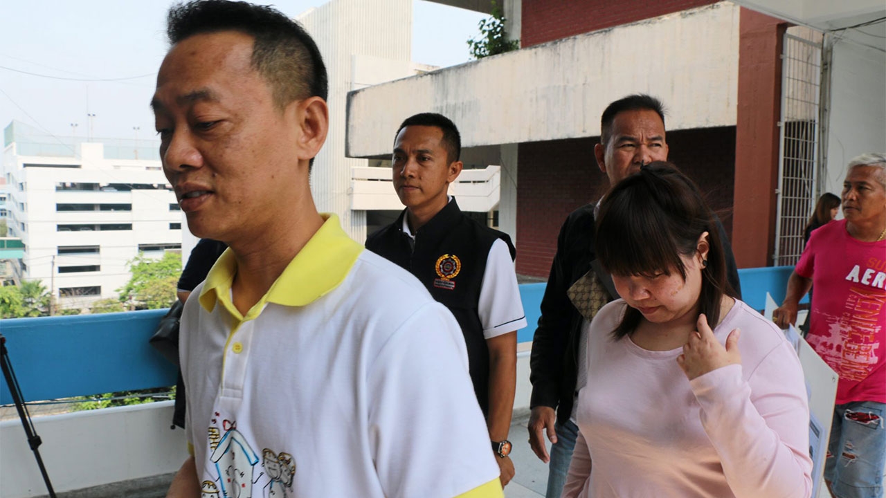 ชุดสืบสวนนครบาลคุมตัว น.ส.ปรางค์รวี ธนะสุขโศธิดา หรือ น.ส.พีรดา โสภิตณภารางค์ (ขวา) มาสอบสวนตามหมายจับ หลังเปิดเฟซบุ๊กหลอกเหยื่อช่วยเหลือค่ารักษาหมาแมวป่วยหลายครั้ง ความเสียหายหลายล้านบาท.