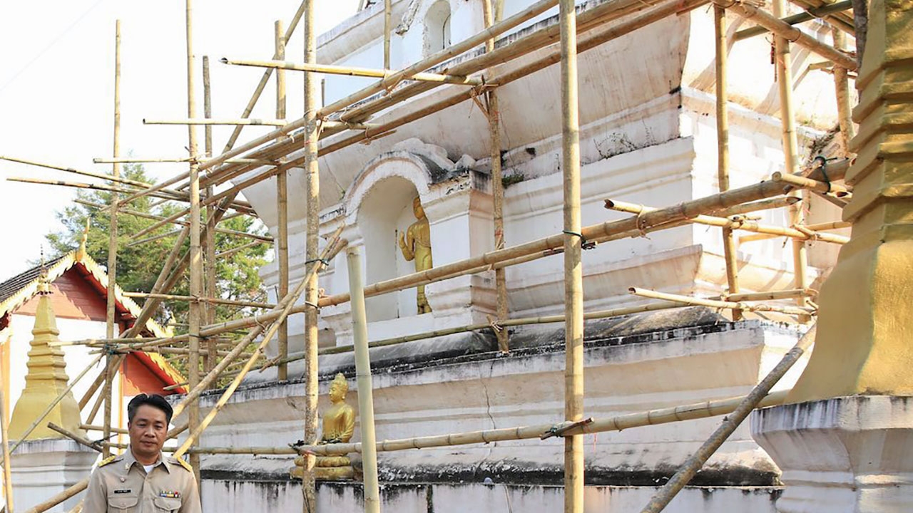 องค์หริภา ทรงติดตามงานบูรณะเจดีย์ วัดจันทร์ เชียงใหม่