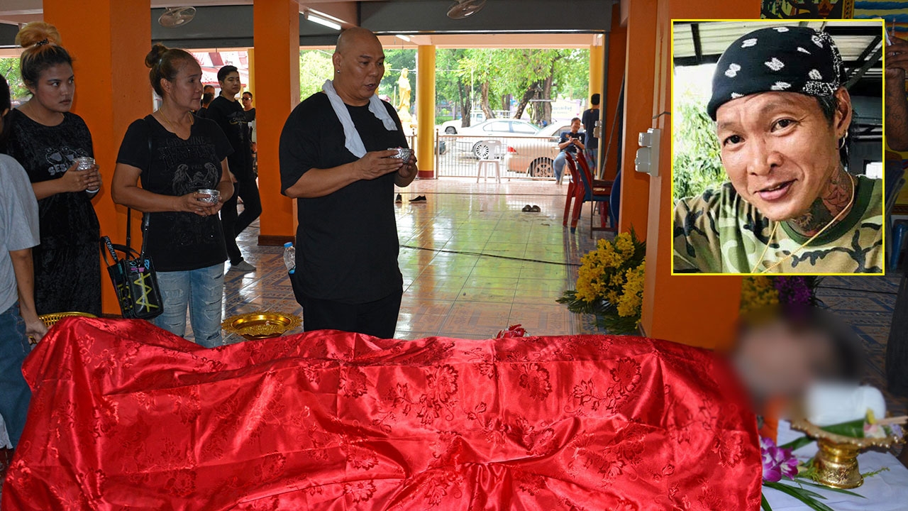 นายชูศักดิ์ เอี่ยมสุข หรือ “โหน่ง ชะชะช่า” ร่วมพิธีรดน้ำศพ “กบ ชิงร้อยชิงล้าน” หรือนายเกียรติศักดิ์ รามวงษ์ (รูปเล็ก) น้องชายแท้ๆ เสียชีวิตกะทันหันในห้องพักร้านบะหมี่โหน่ง ริมถนนสายรังสิต-นครนายก อ.เมืองนครนายก.