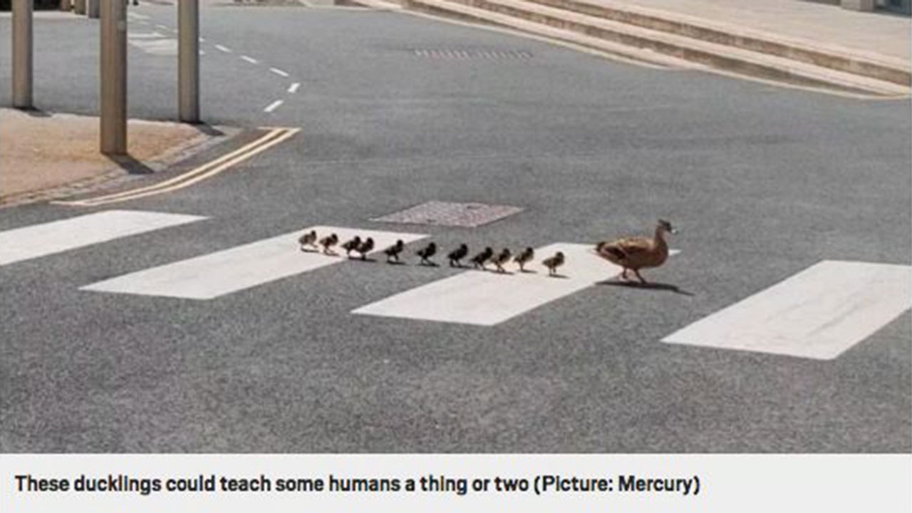 วิดีทัศน์สองชุดถูกโพสต์สู่โลกออนไลน์โชว์ “ครอบครัวเป็ด” ในสองประเทศ มีระเบียบวินัยน่าทึ่งน่ารักน่าเอ็นดูสุดๆ ในการเดินข้ามถนนคลิปชุดแรก ฝูงเป็ดเจ็ดตัวยืนรอสัญญาณไฟเขียวเพื่อข้ามถนนที่รถราพลุกพล่านกลางเมืองซาร์บรู๊กเคน เยอรมนี เมื่อไฟเปลี่ยนจากแดงเป็นเขียวพวกมันก็วิ่งปุเลงๆ ข้ามสู่อีกฟากถนน มีผู้ชมกว่า 2.5 ล้าน ครั้ง และแชร์ชื่นชมอีกเพียบชุดที่สอง เคนนี่ ปัง นักศึกษาคณะการบัญชี ถ่ายจากถนนในมหาวิทยาลัยแลงคาสเตอร์ อังกฤษ โชว์ภาพแม่เป็ดนำหน้าพาลูกน้อย 11 ตัว ตะละตัวคงเพิ่งลืมตามาดูโลกได้ไม่กี่วัน...เดินข้ามถนนบนทางม้าลายแบบ “แถวตอนเรียงหนึ่ง” ตรงแหนว ไม่มีก้าบๆน้อยตัวใด “แตกแถว” ทั่นผู้ชมหลายท่านบอกยินดีมอบรางวัล “แชมป์โลกยอดคุณแม่เป็ด”แถมเตือน “มนุษย์” ที่ไร้ระเบียบวินัยจง “อายเป็ด” และ “เอาอย่างเป็ด” ซะบ้างเน้อ. ดอย ดอกฝิ่น