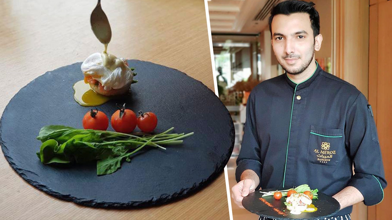 เมนูอาหารเช้ามื้อแรกสำหรับคู่แต่งงานใหม่ อีกหนึ่งเรื่องราวของความประทับใจ ไม่ว่าเจ้าบ่าวหรือเจ้าสาวหมาดๆ จะโชว์ฝีมือปรุงเมนูอะไร ก็คงจะชื่นมื่นได้ใจไม่น้อย อย่างเมนู “ไข่เบเนดิกต์” (Egg Benedict) เมนูไข่เยิ้มๆ ที่พระเอกหนังฝรั่งหลายเรื่องนิยมเสิร์ฟให้นางเอกบนเตียงเป็น Breakfast in Bed จนเชฟสุดหล่อมาดคมเข้มเชื้อสายปากีสถาน ประจำโรงแรม อัล มีรอซ ถนนรามคำแหงซอย 5 เชฟยิด-ซัยยิดซูลกิฟลี ไซห์ฮามิ ที่อยากให้คู่รักข้าวใหม่ปลามัน ได้เติมพลังความรักให้หวานเว่อร์ขึ้นไปอีก กับการเข้าครัวร่วมกันปรุงมื้อเช้าสุดโรแมนติก ที่ทำได้ง่ายแสนง่าย และอร่อยอีกต่างหาก เชฟยิดเล่าว่า “เมนูไข่เบเนดิกต์ เป็นสแตนดาร์ดอาหารเช้าอเมริกันที่มีประวัติยาวนานกว่า 100 ปี สันนิษฐานว่า มีจุดกำเนิดที่โรงแรมวอลดอร์ฟในนิวยอร์ก ที่นักเล่นหุ้นวอลล์สตรีทที่เกษียณแล้ว “มร.ลีมูเอล เบเนดิกต์” เกิดอาการเมาค้าง เลยสั่งอาหารโรงแรมให้มีไข่ลวก ขนมปัง แฮม และซอสฮอลแลนเดส มาทานด้วยกัน จนเชฟโรงแรมฯ ได้เป็นไอเดียเมนูใหม่ ความพิเศษของจานนี้คือ คู่รักมีความสุขกับการเข้าครัวร่วมกัน ปรุงอาหารง่ายๆ แต่มีคุณภาพ เป็นอาหารให้พลังงานสูงแคลอรีต่ำ อร่อยแบบสบายๆ มื้อเช้าด้วยไข่ลวก ที่ไม่มีน้ำมัน และแซลมอน เพิ่มคุณค่าโปรตีนครับ” เครื่องปรุงไข่ไก่สด 4 ฟอง (แยกเฉพาะไข่แดง 3 ฟอง)/แซลมอนรมควัน/อิงลิชมัฟฟิน 2 ชิ้น หรือ ขนมปัง เนยสดชนิดเค็มเล็กน้อย 50 กรัม/น้ำมะนาว 1 ช้อนโต๊ะ/เกลือ ½ ช้อนชา/พริกไทย/น้ำส้มสายชู/ ผงพริกปาปริก้า/ผักร็อกเกต/มะเขือเทศหรือผักสดตามชอบวิธีทำ1) ต้มน้ำให้เดือด ใส่น้ำส้มสายชูลงไป พอน้ำเดือดอีกครั้ง ลดไฟให้อ่อนลง ความเป็นกรดของน้ำส้มสายชู จะทำให้เนื้อไข่ขาวแน่นกระชับมากขึ้น แต่ไม่แข็ง 2) ตอกไข่ลงไป ใช้ช้อนคนน้ำในหม้อให้เป็นน้ำวน และจะต้องคนน้ำวนไปตามเข็มนาฬิกา ให้ไข่ขาวคลุมทั่วไข่แดง และเกาะตัวกันเป็นก้อนกลมๆ จะดูน่ารับประทาน 3) เมื่อไข่สุก ตักขึ้นพักไว้จากนั้นไปทำ ซอสฮอลแลนเดส (Hollandaise Sauce) 1) นำไข่แดงที่แยกไว้เฉพาะ 3 ฟองใส่ลงในชาม ใช้ตะกร้อมือตีให้เข้ากันจนเป็นสีเหลืองนวล 2) ค่อยๆเติมเนยลงไปผสม คนไปเรื่อยๆ จนผสานเป็นเนื้อเดียวกัน ปรุงรสด้วยน้ำมะนาว หรือน้ำส้มสายชูและเกลือ 3) วางอิงลิชมัฟฟินในจาน เรียงแซลมอนรมควัน และไข่ที่เตรียมไว้ แล้ว ราดซอสฮอลแลนเดส ที่รสชาติเปรี้ยวหวานกำลังดี ตกแต่งด้วยผัก ร็อกเกตและมะเขือเทศ ผงพริกปาปริก้า พร้อมเสิร์ฟ ได้เลย หรือจะเลือกทานกับมันฝรั่งอบ มันฝรั่งทอดก็ได้ ตามชอบ.