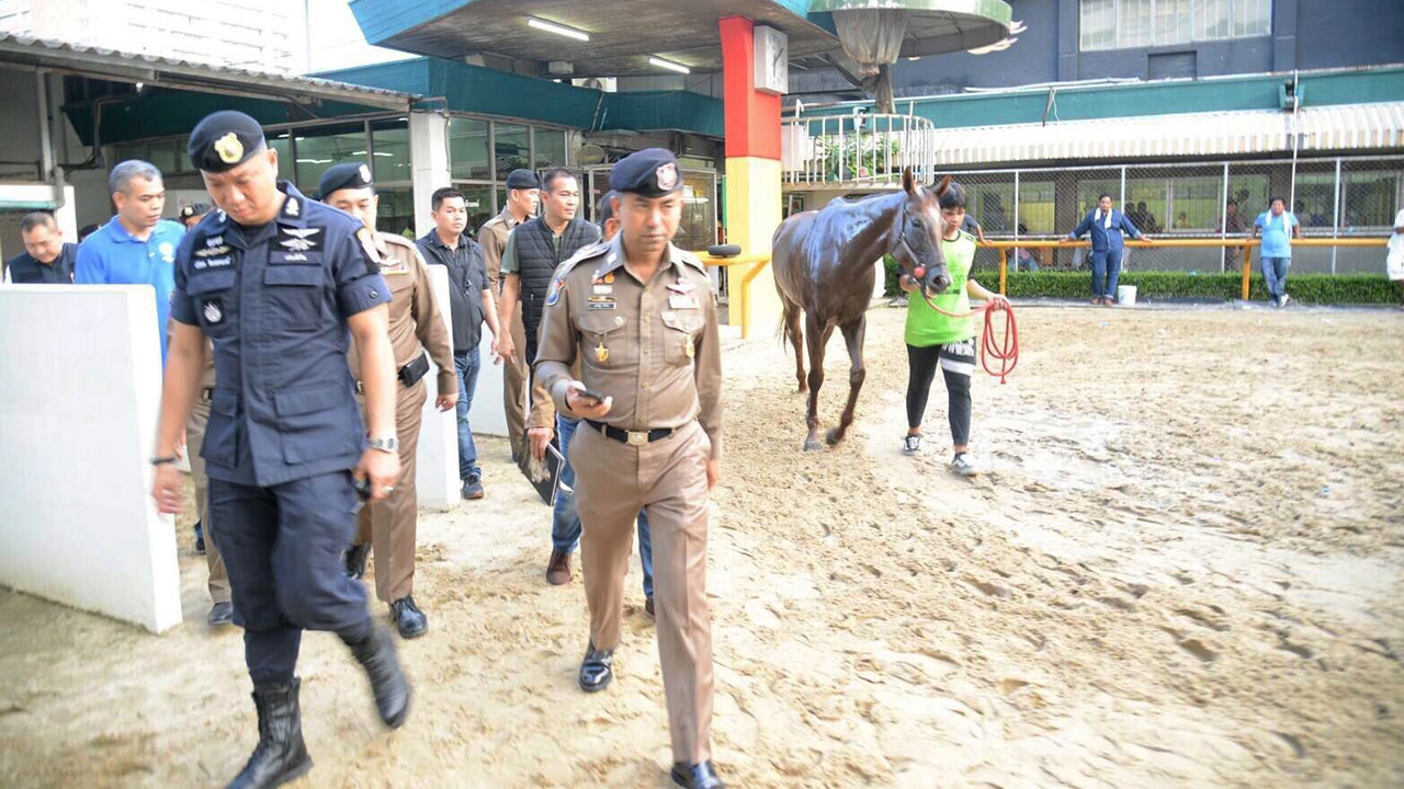 พล.ต.ต.สุรเชษฐ์ หักพาล รอง ผบช.ทท. นำชุดปฏิบัติการ ศปพม.ตร. และตำรวจ สน. ปทุมวัน สนธิกำลังเข้าตรวจสอบกลุ่มบุคคลลักลอบเล่นพนันแข่งม้าภายในสนามม้าราชกรีฑาสโมสร (ปทุมวัน) จับกุมผู้ต้องหาทั้งหมด 15 ราย ประกอบด้วยเจ้ามือ 3 ราย ผู้เล่น 12 ราย.