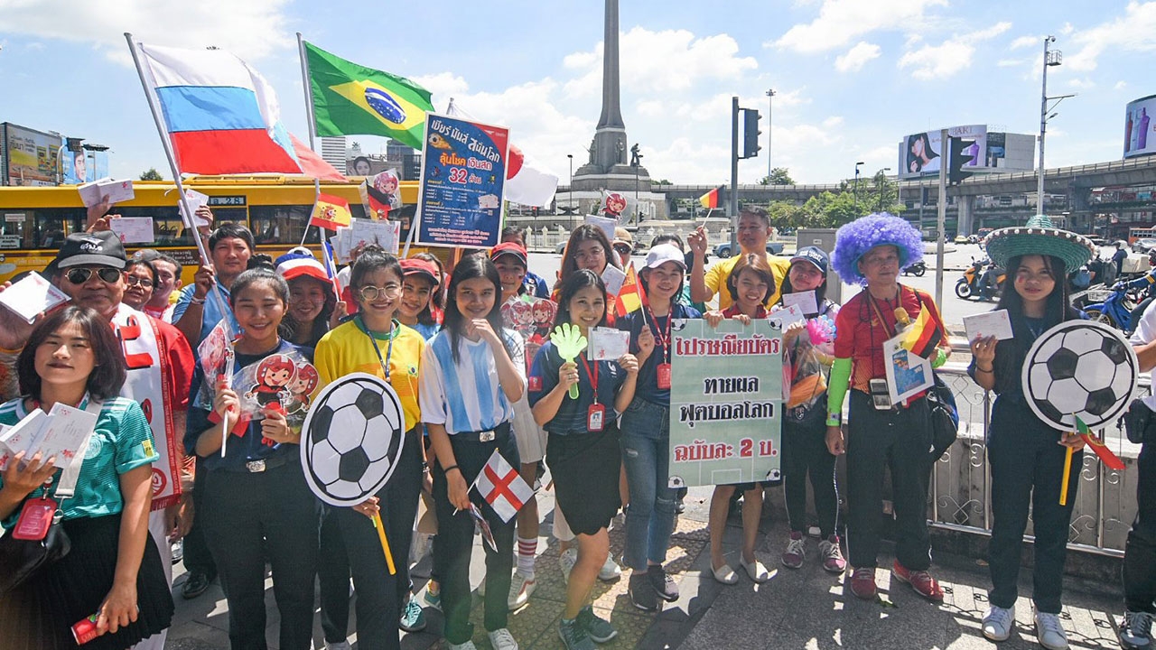 เจ้าหน้าที่ไปรษณีย์จัดกิจกรรมส่งเสริมการขาย “โรดโชว์ เชียร์มันสนั่นโลก” นำพนักงานจัดโรดโชว์เชิญชวนประชาชนซื้อไปรษณียบัตรทายผลฟุตบอลโลกที่รอบอนุสาวรีย์ชัยสมรภูมิ มีประชาชนสนใจซื้อคับคั่ง.