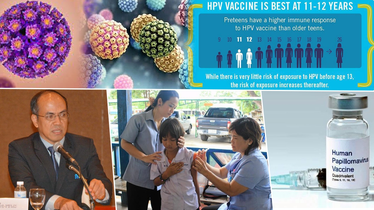 เมื่อ “มะเร็งปากมดลูก” เริ่มคุกคามผู้หญิงในโลกมากขึ้นเรื่อยๆในแต่ละปีจะมีผู้หญิงเฉลี่ยวันละ 753 ราย หรือประมาณ 275,000 ราย เสียชีวิตจากมะเร็งปากมดลูก และมีผู้ป่วยรายใหม่เพิ่มขึ้นปีละกว่า 500,000 ราย องค์การอนามัยโลกประมาณการว่าในทุกๆ 2 นาที ทั่วโลกจะมีผู้หญิงเสียชีวิตจากมะเร็งปากมดลูก 1 รายสำหรับประเทศไทย “มะเร็งปากมดลูก” เป็นโรคมะเร็งในสตรีที่พบเป็นอันดับ 2 รองจากมะเร็งเต้านม ทุกๆปีจะมีผู้หญิงไทยป่วยมะเร็งปากมดลูกรายใหม่เพิ่มขึ้นกว่า 10,000 ราย ในจำนวนนี้เสียชีวิตเฉลี่ยปีละประมาณ 6,500 ราย หรือวันละ 17 รายสาเหตุสำคัญของมะเร็งปากมดลูกเกิดจากการติดเชื้อไวรัสที่ชื่อ humen papilloma virus หรือไวรัสเอชพีวี (hpv) ซึ่งมีหลายสายพันธุ์ แต่สายพันธุ์ที่ทำให้เกิดมะเร็งปากมดลูก มะเร็งช่องคลอด มะเร็งทวารหนัก และมะเร็งองคชาต คือสายพันธ์ุ 16 กับ 18แต่แม้ว่าจำนวนตัวเลขของผู้ป่วยมะเร็งปากมดลูกจะเพิ่มมากขึ้น แต่ในทางตรงกันข้าม เทคโนโลยีทางการแพทย์ที่ล้ำสมัยก็สามารถที่จะพัฒนา “วัคซีน” เพื่อป้องกันมะเร็งชนิดนี้ได้ดร.นพ.จรุง เมืองชนะ ผู้อำนวยการสถาบันวัคซีนแห่งชาติ (สวช.) ให้ข้อมูลว่า มีข้อมูลทางวิชาการยืนยันชัดเจนว่า กว่า 70% ของมะเร็งปากมดลูกเกิดจากไวรัสเอชพีวี สายพันธุ์ 16 และ 18 ซึ่งสามารถป้องกันได้ด้วยวัคซีน โดยพบว่าการฉีดวัคซีนป้องกันไวรัสเอชพีวีให้แก่เด็กผู้หญิงควบคู่ไปกับการคัดกรองมะเร็งปากมดลูกเมื่ออายุ 30-60 ปี สามารถป้องกันการเกิดโรคได้มากกว่า 2 ใน 3 ถือเป็นการลดความเสี่ยงจากการป่วย และตายด้วยโรคมะเร็งปากมดลูกได้ ด้วยเหตุผลดังกล่าว ประเทศไทยโดยคณะอนุกรรมการสร้างเสริมภูมิคุ้มกันโรค ภายใต้คณะกรรมการวัคซีนแห่งชาติ จึงได้พิจารณาให้บรรจุวัคซีนเอชพีวีในแผนงานสร้างเสริมภูมิคุ้มกันโรคของประเทศไทย มาตั้งแต่ปี 2554 และกระทรวงสาธารณสุขได้เริ่มให้บริการวัคซีนเอชพีวีในโรงเรียนแก่เด็กผู้หญิงชั้นประถมศึกษาปีที่ 5 โดยไม่คิดมูลค่ามาก่อนหน้านี้แล้ว“มีการแนะนำให้ฉีดวัคซีนแก่เด็กวัยรุ่นหญิง ผู้หญิงอายุ 9-26 ปี โดยช่วงที่ดีที่สุดที่ควรฉีดคือ ช่วงอายุ 11-15 ปี เพราะพบว่าเป็นอายุที่เหมาะสมและได้ประโยชน์สูงสุด เนื่องจากเป็นอายุก่อนเริ่มมีเพศสัมพันธ์ครั้งแรก ที่ยังไม่ติดเชื้อ HPV และพบว่ามีระดับภูมิคุ้มกันสูงกว่า 2 เท่าเมื่อเปรียบเทียบกับการฉีดในช่วงอายุ 16-26 ปี” คุณหมอจรุงอธิบายผอ.สถาบันวัคซีนแห่งชาติ บอกว่า จากข้อมูลดังกล่าว อายุที่เหมาะสมที่จะฉีดวัคซีนป้องกันมะเร็งปากมดลูกมากที่สุดคือ ป.5 เนื่องจาก 97% ของเด็กกลุ่มนี้ยังไม่เคยมีเพศสัม