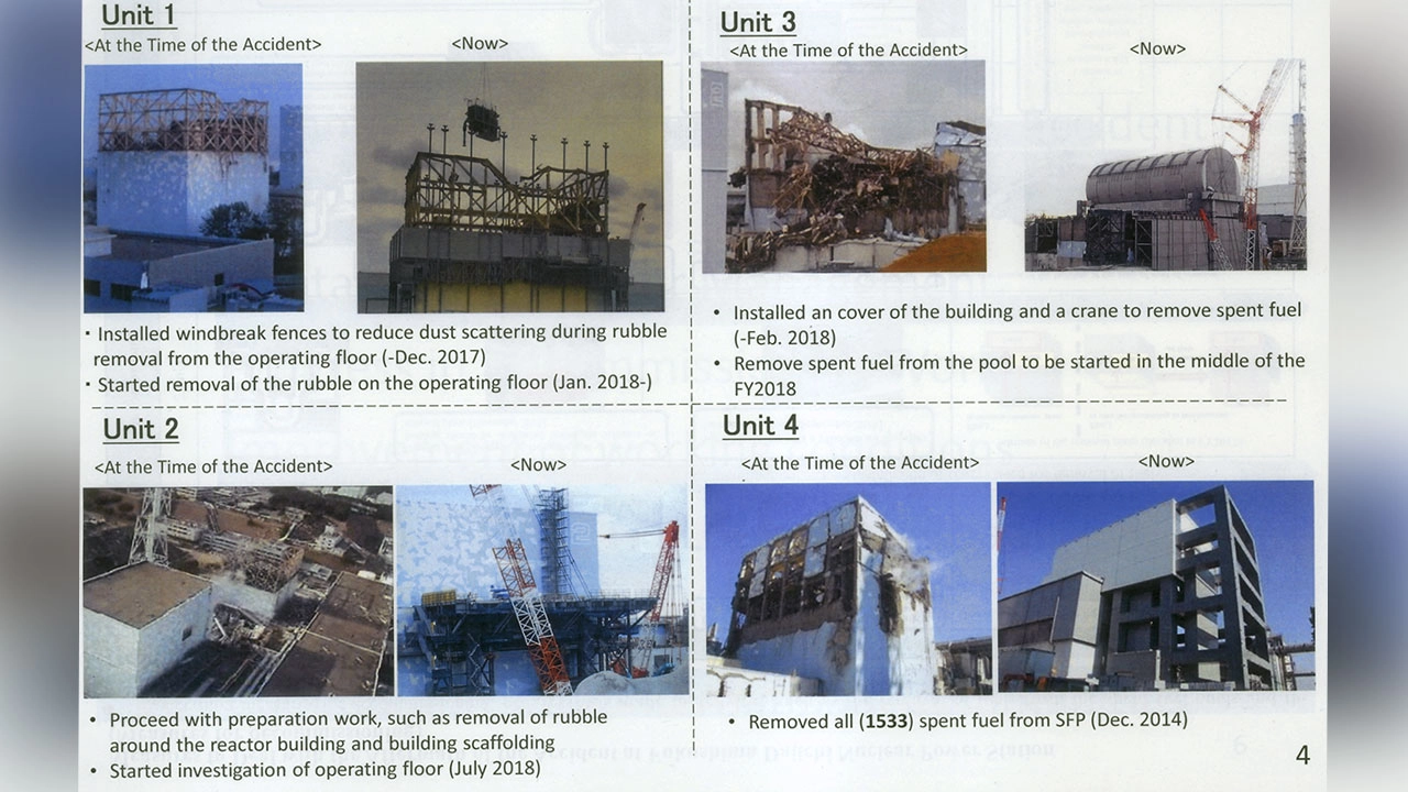 ภาพเปรียบเทียบอาคารเตาปฏิกรณ์โรงไฟฟ้านิวเคลียร์ฟูกูชิมะ ไดอิจิ ในช่วงเกิดเหตุที่ระเบิดพังเสียหาย กับในปัจจุบันที่มีการซ่อมแซมและต่อเติม.วันที่ 11 มี.ค.2554 ประเทศญี่ปุ่นได้รับบาดแผลอันแสนเจ็บปวด จากเหตุแผ่นดินไหวรุนแรง ตามมาด้วยคลื่นยักษ์สึนามิ ทำลายเสียหายเป็นวงกว้าง รวมถึงโรงไฟฟ้านิวเคลียร์ฟูกูชิมะ ไดอิจิ ที่กัมมันตภาพรังสีรั่วไหล กลายเป็นวิกฤตการณ์สร้างความหวาดวิตกไปทั่วโลกมาบัดนี้เวลาได้ผ่านไปกว่า 7 ปี ความรู้สึก “อันตราย” ยังไม่หายไปจากจิตใจคน เพียงแค่ได้ยินชื่อก็บังเกิดความขยาดหวาดกลัว ทั้งที่กระบวนการฟื้นฟูกำลังดำเนินไปอย่างเข้มข้นด้วยการที่หนังสือพิมพ์ไทยรัฐได้รับโอกาสจากกระทรวงต่างประเทศญี่ปุ่นไปเก็บข้อมูล จึงขอนำมาเล่าสู่กันฟังว่าสถานการณ์ได้เปลี่ยนไปอย่างมากแล้วครับ โดยเฉพาะในพื้นที่ตัวโรงไฟฟ้านิวเคลียร์ อธิบายง่ายๆคือ ตอนนี้เจ้าหน้าที่ปฏิบัติการกว่า 96 เปอร์เซ็นต์ ไม่ต้องสวมชุดป้องกันอีกต่อไป ติดเพียงแค่เครื่องวัดปริมาณรังสีตามมาตรฐานความปลอดภัย เนื่องจากสารรังสีที่เคยฟุ้งกระจายในอากาศลดลงในระดับต่ำมาก อยู่ในพื้นที่โรงไฟฟ้า 1 ชั่วโมงจะได้รับรังสีเท่ากับการเอกซเรย์ฟัน 2 ครั้ง ซึ่งต่ำมาก เดินตากแดดยังรุนแรงกว่าจะเหลือแต่เพียงบริเวณอาคารเตาปฏิกรณ์ 3 แห่ง ที่ยังคงอันตราย เนื่องจากตอนเกิดเหตุระบบหล่อเย็นล้มเหลว ทำให้แท่งปรมาณูความร้อนสูงหลอมละลายกลายเป็นซากที่แผ่กัมมันตภาพรังสีตลอดเวลา และทุกวันนี้ยังคงต้องอัดฉีดน้ำเข้าไปภายในเตา เพื่อป้องกันความเสียหายเพิ่มเติมเมื่อครั้งเหตุหายนะโรงไฟฟ้านิวเคลียร์ “เชอร์โนบิล” ในยูเครนปี 2529 เจ้าหน้าที่ที่เกี่ยวข้องได้ตัดสินใจนำ “โลงศพ” ตะกั่วบล็อกรังสีมาครอบซากเตาปฏิกรณ์หมายเลข 4 ที่เสียหาย ภาษาชาวบ้านคือฝังลืม แต่สำหรับกรณีโรงไฟฟ้าฟูกูชิมะ ไดอิจิ มีแนวโน้มว่ารัฐบาลญี่ปุ่นตั้งใจจะขจัดให้หมดสิ้นงานนี้ความท้าทายคือการเก็บกู้ซากเตาและแท่งปรมาณูที่หลอม ละลาย รวมถึงแท่งนิวเคลียร์ใช้แล้ว 1,573 แท่ง ที่ยังแผ่ความร้อนต่อเนื่องเสี่ยงต่อการหลอมละลาย ในอาคารยูนิต 1-2-3 โดยยูมิโกะ ฮาเนดะ เจ้าหน้าที่ฝ่ายประสานงานอุบัติภัยนิวเคลียร์ กระทรวงเศรษฐกิจ การค้าและอุตสาหกรรม เปิดเผยว่า รัฐบาลจะเริ่ม กระบวนการเก็บกู้แท่งเชื้อเพลิงปรมาณูเก่าออกจากอาคารยูนิต 3 ภายในปีนี้ ตามด้วยแท่งพลังงานในยูนิต 1 และ 2 ภายในปีงบประมาณ 2566“สำหรับตัวซากเตาและแท่งพลังงาน ที่หลอมละลาย และเป็นตัวต้นเหตุของหายนะกัมมันตภาพรังสีทั้งปวงนี้ ทางกา
