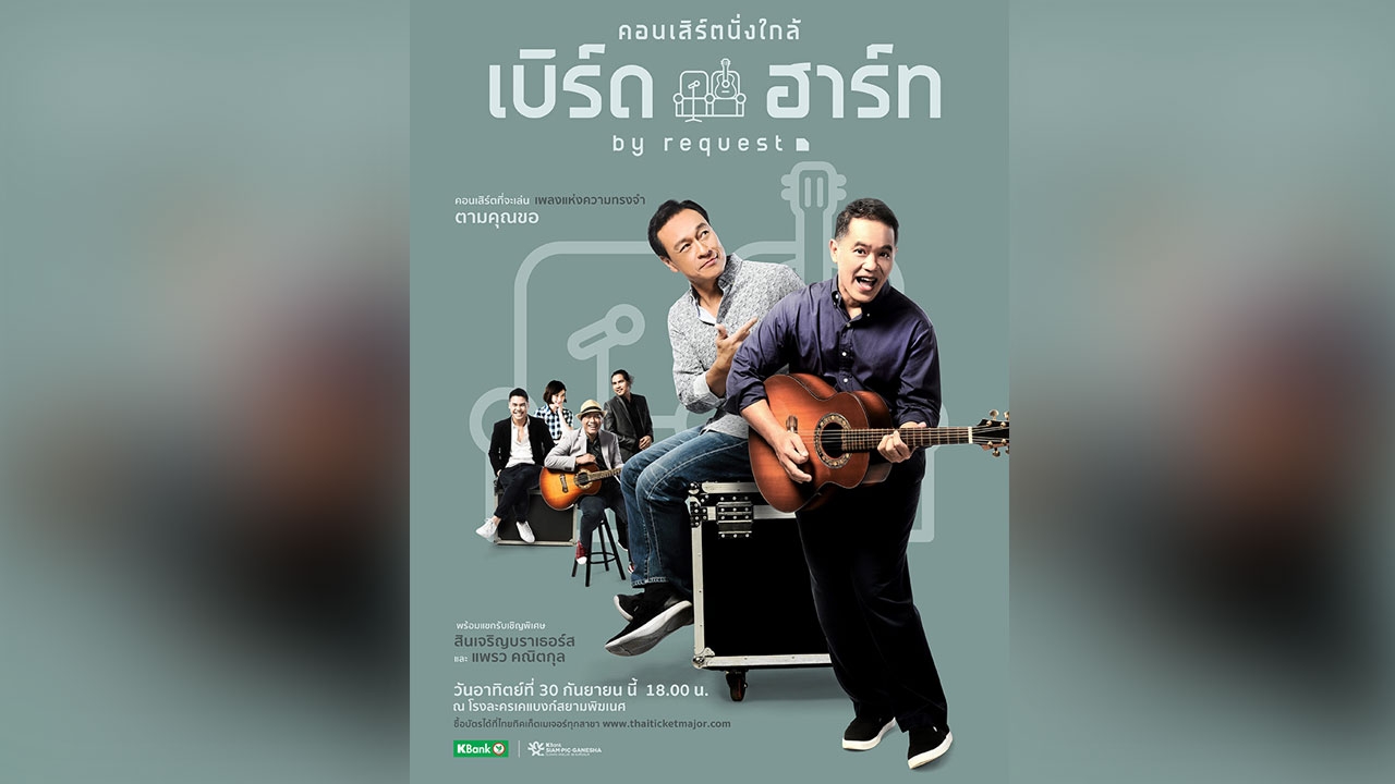 เตรียมย้อนวันวานกับศิลปินดูโอในตำนาน เบิร์ดกะฮาร์ท ในบรรยากาศสบายๆเป็นกันเอง ในคอนเสิร์ต นั่งใกล้ เบิร์ดกะฮาร์ท by request ที่จะเปิดโอกาสให้ผู้ชมได้ขอเพลงกับ พี่เบิร์ด-พี่ฮาร์ท กันสดๆอีกด้วย พบกับบทเพลงที่จะพาคุณย้อนกลับไปในช่วงเวลาพิเศษของวันวาน ไม่ว่าจะเป็นเพลงดังของ เบิร์ดกะฮาร์ท อย่าง ฝน, ลืม, รอรัก, Susan Jones และเพลงดังอื่นๆอีกมากมายทั้งไทยและสากลในช่วงเวลานั้น พร้อมแขกรับเชิญพิเศษ ศิลปินสาวเสียงดี แพรว คณิตกุล และอีกหนึ่งวงดนตรีที่จะมาร่วมสร้างสีสันบนเวที สินเจริญบราเธอร์ส มาร่วมย้อนไปในช่วงเวลาแห่งความทรงจำกับเพลงตามคุณขอ ในวันอาทิตย์ที่ 30 ก.ย.61 เวลา 18.00 น. ณ โรงละครเคแบงก์สยามพิฆเนศ สยามสแควร์วัน ชั้น 7 จองบัตรได้แล้ววันนี้ที่ไทยทิคเก็ตเมเจอร์ ทุกสาขา.