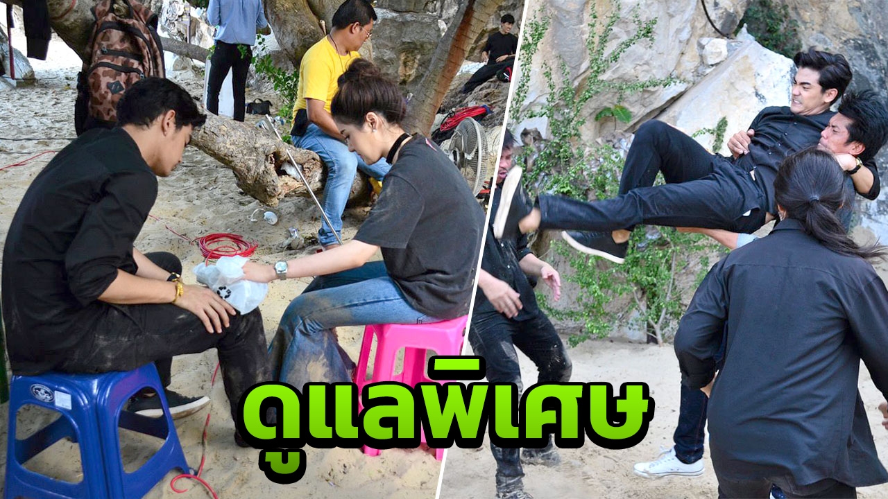 นอกจากจะหวานในจอแล้ว ฌอห์ณ จินดาโชติ กับ พิม-พิมประภา เค้ายังมีแอบหวานกันนอกจอด้วยนะจ๊า รู้กันยัง?? วันนี้เราจะพาเลาะหลังกองถ่ายละคร “ลูกไม้ลายสนธยา” ของ 2 สาวผู้จัด เจี๊ยบ-โสภิตนภา และ พิม-พิมพ์มาดา ซึ่งเป็นฉากที่ เดือนพัตรา (น้องพิม) ถูก หันตรา (เจี๊ยบ-โสภิตนภา) จับตัวมาเพื่อบังคับให้ขายบ้านให้ตน เหมหิรัญญ์ (ฌอห์ณ) พอรู้เลยรีบตามมาช่วย นานๆพิมจะได้บู๊ซะที.อ่านนิยายเรื่อง "ลูกไม้ลายสนธยา" ได้ที่นี่ “เจี๊ยบ”สายโหด!ผกก. อาร์ต-จาริวัฒน์ ยกกองไปถ่ายที่ชายหาด จ.เพชรบุรี ก่อนถ่ายก็เรียกนักแสดงมาซ้อมคิว ต้องบอกว่าเป็นคิวบู๊หนักที่สุดของ พิม เลย ฟาก ฌอห์ณ นี่ ผกก.ขออัปเกรดคิวบู๊ให้ยากกว่าเดิม ตอนช่วงซ้อมเลยมีผิดคิวเล็กน้อย จน ฌอห์ณ เจ็บเข่า แต่ทีมงานไม่ต้องวุ่นวาย เพราะสาว พิม รีบกุลีกุจอหาน้ำแข็งมาประคบให้เอง แป๊บเดียว ฌอห์ณ หายเจ็บลุกวิ่งได้ปร๋อเหมือนปาฏิหาริย์ (ฮา) พอถ่ายจริงเริ่มต้นที่ พิม มีคิวบู๊กับผู้ร้ายก่อน พอสู้ไม่ได้ก็เลยปาทรายใส่หน้าซะเลย ที่จริงก็เกือบหนีไปได้ละถ้าไม่โดน “ฌอห์ณ” โชว์บู๊เล่นใหญ่.พี่เจี๊ยบ เอาปืนมาจี้ซะก่อน แต่ พิม ก็ยังไม่สิ้นฤทธิ์ช่วงที่ เจี๊ยบ เอาปากกามาให้ พิม เซ็นกลับถูก พิม เอาปากกาแทงไปที่แขน จน เจี๊ยบ โกรธสั่งลูกน้องให้จัดการได้ตามใจชอบ แหม พวกขาหื่นจ้องตามันเชียว พิม ตกใจเลยร้องไห้ จังหวะนั้นเอง ฌอห์ณ ก็โผล่มาช่วย จากนั้นก็เป็นคิวบู๊ที่จัดกันชุดใหญ่ พอผู้ร้ายหนีกระเจิง ฌอห์ณ ก็หันมาจัดการ เจี๊ยบ ต่อพอคัต ฌอห์ณ รีบขอโทษ เจี๊ยบ ยกใหญ่ เรื่องของเรื่องกลัวผู้จัดไม่จ่ายค่าตัวน่ะสิ คริๆ...ตามชมได้คืนนี้ ทางช่อง 7. มะกี้เห็นพี่บู๊มั้ยน้องพิม. “น้องพิม” ดูแลอย่างดี.