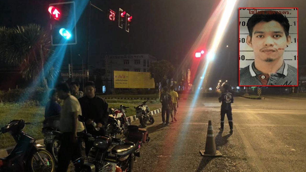 (ภาพเล็ก) นายคมกริช หรือแบงก์ มาเอี่ยม-ผู้ก่อเหตุหนุ่มเลือดร้อนจ่อยิงอริดับกลางสี่แยก หลังมีเรื่องทะเลาะกันมาก่อน แล้วไปพบผู้ตายนั่งอยู่ในผับเดียวกัน รอกระทั่งร้านปิด ผู้ตายขี่รถ จยย.กลับบ้าน คนร้ายชวนเพื่อนขี่รถ จยย.ไล่ตามมาจอดทางแยก เมื่อสบโอกาสชักปืนจ่อยิงร่วง ตำรวจรวบเพื่อนร่วมก่อเหตุ 1 คน ส่วนมือปืนหลบหนีอยู่ระหว่างติดตามตัวเหตุคนร้ายยิงคู่อริดับกลางสี่แยกรายนี้ เปิดเผยเมื่อเวลา 00.20 น. วันที่ 14 ต.ค. พ.ต.ต.ยุทธนา ภูเก้าแก้ว สว. (สอบสวน) สภ.บ้านโป่ง จ.ราชบุรี รับแจ้งจากเจ้าหน้าที่ของโรงพยาบาลบ้านโป่งว่า ชายถูกยิงเข้ามารักษาตัวเสียชีวิต ไปตรวจสอบพร้อม พ.ต.อ.ศักดิ์ชัย อินทรปรีชา ผกก. พ.ต.ท.สรายุทธ บุรีวชิระ รอง ผกก.สส. และตำรวจชุดสืบสวน ภายในห้องฉุกเฉินพบศพนายธีรนภ ปานณรงค์ อายุ 26 ปี อยู่บ้านเลขที่ 5/1 หมู่ 10 ต.กรับใหญ่ อ.บ้านโป่ง ถูกยิงด้วยปืน .22 กระสุนเข้าหน้าอกซ้าย 1 นัด ที่เกิดเหตุอยู่สี่แยกสัญญาณไฟแสงชูโต เขตเทศบาลเมืองบ้านโป่งไปตรวจสอบพบกองเลือด และรถ จยย. ของผู้ตาย 1 คันสอบสวนทราบว่า ผู้ตายมานั่งดื่มเหล้ากับกลุ่มเพื่อนที่ร้าน “PEE 1” ริมถนนเฉลิมพระเกียรติ ร.9 เขตเทศบาลเมืองบ้านโป่ง กระทั่งร้านปิดผู้ตายขี่รถ จยย.กลับบ้านจอดติดอยู่กลางสี่แยกไฟแดง เป็นจังหวะเดียวกับคนร้ายเป็นชาย 2 คนขี่รถ จยย.ซ้อนท้ายกันมา คนนั่งซ้อนท้ายใส่หมวกกันน็อกสีขาวแบบเต็มใบ สวมเสื้อคลุมแขนยาวสีดำ ลงจากรถชักปืนจ่อยิงผู้ตาย จากนั้นรีบขึ้นรถ จยย.หลบหนีไปต่อมาตำรวจตามจับกุมนายสถาพร บาททอง อายุ 30 ปี เป็นคนขี่รถ จยย.ให้กับมือปืน รวบตัวที่บ้าน เลขที่ 48/8 ต.บ้านโป่ง อ.บ้านโป่ง คุมตัวมาสอบสวนทราบว่า นายคมกริช หรือแบงก์ มาเอี่ยม อายุ 26 ปี อยู่บ้านเลขที่ 77/6 หมู่ 4 ต.ท่าผา อ.บ้านโป่ง จ.ราชบุรี เพื่อนเป็นผู้ก่อเหตุชักปืนยิงผู้ตาย สาเหตุมาจาก ก่อนหน้านี้ผู้ตายและนายแบงก์ มีเรื่องทะเลาะกันมาก่อน ช่วงเกิดเหตุมาเที่ยวที่ผับเดียวกัน นายแบงก์นั่งรอจนร้านปิด เห็นผู้ตายขี่รถ จยย.กลับบ้านชวนตนให้ขี่รถ จยย.ไล่ตาม เมื่อสบโอกาสชักปืนยิงแล้วหลบหนีไป ตำรวจแจ้งข้อหานายสถาพร ร่วมกันฆ่าผู้อื่นเป็นเหตุให้เสียชีวิต และอยู่ระหว่างติดตามนายแบงก์มาดำเนินคดีต่อไป