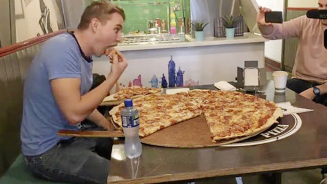 คิดจะหากิจกรรมมาร์เกตติ้ง สร้างชื่อ กวักลูกค้าให้เข้าร้านเยอะๆก็ต้องใช้ความกล้า+ลูกบ้าหน่อยแบบ ร้านพิซซ่า “Pinheads” หมุดปักหัว ณ กรุงดับลิน ในไอร์แลนด์ เป็นต้นมร.แอนโธนี่ เคลลี่ เจ้าของร้าน ยื่นคำท้าเสียงดังเลย...ใครที่กินพิซซ่าขนาด 32 นิ้วเกลี้ยงโต๊ะ มีมิลค์เชคให้ดื่มกันจุกคอ 2 แก้ว ในเวลาเดียว รับไปเลยเหนาะๆ...500 ยูโร หรือหมื่นแปดกว่าบาทค้าบบบพี่น้องงง!!!แถมติดป้ายชื่อเกียรติยศประดับที่ร้านโชว์ให้อีกด้วยแล้วก็มีคนรับคำท้าจริงๆ จนถึงตอนนี้ก็ร่วมร้อยรายแระไม่เห็นมีใครผ่านด่านอรหันต์ กระเพาะครากกันไปโหม้ดดด...ล่าสุดเจ้าหนุ่มนามว่า คอร์มัก โอ’เชีย ฟิตร่างมาเต็มที่35 นาทีฟาดไปได้แค่ 3 ชิ้นยักษ์ ไม่ถึงครึ่งหนึ่งของแผ่นวางบนโต๊ะกลมขนาดผ่านการท้าประลองมาหลายสนาม เจอทุ่งสังหารแป้งพิซซ่าพิฆาตคอร์มัก ยอมยกธงแล้วบ่นอืดๆ...อีโนช่วย (กู) ด้วยยย!!!มายุเหลียน