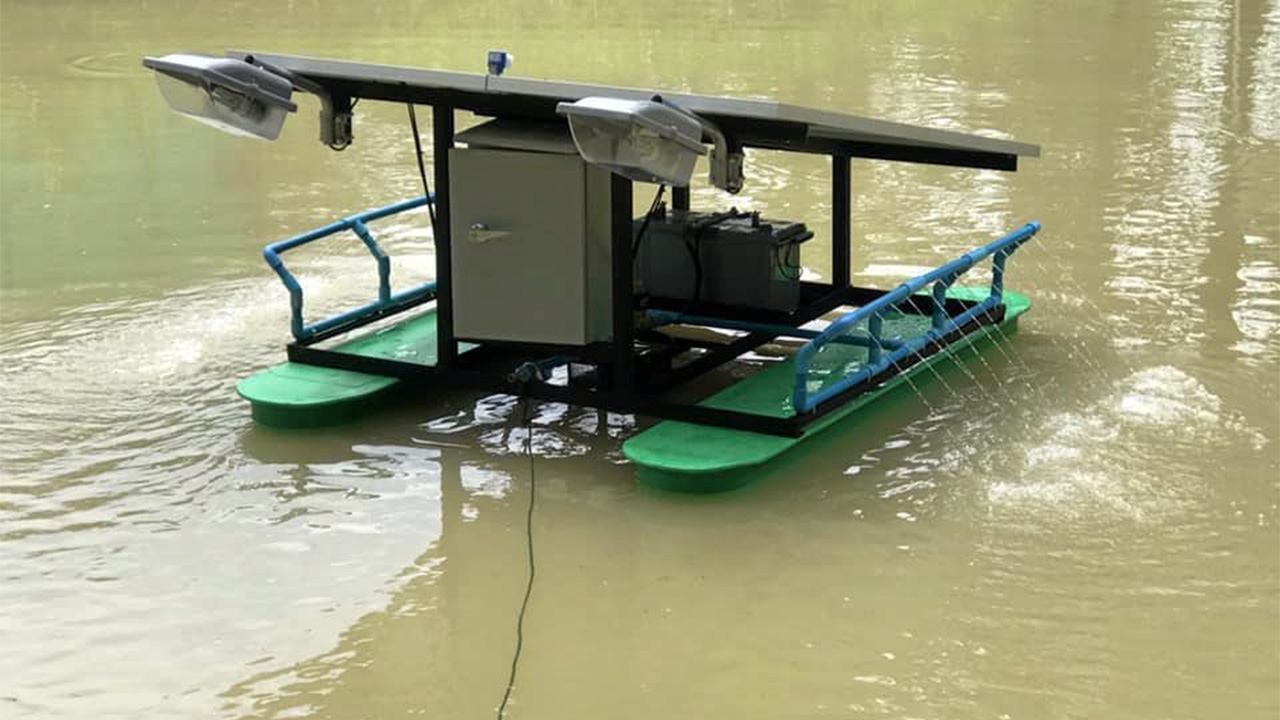 เครื่องบำบัดน้ำทั่วไป อาจมีเพิ่มออปชันต่างๆกันไป ไม่เหมือนเครื่องที่ออกแบบโดยวิทยาลัยการอาชีพชนแดน จ.เพชรบูรณ์ ที่เอามาโชว์ในงาน FAB LAB : Fabrication Lab หรือโครงการประลองต้นแบบทางวิศวกรรม ของกระทรวงวิทยาศาสตร์และเทคโนโลยีนอกจากใช้พลังงานแสงอาทิตย์แล้ว ยังช่วยเพิ่มออกซิเจนในน้ำ สูบน้ำไปใช้ในเรือกสวนไร่นาได้ ที่สำคัญตกกลางคืนยังมีหลอดไฟแบล็กไลต์ ล่อแมลงให้มาเป็นอาหารปลาได้อีกด้วย...เรียกว่าทำงานได้แบบครบเครื่องเป็นผลงานออกแบบของ อ.พีระวัส นิยมไทย แผนกวิชาอิเล็กทรอนิกส์ วิทยาลัยการอาชีพชนแดน จ.เพชรบูรณ์ ให้ตอบโจทย์การใช้พลังงานทางเลือกที่เป็นมิตรกับสิ่งแวดล้อม ขณะเดียว กันให้ประโยชน์อย่างครบวงจรในเครื่องเดียว ไม่ต้องไปซื้อเครื่องสูบน้ำมาสูบน้ำรดต้นไม้เพิ่ม สามารถตั้งเวลาสูบน้ำได้นอกจากนั้น เมื่อถึงเวลากลางคืน หลอดไฟแบล็กไลต์จะสว่างอัตโนมัติ ทำหน้าที่ล่อแมลงให้มาเป็นอาหารปลาในบ่อ นอกจากปลาจะได้อาหารโปรตีนสูงแล้ว ยังช่วยลดแมลงศัตรูพืช ลดความเสียหายของพืชในแปลงได้อีกทาง และในอนาคตได้เตรียมพัฒนาเครื่องรุ่นใหม่ ให้มีเครื่องตั้งเวลาให้อาหารปลาอัตโนมัติได้ในตัวอีกด้วยคุณสมบัติของเครื่อง ประกอบไปด้วย แผงโซลาร์เซลล์ ขนาด 150 วัตต์ 2 แผง สะสมพลังงานแสงอาทิตย์มาเก็บในแบตเตอรี่ ชนิด Deepcycle 12 โวลต์ ขนาด 100 แอมป์, ปั๊มน้ำแช่ DC ขนาด 160 วัตต์ 12 โวลต์ อัตราการไหล 3 ลบ.ม.ต่อชั่วโมง ส่งน้ำได้สูง 10 เมตร, หลอดแบล็กไลต์ล่อแมลงขนาด 5 วัตต์ 2 ดวง ขนาดตัวเครื่องกว้าง 150 ซม.× ยาว 180 ซม.× สูง 100 ซม. หนัก 90 กก. สามารถตั้งไทม์เมอร์ควบคุมการสูบน้ำได้ตามต้องการ หรือควบคุมระยะไกลแบบไร้สายได้ไกล 300 เมตรนับเป็นอีกนวัตกรรมที่ตอบโจทย์ได้อย่างครอบคลุม เหมาะกับบ่อน้ำขนาดเล็ก ขนาดกลาง สนนราคาพร้อมประกอบ 29,000 บาท สนใจสอบถามกันได้ที่ 08-6449-3742.สะ–เล–เต