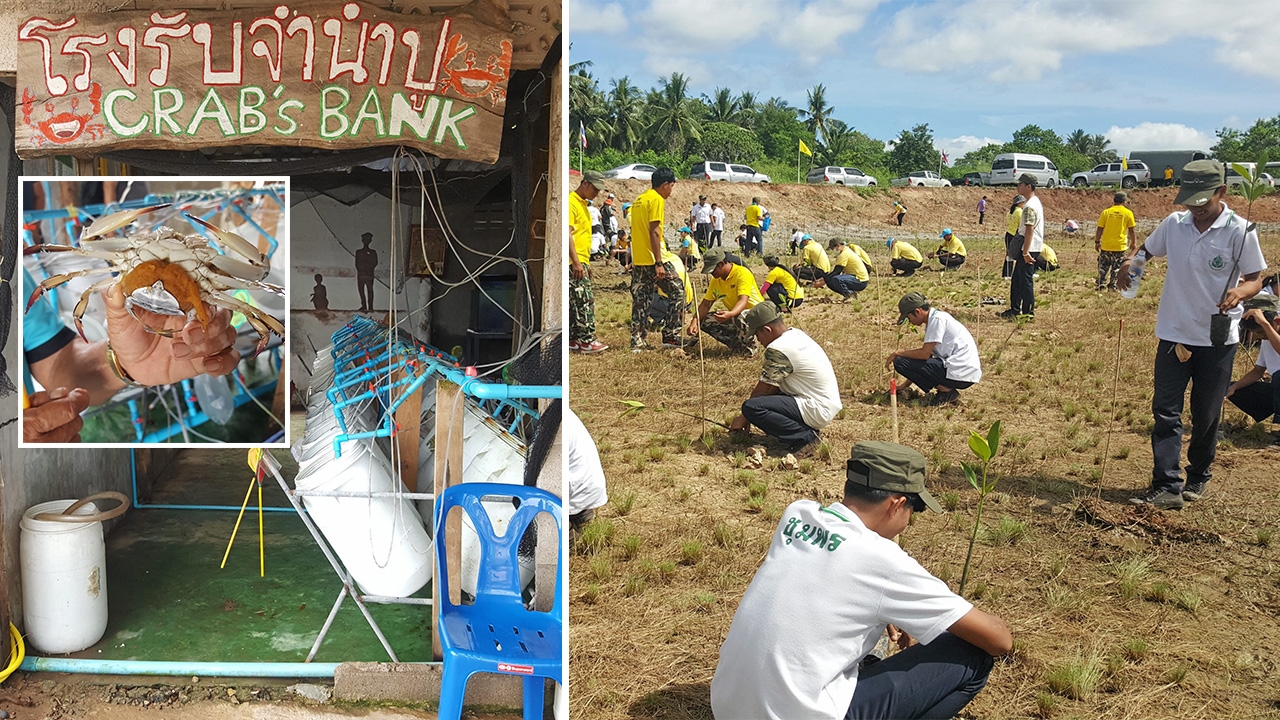 เมื่อเดือนตุลาคมที่ผ่านมา ทีมงานรายการครอบจักรวาลได้เดินทางไปถ่ายทำรายการที่จังหวัดชุมพร จังหวัดที่ได้รับฉายาว่าเป็นประตูสู่ภาคใต้ดังปรากฏอยู่ในคำขวัญประจำจังหวัดว่า “ประตูสู่ภาคใต้ ไหว้เสด็จในกรม ชมไร่กาแฟ และหาดทรายรี ดีกล้วยเล็บมือ ขึ้นชื่อรังนก”การเดินทางไปชุมพรสามารถไปได้ทั้งทางรถยนต์ รถไฟ และเครื่องบิน ท่าอากาศยานชุมพรเปิดใช้มาประมาณยี่สิบปีแล้ว แต่หลายคนอาจจะยังไม่ทราบว่าที่ชุมพรก็มีสนามบินด้วย การเดินทางโดยเครื่องบินจากดอนเมืองไปชุมพร ใช้เวลาประมาณหนึ่งชั่วโมงกว่านิดๆ เป็นทางเลือกหนึ่งในการเดินทาง สำหรับผู้ที่ต้องการความสะดวกรวดเร็ว ในขณะที่การเดินทางโดยรถยนต์ หรือรถไฟ จากกรุงเทพฯไปชุมพร ใช้เวลาประมาณ 6 ชั่วโมงเป็นอย่างน้อย ปลูกป่าชายเลน. ป่าชายเลน อุทยานแห่งชาติหมู่เกาะชุมพร.ทีมงานรายการครอบจักรวาล ได้ไปถ่ายทำรายการเกี่ยวกับการปลูกป่าชายเลน ซึ่งจังหวัดชุมพรร่วมกับการไฟฟ้าฝ่ายผลิตแห่งประเทศไทย (กฟผ.) สำนักงานพัฒนาสังคมและความมั่นคงของมนุษย์ วิทยาลัยเกษตรและเทคโนโลยีชุมพร และกรมอุทยานแห่งชาติ สัตว์ป่า และพันธุ์พืช จัดกิจกรรม “เราทำความดีด้วยหัวใจ ปลูกป่าชายเลน เทิดไท้องค์ราชัน” ครั้งที่ 3 ปลูกป่าชายเลนเพิ่ม 5 ไร่ เพื่อฟื้นฟูพื้นที่อุทยานแห่งชาติหมู่เกาะชุมพรคุณฤดีมาศ ปางพุฒิพงศ์ ผู้ช่วยผู้อำนวยการฝ่ายกลยุทธ์ความยั่งยืน กฟผ. เล่าให้ฟังถึงที่มาของการปลูกป่าชายเลนในครั้งนี้ว่า กฟผ.จัดกิจกรรม “เราทำความดีด้วยหัวใจ ปลูกป่าชายเลน เทิดไท้องค์ราชัน” ขึ้นเป็นครั้งที่ 3 ต่อเนื่องมาตั้งแต่เดือนกรกฎาคมที่ผ่านมา โดย กฟผ.ได้เชิญชวนเครือข่ายทุกภาคส่วนร่วมกันปลูกป่าชายเลนในพื้นที่จังหวัดชุมพร ซึ่ง ก่อนหน้านี้ได้ร่วมกันปลูกมาแล้ว 12,065 ไร่ แบ่งเป็นป่าบก 10,165 ไร่ และป่าชายเลน 1,900 ไร่กฟผ.มีความมุ่งมั่นในการปลูกป่า ทั้งป่าบกและป่าชายเลนทั่วประเทศมายาวนานกว่า 24 ปี ช่วยเพิ่มพื้นที่สีเขียวให้กับประเทศแล้วกว่า 466,000 ไร่ โดยนำหลักการปลูกป่าตามผลการศึกษาทางวิชาการมาเป็นแนวทาง คือ ปลูก 1 ปี และบำรุงรักษาป่าที่ปลูกต่อเนื่อง 2 ปี เพื่อให้มั่นใจได้ว่าต้นไม้ที่ปลูกไว้จะเจริญเติบโตแข็งแรงดีมาก มีเกณฑ์ในการเลือกพื้นที่ปลูกป่าตามความต้องการของชุมชนอย่างแท้จริง ทำให้ชุมชนรู้สึกมีส่วนร่วมเป็นเจ้าของผืนป่า และเต็มใจที่จะช่วยดูแลรักษาป่าให้เติบโตอย่างยั่งยืน สะพานแขวน. อุทยานแห่งชาติหมู่เกาะชุมพร.จังหวัดชุมพรเคยมีป่าชายเลนที่อุดมสมบูรณ์ เป็นที่พักพิงและอนุบาลของสัตว์น้ำวัย