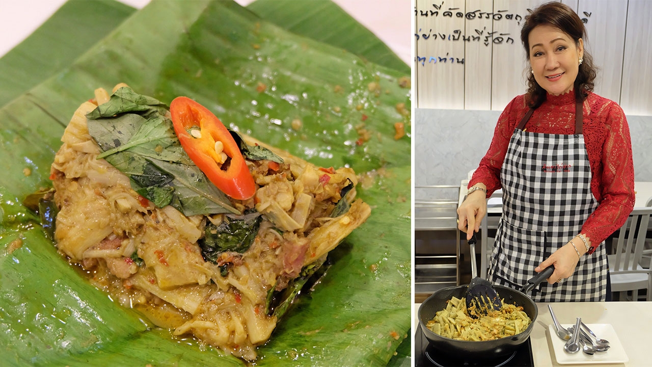 การได้ลงมือทำในสิ่งที่ตัวเองชอบและได้ถ่ายทอดตัวตนลงไปในสิ่งที่ทำ ถือเป็นเคล็ดลับความสำเร็จอย่างหนึ่ง ดังจะเห็นได้จาก คุณณี-รวีรัตน์ ลักษณวิสิษฐ์ ผู้ก่อตั้งร้านนิตยาไก่ย่าง ร้านอาหารไทย-อีสานที่ครองใจลูกค้ามานานกว่า 15 ปี ปัจจุบันมีถึง 15 สาขา แม้คุณณีจะไม่ได้เป็นคนอีสานโดยแท้ แต่ด้วยความชื่นชอบอาหารอีสาน จึงเกิดแรงบันดาลใจให้คิดค้น คัดสรร และสร้างสรรค์เมนูอีสานยอดฮิตมากมายให้มีรสชาติถูกปากคนส่วนใหญ่ จนเป็นที่ติดอกติดใจของใครหลายๆคน คุณณีเล่าว่า จากที่ตนเองชอบอาหารอีสาน เพราะสามารถรับประทานได้ไม่รู้เบื่อ ทั้งยังดีต่อสุขภาพ เพราะมีผักเป็นเครื่องเคียงและส่วนผสมหลัก จึงนำความอร่อยของรสชาติแบบดั้งเดิมมาประยุกต์ โดยปรับสูตรให้เข้ากับความชอบส่วนตัว จนได้รสชาติที่เข้ากันอย่างลงตัว ประกอบกับเป็นคนพิถีพิถันเรื่องการกิน จึงชอบสรรหาวัตถุดิบที่ดีที่สุดมาใช้ ซึ่งถือเป็นหัวใจหลักในการปรุงอาหาร จึงอยากส่งต่อรสชาติความอร่อยของอาหารไทย-อีสาน ในแบบฉบับของนิตยาไก่ย่าง ที่สั่งสมประสบการณ์มาเป็นเวลานานให้ทุกคนได้ลิ้มลอง วันนี้คุณณี จึงอยากส่งต่อการทำอาหารพื้นเมืองอีสาน เมนู “หมกหน่อไม้ไก่ย่าง” ซึ่งมีลักษณะใกล้เคียงกับห่อหมกของภาคกลาง เป็นเมนูที่ทำได้ไม่ยาก แต่หากจะได้รสชาติแบบนัวๆ เข้าถึงเนื้อของเมนูนี้ อาจต้องใช้เวลาในการเตรียมวัตถุดิบและมีขั้นตอนการทำมากพอสมควร โดยนางเอกของเมนูนี้อยู่ที่หน่อไม้ คุณณีแนะนำให้เลือกใช้หน่อไม้รวกคุณภาพส่งออก ซึ่งมีความกรอบ นุ่ม ไม่เปรี้ยว หรือหากหาซื้อตามร้านค้าทั่วไป ก็ควรเลือกหน่อไม้ที่มีลักษณะดังกล่าว ส่วนไก่ย่างก็เลือกใช้ไก่เนื้อแน่นที่ถือว่าเป็นซิกเนเจอร์ความอร่อยของทางร้าน ซึ่งใช้ไก่บ้านที่มีหนังบาง ไขมันน้อย เนื้อแน่นไม่เหนียว ที่ผ่านการหมักถึงเครื่องเทศอย่างดีทั้งรากผักชี พริกไทย กระเทียม และยังผสานด้วยเครื่องแกงสูตรเฉพาะ ซึ่งหากไม่มีเวลาโขลกเครื่องแกงเอง ก็สามารถใช้เครื่องแกงอ่อมแทนได้ ซึ่งจะให้รสชาติที่ใกล้เคียง ส่วนเคล็ดลับของการทำเมนูนี้คือ การห่อด้วยใบตองนึ่งและเครื่องแกงสดใหม่ที่มีส่วนผสมของสมุนไพรต่างๆ จะยิ่งช่วยเพิ่มความหอมที่เป็นเสน่ห์เฉพาะตัวให้กับเมนูนี้ได้เป็นอย่างดีขั้นตอนการเตรียมหน่อไม้ ส่วนผสม : หน่อไม้รวก 1 กิโลกรัม/น้ำคั้นใบย่านาง 8 ถ้วยตวง/ตะไคร้ 3 ต้น......วิธีทำ 1) หน่อไม้ทุบพอแตก ตัดเป็นท่อน ประมาณ 2 นิ้ว 2) จากนั้นนำลงไปต้มน้ำทิ้ง 2 รอบ เพื่อรสชาติขมเฝื่อนจะหายไป 3) นำหน่อไม้ต้มกับน้ำใบย่านาง ใส่เก