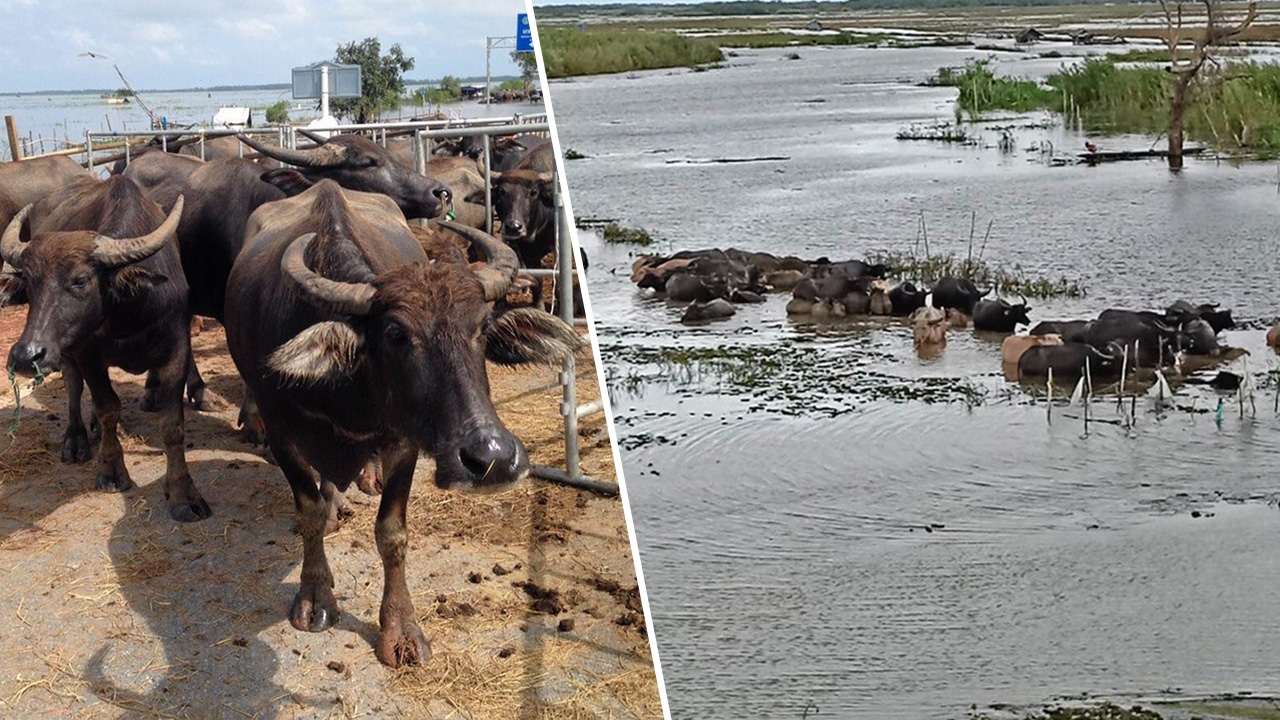 นายกู้เกียรติ วงศ์กระพันธุ์ ผู้ว่าราชการจังหวัดพัทลุง กล่าวว่า ในช่วงนี้ภาคใต้ มีฝนตกต่อเนื่อง อาจเป็นปัญหากับกลุ่มผู้เลี้ยงควายน้ำในพื้นที่ทะเลน้อย ที่ชาวบ้านจะสร้างคอกควาย (หนำควาย) ให้ควายพักผ่อนช่วงเย็น ส่วนช่วงเช้าจะปล่อยควายออกจากคอกให้หากินหญ้าในทะเลน้อย หากน้ำทะเลหนุนสูงจนไม่สามารถต้อนฝูงควายพักในช่วงเย็น เมื่อควายต้องแช่น้ำนานติดต่อข้ามวันข้ามคืนจะทำให้ควายเครียด เสี่ยงต่อติดโรคปากเท้าเปื่อยที่สามารถแพร่ระบาดไปยังฝูงอื่น และทำให้ควายล้มตายทั้งฝูงได้ “เพื่อไม่ให้เกิดวิกฤติปัญหาเหมือนปี 2558 ที่ฝูงควายล้มตายนับร้อยตัว จังหวัดพัทลุงจึงร่วมกับกองอำนวยการรักษาความมั่นคงภายในราชอาณาจักร (กอ.รมน.) กรมปศุสัตว์ เขตห้ามล่าสัตว์ป่า ขอใช้พื้นที่พิเศษบริเวณริมถนนสะพานเฉลิมพระเกียรติเส้นทางระโนด-ทะเลน้อย (สะพานเอกชัย) จ.พัทลุง สร้างคอกพักสัตว์ชั่วคราว เตรียมสำหรับไล่ต้อนฝูงควายขึ้นมาพักบริเวณดังกล่าว” นายสัตวแพทย์ณรงค์ สุทธิสังข์ ปศุสัตว์จังหวัดพัทลุง เผยว่า ปัจจุบันพื้นที่อำเภอควนขนุนมีควายน้ำ 5,000-6,000 ตัว จะมีพฤติกรรมแตกต่างจากควายน้ำในพื้นที่อื่น หากคนแปลกหน้าเข้าใกล้ ฝูงควายจะแตกตื่น บางตัวไล่ขวิดดังนั้นการดูแลสุขภาพ ทั้งฉีดวัคซีน ให้ยาปฏิชีวนะ ในระยะนี้และหลังน้ำลด เจ้าของผู้เลี้ยงเท่านั้นที่สามารถเข้าใกล้ได้ ส่วนเจ้าหน้าที่ปศุสัตว์ และหน่วยอาสาสมัคร (อสม.) จะทำหน้าที่ได้แค่เป็นพี่เลี้ยงให้คำแนะนำเท่านั้น ส่วนอาหาร ทาง สนง.ปศุสัตว์ ได้จัดเตรียมเสบียงอาหารทั้งหญ้าแห้ง และอาหารผสมสำเร็จ (TMR) ไว้รองรับ พร้อมแจกถุงยังชีพซึ่งประกอบไปด้วยแร่ธาตุ วิตามิน ยาถ่ายพยาธิสำหรับสัตว์ ในกรณีที่มีสัตว์เสียชีวิตจากอุทกภัย ขอให้เจ้าของสัตว์เลี้ยง ถ่ายรูปสัตว์ที่ล้มตายไว้เป็นหลักฐานส่งให้กับสำนักงานป้องกันและบรรเทาสาธารณภัย ซึ่งแต่ละครัวเรือนจะได้รับค่าชดเชยความเสียหายไม่เกิน 2 ตัว ตั้งแต่ 8,000-20,000 บาท แล้วแต่อายุของควาย.