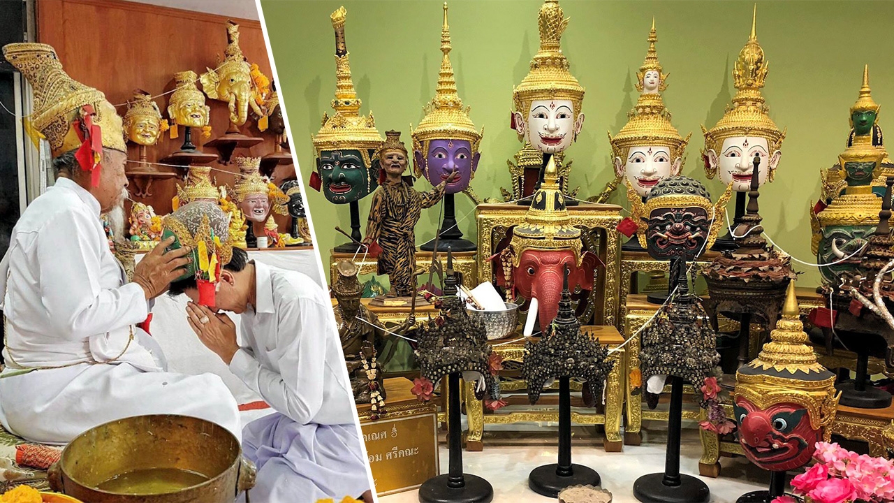 “พิธีไหว้ครู” ที่กระทำกันมาแต่โบราณนั้น จะเลือกวันพฤหัสบดีซึ่งถือเป็น “วันครู” ประกอบพิธี ด้วยวันดังกล่าวเชื่อกันว่าช่วงกลางวันจะเป็นธาตุน้ำกับธาตุไฟยามค่ำคืนเป็นฤกษ์ดาวพระ เคราะห์เปิดโอกาสให้วิชาความรู้แก่มวลมนุษย์ จึงสมควรกระทำกันในวันมงคลที่ว่านี้ส่วนเดือนที่เลือกตามประเพณีโบราณจะเลือกเดือนคู่ 2, 4, 6, 8, 10, 12 แต่อนุโลมให้เดือนคี่เฉพาะเดือน 9 ซึ่งเป็นเลขมงคลแห่งปี อีกเหตุผลที่ให้เลือกเอาวันข้างขึ้นพฤหัสบดี เพราะตรงกับ “วันฟู” อันหมายถึงวันแห่งความฟูเฟื่องเรืองรุ่งตลอดไปพรหมินทร์ สุมานา ผู้จัดการธุรกิจการแสดง สวนนงนุชพัทยา วัย 55 ปี ที่เคยทำงานช่างสิบหมู่ อยู่วิทยาลัยในวังศาลายา ในพระบรมราชูปถัมภ์ สมเด็จพระเทพรัตนราชสุดาฯ สยามบรมราชกุมารี เล่าว่า องค์ประกอบพิธีไหว้ครูนั้น ต้องมีครูผู้กระทำพิธีไหว้หัวโขนที่อัญเชิญมาตั้งประดับโต๊ะหมู่บูชา ทั้งเทพเทวดา พระภรตฤาษีองค์ที่เหล่านักแสดงนิยมเรียกอย่างคุ้นปากว่า “พ่อแก่”ส่วนหัวโขนอื่นๆ ได้แก่ พระอิศวร พระนารายณ์ พระพรหม พระอินทร์ พระพิฆเนศ พระวิสสุกรรม พระปรคนธรรพ พระปัญจสีขร พระพิราพ ทั้งหมดถือเป็นองค์เทพแทนครูโขนครูละคร ซึ่งได้รับอิทธิพลจากลัทธิฮินดูผสมผสาน พร้อมกันนี้ยังมีเครื่องสังเวยกับเครื่องเซ่น แบ่งเป็น 3 ชุด ถวายแด่พระมหาเทพ เทวดา นางฟ้า ด้วยอาหารสุก ส่วนพระครูฤาษีกับพระปรคนธรรพถวายเป็นอาหารสุกเช่นกัน จะมีพระพิราพซึ่งจัดเป็นเทพอสูรที่ถวายด้วยอาหารดิบสิ่งที่จะขาดไม่ได้ก็คือปี่พาทย์เครื่องใหญ่หรือเครื่องคู่ ซึ่งจะวางเครื่องเซ่นไว้ตรงหน้า ได้แก่ บายศรี มะพร้าวอ่อน กล้วยน้ำว้า ผลไม้ 7 อย่าง อ้อยทั้งเปลือก เหล้า หมากพลู บุหรี่ ไม้ขีดไฟ อาหารสุกและดิบจำพวกหัวหมู เป็ด ไก่ กุ้ง ปลา ปู เครื่องในที่เป็นตับกับหัวใจ ไข่ไก่ดิบ น้ำเย็น“พิธีการเริ่มจากการไหว้รำลึกถึงคุณครูบาอาจารย์ ต่อมาเป็นพิธีครอบครูให้ศิษย์รายใหม่ได้ครอบก่อนจะไปสวมหัวโขนแสดงได้ ใครไม่เคยครอบอย่าพิเรนทร์ยกขึ้นมาสวมหัวเด็ดขาด เพราะหัวโขนทุกหัวผ่านการเบิกเนตรและลงคาถาอาคมไว้ก่อนแล้ว จึงอาจจะทำให้คนอุตริมีอันเป็นไป ไม่ปวดหัวก็ปวดท้องได้ การครอบจะใช้พระครูฤาษีซึ่งหมายถึงครูทั่วไปครอบ จากนั้นจะเป็นพระพิราพ ใช้ครอบแทนครูโขน และหัวเทริดโนราใช้ครอบแทนครูละคร”พรหมินทร์ ผู้ผ่านการรำมือถวายครูและครอบจากครูวีระ มีเหมือน ศิลปินแห่งชาติสาขาหนังใหญ่ วัย 76 ปี เล่าอีกว่า พิธีสำคัญสูงสุดในวันนั้น จะเป็นพิธีรับมอบโดยครูอาวุโสสูงสุดจะทำพิธีมอบแล้วครอบให้แ