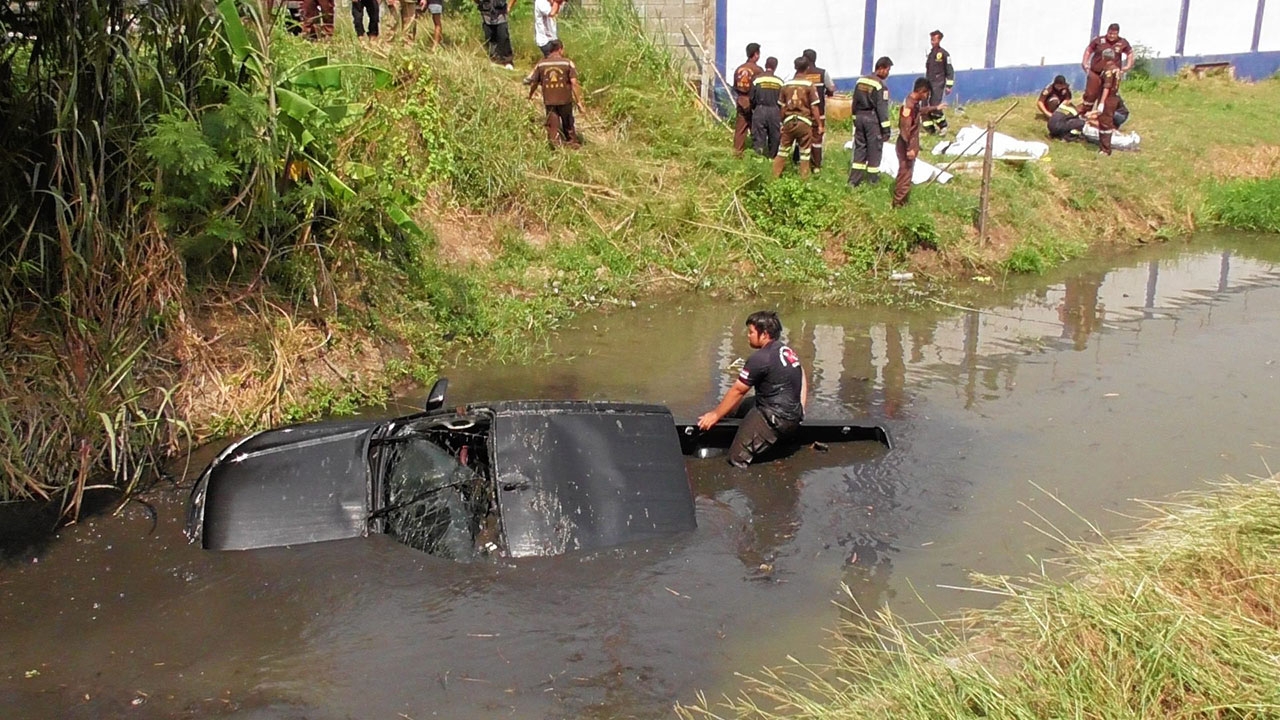 จม ‘ทะเลโคลน’ คนช่วย-ไม่ทันย่านนครชัยศรีหนุ่มนครชัยศรี ขับกระบะ พร้อมแฟนสาว น้าชาย และ เพื่อนบ้าน พากันไปไหว้องค์ พระปฐมเจดีย์ ก่อนพา น้ามาส่งโรงงานทำ ลูกบิดประตูแล้วเร่งเครื่องออกไปได้แค่ไม่กี่สิบเมตร จู่ๆรถเสียหลักพุ่งตกคลองพลิกหงายท้อง ตัวรถจมลงไปในโคลนและมีน้ำทะลักเข้าท่วมเกือบมิดคัน พลเมืองดีกระโดดลงไปช่วยคนในรถขึ้นมาบนฝั่ง พยายามปั๊มหัวใจยื้อชีวิตแต่ไม่ทันสิ้นใจสลดดับยกคัน 5 ศพ ตำรวจดูกล้องวงจรปิดหาปมมรณะ คาดอาจก้มลงหยิบสิ่งของ หรือเกิดอาการวูบกะทันหันสลดกระบะตกคลองตายยกคัน 5 ศพ เปิดเผยเมื่อเวลา 13.20 น. วันที่ 16 ก.พ. พ.ต.ท.ประสบ พันแจ้ง รอง ผกก. (สอบสวน) สภ.นครชัยศรี จ.นครปฐม รับแจ้งมีอุบัติเหตุรถกระบะตกคลองมีผู้เสียชีวิตหลายราย เหตุเกิดในคลองบางกระอุ่น หน้าบริษัท จาร์ตัน กรุ๊ป จำกัด ผลิตกุญแจและลูกบิดประตู หมู่ 4 ต.วัดสำโรง อ.นครชัยศรี ไปตรวจสอบพร้อม มูลนิธิสุขศาลานุเคราะห์นครปฐมและหน่วยบรรเทาสาธารณภัยหลวงพ่อสมหวัง ในคลองเกิดเหตุมีระดับน้ำลึกแค่ 1 เมตร พบรถกระบะอีซูซุ ดีแมคซ์ แค็บ สีดำ ทะเบียน ยผค 7966 นครปฐม พลิกหงายท้องจมน้ำและโคลนเกือบมิดคัน มีเพียงล้อหลังโผล่พ้นน้ำมาเล็กน้อย กู้ภัยและชาวบ้านได้ลงไปช่วยคนขับและผู้โดยสารในรถทั้งหมด 5 ราย ขึ้นมาปั๊มหัวใจริมตลิ่ง แต่ช่วยไม่ทันทั้งหมดเสียชีวิตไปแล้ว ทราบชื่อผู้ตายนายวรวิทย์ สวาสดิ์วงค์ อายุ 22 ปี คนขับรถ อยู่บ้านเลขที่ 21 หมู่ 3 ต.วัดสำโรง อ.นครชัยศรี จ.นครปฐม น.ส.สิริทรา อินทสินธ์ อายุ 22 ปี แฟนสาว อยู่บ้านเลขที่ 56/7 หมู่ 8 ต.หนองงูเหลือม อ.เมืองนครปฐม นางพิสมัย บุญเจริญ อายุ 43 ปี ด.ญ.จิรนันท์ กัญหา อายุ 5 ขวบ และ ด.ญ.ญามา ทรัพย์มรรค อายุ 2 ขวบ หลานของนางพิสมัย นำศพทั้งหมดส่งชันสูตรที่ รพ.ห้วยพลูนายสมจิตต์ สวาสดิ์วงค์ อายุ 52 ปี พ่อของนายวรวิทย์ และเป็นพนักงานในบริษัทดังกล่าว ให้ ข้อมูลกับตำรวจว่า ลูกชายเพิ่งย้ายข้าวของมาอยู่กับตนได้แค่ 2 วัน และกำลังหางานทำ ก่อนเกิดเหตุลูกชายพาแฟนสาว น้าชาย พร้อมนางพิสมัยและเด็กอีก 2 คน ที่เป็นคนรู้จักกัน ไปไหว้องค์พระปฐมเจดีย์ ก่อนขับรถมาส่งน้าชายในโรงงานที่ตนทำงานอยู่ ก่อนขับรถออกไปไม่นาน สักพักมีคนมาบอกว่าลูกชายขับรถตกคลองหน้าโรงงานแล้วนายอาคม บุญเหมาะ อายุ 52 ปี พนักงานบริษัท จาร์ตัน กรุ๊ป จำกัด พลเมืองดีที่กระโดดลงไปช่วยเหลือผู้เสียชีวิต เล่าว่า ขณะเดินอยู่หน้าโรงงานได้ยินเสียงคนตะโกนว่ามีรถตกคลอง วิ่งมาดูพบรถคันเกิดเหตุจมน้ำเกือบมิดคันแล้ว รีบกระโดดลงไปแต่เปิดประตูรถไม่ออก เนื่องจากตัวรถจมโคลน จากนั้นมี