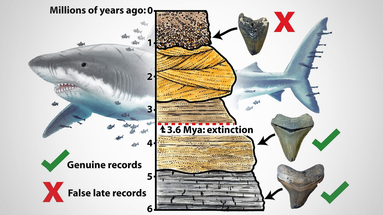 ภาพ : Robert Boesseneckerฉลามยักษ์เม็กกาโลดอน (Megalodon) ที่เคยเห็นในภาพยนตร์ฮอลลีวูดนั้น หากยังมีอยู่จริงก็คงทั้งน่าตื่นตะลึงและน่าสะพรึงกลัวไม่น้อย แต่เม็กกาโลดอนก็สูญพันธุ์และเหลือเพียงตำนาน ซึ่งการศึกษาตัวอย่างซากดึกดำบรรพ์หรือฟอสซิล (fossil) ก่อนหน้านี้เผยว่า เจ้าฉลามขนาดมหึมาขนาดยาวกว่า 15 เมตรที่ชื่อ โอโตดัส เม็กกาโลดอน (Otodus megalodon) มีแนวโน้มว่าจะสูญพันธุ์ไปเมื่อ 2,600,000 ปีที่ผ่านมาแต่ผลวิจัยใหม่นำโดยนักบรรพชีวินวิทยาสัตว์เลี้ยงลูกด้วยนม จากวิทยาลัยชาร์ลสตัน ในรัฐเซาท์แคโรไลนา สหรัฐอเมริกา ได้ประเมินช่วงเวลาการสูญพันธุ์ใหม่ของเม็กกาโลดอน โดยใช้ชุดข้อมูลจากทั่วโลกเช่นเดียวกับการวิจัยก่อนหน้านี้ และตรวจสอบซากฟอสซิลอย่างละเอียดพร้อมวิเคราะห์ข้อมูลเชิงสถิติอีกครั้ง ก็พบว่าการสูญพันธุ์ของโอโตดัส เม็กกาโลดอน ต้องเกิดขึ้นเมื่อประมาณ 1,000,000-2,500,000 ปีก่อนหน้าที่ข้อมูลเดิมคาดการณ์ไว้นั่นหมายความว่าโอโตดัส เม็กกาโลดอนน่าจะสูญพันธุ์ไปนานก่อนที่จะมีแมวน้ำ, สิงโตทะเล, วัวทะเลปลา, โลมา และวาฬ อย่างไรก็ตาม ยังไม่ชัดเจนถึงสาเหตุการสูญพันธุ์ของเม็กกาโลดอน แต่คาดว่าการแข่งขันกับฉลามขาวยักษ์ชนิดใหม่อาจเกี่ยวข้องกับการสูญพันธุ์ของเม็กกาโลดอน.