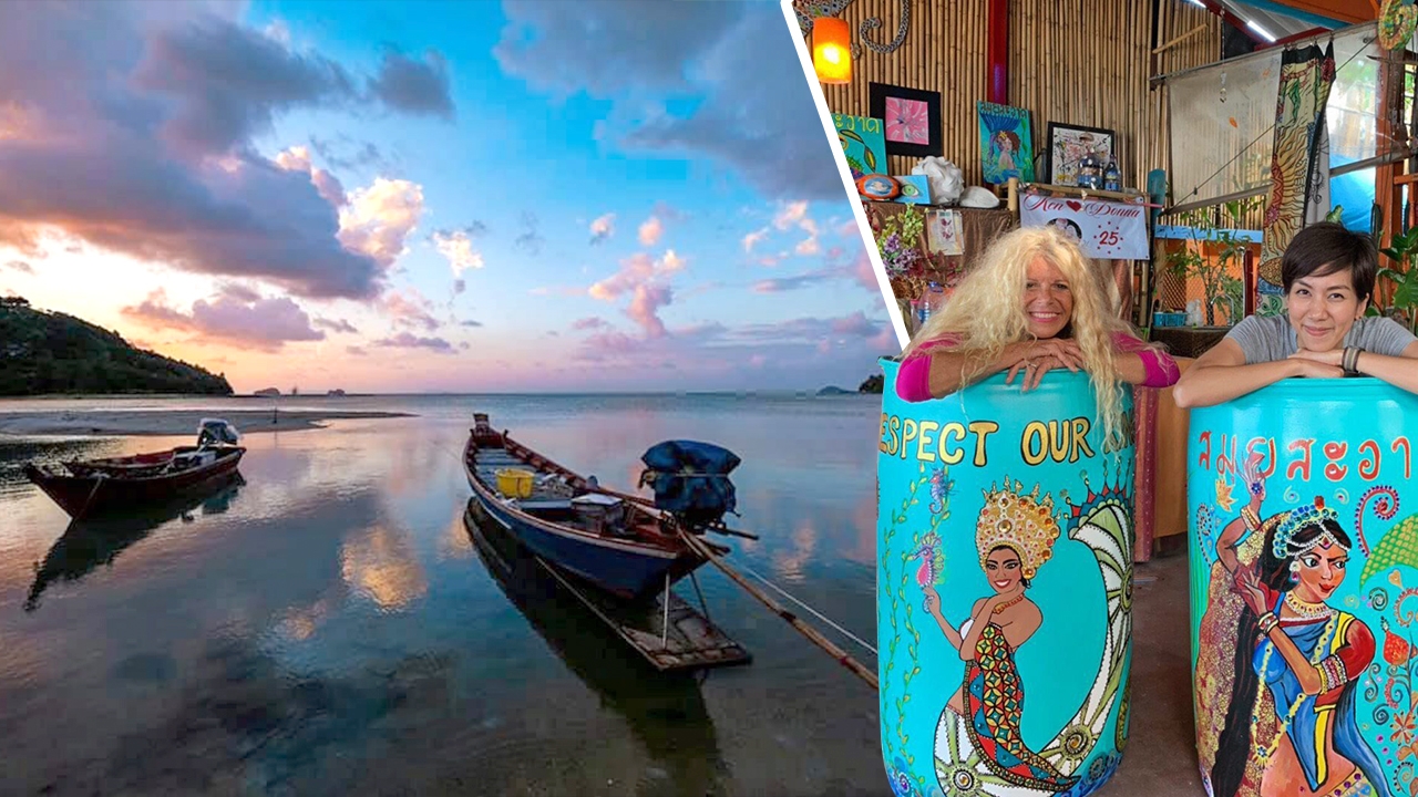 แม้จะไม่เป็นที่ชื่นชอบเท่าไหร่ของนักดำน้ำ สำหรับทะเลในฝั่งอ่าวไทย ทั้งในแง่สีของน้ำและปะการังที่สวยไม่เท่าทะเลในฝั่งอันดามัน อย่างภูเก็ต พังงา หรือกระบี่แต่...เกาะสมุยก็มีอะไรดีๆอีกด้านที่แอบซ่อนอยู่ น้องหญิง...อรวรรณ จิตต์ภักดี ผู้จัดการฝ่ายประชาสัมพันธ์ อวานี โฮเทลส์ แอนด์ รีสอร์ท ชักชวนร่วมทริป เที่ยวเกาะ ดำน้ำ ชมพระอาทิตย์ตก ที่โรงแรมอวานี พลัส สมุย ซึ่งตั้งอยู่ในเขตบ้านตลิ่งงาม ท้ายเกาะโน่น...ห่างหายจากเกาะสมุยมาหลายปี กลับมาอีกครั้ง สมุยเปลี่ยนไปมาก แม้จะยังมีกลิ่นอายของชีวิตราตรี และการท่องเที่ยวแบบอยู่ยาวของฝรั่งแบ็กแพ็กอยู่บ้าง แต่ในบางช่วงของเกาะ ไลฟ์สไตล์ของนักท่องเที่ยวกำลังเริ่มเปลี่ยนไป กลายเป็นกลุ่มนักท่องเที่ยวสูงวัย นักท่องเที่ยวที่มาแบบครอบครัว และคนทำงานที่ใช้เวลาในช่วงหยุดพักร้อน หนีหนาวมาชิลๆที่เกาะสมุย อวานี พลัส โรงแรมเล็กๆบนอ่าวพังกา ใกล้หาดตลิ่งงาม ทางตะวันตกเฉียงใต้ของเกาะสมุยอาจเป็นอีกที่ที่คุณจะสามารถมาใช้ชีวิตแบบ Slow life ได้Cindy Delhomel รีสอร์ต เมเนเจอร์ อารมณ์ดี บอกกับเราว่า อวานี พลัส สมุย (Avani+ Samui) เป็นรีสอร์ตระดับอัปสเกลแห่งใหม่ ในเครืออวานี ที่ออกแบบให้เป็นสถานที่พักผ่อนริมทะเลที่ห่างไกลจากความวุ่นวาย มีห้องพักทั้งหมด 58 ห้อง ให้เลือกในแบบต่างๆ ทั้งดีลักซ์ พูลวิลล่าส่วนตัว พูลวิลล่าริมชายหาด ห้องพักแต่ละห้องตกแต่งโดยได้แรงบันดาลใจมาจากธรรมชาติรอบตัว ที่ต้องการให้ผู้เข้าพักได้ความรู้สึกโปร่งสบายด้วยแสงธรรมชาติ และสัมผัสความเป็นส่วนตัวอย่างสูงสุด และทันทีที่เราเช็กอิน เข้าห้องพัก สะดุดตากับป้ายต้อนรับกิ๊บเก๋ที่เขียนด้วยลายมือแบบง่ายๆ บนผนังพร้อมรูปถ่าย และชื่อของพนักงานที่จะเป็นคนดูแลห้องพักของเรา...แค่นี่ก็ได้ใจไปไม่รู้เท่าไหร่ละกิจกรรมวันแรก...บนเกาะสมุย คือ การไปเรียนวาดรูป แต่ไม่ได้วาดธรรมดา คอร์สศิลปะของเราวันนี้เป็นการเพนต์สีถังขยะ ที่บ้านของคุณป้าดอนน่า เรส แหม่มชาวอเมริกันวัย 66 ปี ที่ขายทรัพย์สินทุกอย่างของเธอในฟลอริดา เพื่อย้ายมาใช้ชีวิตบั้นปลายกับสามีที่เกาะสมุย หลังจากลูกชายของเธอเสียชีวิตลง กิมมิกในการเพนต์ถังขยะของป้าดอนน่า คือ เมอร์เมด หรือนางเงือก ซึ่งเธอบอกว่าเป็นเทพีผู้พิทักษ์ และการเลือกเพนต์ถังขยะก็เพื่อจะทำให้ทุกคนตระหนักถึงความรับผิดชอบต่อการมาเที่ยวที่เกาะสมุยแห่งนี้ ด้วยการไม่ทิ้งขยะและไม่ทำให้ชายหาดสกปรก3 ชั่วโมงที่บ้านป้าดอนน่าผ่านไปอย่างรวดเร็ว ระหว่างการเพนต์ถังขยะ เธอจะเปิดเพลงในจังหวะต่างๆ