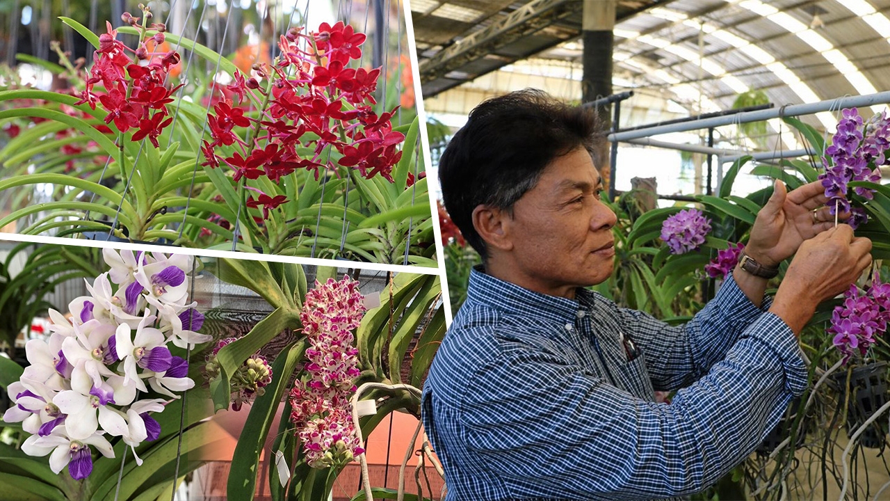 ปกติกล้วยไม้โดยทั่วไป จะไม่ค่อยมีกลิ่นหอม ยกเว้นกล้วยไม้ในตระกูลช้างที่มีกลิ่นหอม... นับเป็นเรื่องแปลกใหม่ของโลก เมื่อนักปรับปรุงพันธุ์กล้วยไม้ชาวไทย สามารถปรับปรุงพันธุ์กล้วยไม้จนได้กล้วยไม้ลูกผสมพันธุ์ใหม่ที่มีความหอม นำไปปลูกเลี้ยงได้ทั่วโลก“เรื่องนี้เราคิดทำมาตั้งแต่ 10 ปีแล้ว เพื่อหากล้วยไม้พันธุ์ใหม่ๆป้อนตลาด การทำให้กล้วยไม้มีความหอม เป็นหนึ่งในความตั้งใจที่เราจะทำให้ได้ เพราะในโลกนี้มีเพียงกล้วยไม้สกุลช้างเท่านั้นที่มีกลิ่นหอม แต่ปลูกเลี้ยงได้แค่ 5 ประเทศ อินเดีย มาเลเซีย อินโดนีเซีย ฟิลิปปินส์ และไทย ประเทศนอกเหนือจากนี้เอาไปปลูกไม่ได้ เราเลยต้องหาวิธีการที่ทำให้กล้วยไม้มีกลิ่นหอม โดยนำกล้วยไม้ตระกูลช้างมาเป็นพ่อพันธุ์ ผสมเกสรกล้วยไม้ตระกูลอื่นๆ กว่าจะสำเร็จต้องใช้เวลานานหลายปี เพราะการผสมพันธุ์ข้ามตระกูลให้กล้วยไม้ตั้งท้องต้องใช้เวลานาน 9 เดือน ถึงติดเป็นเมล็ด เอาไปเพาะในแล็บ 2-3 ปี จนได้เป็นกล้วยไม้ขนาด 1 นิ้ว นำออกมาปลูกเลี้ยงไว้ในแปลงตามธรรมชาติอีกอย่างน้อย5 ปี ถึงจะให้ดอกออกมาให้ดมดูถึงจะรู้ว่าหอมหรือไม่” เขี่ยเกสรตัวผู้ไปผสมพันธุ์ .พันธพัฒน์ คุ้มวิเชียร ผจก.แอร์ออร์คิดส์ ซุปเปอร์มาร์เกตกล้วยไม้ อ.บางเลน จ.นครปฐม อธิบายถึงการปรับปรุงพันธุ์ให้กล้วยไม้ลูกผสมที่มีกลิ่นหอม อันถือกำเนิดมาจากต้นพ่อพันธุ์ตระกูลช้าง มีตั้งแต่ช้างกระ, ช้างแดง, ช้างเผือก, ช้างพลาย, ช้างส้ม, ช้างการ์ตูน, ช้างชมพู, ช้างม่วง และ ช้างขาวปากชมพูและกล้วยไม้ตัวแรกที่ปรับปรุงพันธุ์ได้ประสบความสำเร็จ เป็นลูกเกิดจากการผสมกับแม่ สกุลแอสโคเซนดร้า เป็นกล้วยไม้เขตร้อนเหมาะกับประเทศไทย ดอกบานทุก 2-3 เดือน และนาน 2-3 สัปดาห์ ลูกผสมที่ออกมาจะมีกลิ่นหอมอ่อนๆตัวต่อมาเป็นการผสมกับ สกุลเข็ม (เอื้องเข็มแดง) เพื่อต้องการให้ลูกผสมออกมามีขนาดเล็ก มีสีสวยงาม ทนอากาศร้อน และมีกลิ่นหอมแรง ช้างการ์ตูน. ลูกผสมแม่สกุลฟาแลนนอปซิส. ลูกผสมแม่สกุลไอยเรศ. ช้างกระ. ลูกผสมแม่สกุลเข็ม. ลูกผสมแม่สกุลแอสโคเซนดร้า.อีกตัวเกิดจากการผสมกับกล้วยไม้ สกุลม็อคคาร่า ที่ออกดอกได้ดีในฤดูแล้ง ให้ดอกในปริมาณสูง เป็นไม้ที่สมบูรณ์และอยู่ได้ทนทาน ตัดดอกใส่แจกันให้น้ำดูแลรักษาอย่างดี จะอยู่ได้ 2-4 สัปดาห์ กลิ่นหอมอ่อนๆตัวที่ 4 เป็นลูกผสมเกิดจากแม่ สกุลฟาแลนนอปซิส เหมาะสำหรับใส่กระถาง คุณสมบัติโดดเด่น ในเรื่องอายุการใช้งานทนทาน หากดูแลรักษาที่ถูกต้อง ใช้งานได้นานถึง 2-3 เดือน ทำให้เป็นที่นิยมนำไปใช้ในการจัดประดับสถานที่ต่างๆ เพราะ