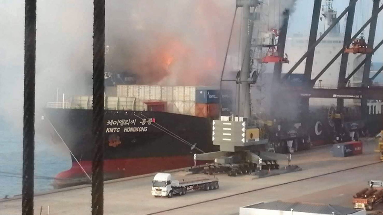 ระทึกแหลมฉบังเพลิงโหมรุนแรงปวดร้อนแสบตา ระบุเขตอันตรายระทึก เพลิงไหม้ตู้คอนเทนเนอร์บนเรือบรรทุกสินค้า ขณะจอดโหลดตู้สินค้านำเข้าจากต่างประเทศลงที่ท่าเทียบเรือ A 2 ภายในท่าเรือแหลมฉบัง จ.ชลบุรี ควันไฟดำทะมึนสลับเสียงระเบิดตูมสนั่น สารเคมีปริศนาฟุ้งกระจาย โดนผิวหนังแล้วคันปวดแสบปวดร้อน ต้องหามส่งโรงพยาบาลนับร้อยคน เร่งอพยพชาวบ้านในชุมชนใกล้เคียงไปอยู่สถานที่ปลอดภัย พร้อมประกาศในพื้นที่รัศมี 15 กิโลเมตรเป็นเขตพื้นที่สีแดงอุบัติเหตุเพลิงไหม้บนเรือบรรทุกสินค้าทำให้สารเคมีฟุ้งกระจายครั้งนี้ เปิดเผยเมื่อเวลา 07.30 น. วันที่ 25 พ.ค. พ.ต.อ.ปรีชา สมสถาน ผกก.สภ.แหลมฉบัง ต.ทุ่งสุขลา อ.ศรีราชา จ.ชลบุรี รับแจ้งเหตุเพลิงไหม้ตู้คอนเทนเนอร์บนเรือบรรทุกสินค้า KMTC Hongkong บริเวณท่าเทียบเรือ A 2 เขตท่าเรือแหลมฉบัง หมู่ 10 ต.ทุ่งสุขลา เหตุเกิดขณะคนงานนำตู้คอนเทนเนอร์บรรทุกสินค้านำเข้าจากต่างประเทศลงจากเรือลำดังกล่าว รีบไปตรวจสอบพร้อมเจ้าหน้าที่หน่วยกู้ภัยสว่างประทีปศรีราชา เจ้าหน้าที่ดับเพลิงท่าเรือแหลมฉบัง รถดับเพลิงเทศบาลนครแหลมฉบัง ประสานรถดับเพลิงเทศบาลเจ้าพระยาสุรศักดิ์ และเทศบาลเมืองศรีราชาเข้ามาช่วยเหลือที่เกิดเหตุพบเจ้าหน้าที่ของท่าเรือ เร่งปิดกั้นไม่ให้บุคคลผู้ไม่เกี่ยวข้องเข้าไปภายใน พร้อมลำเลียงผู้ได้รับบาดเจ็บเป็นพนักงานในท่าเรือ A 2 ไม่ต่ำกว่า 20 คน ออกจากจุดเกิดเหตุ เนื่องจากถูกสารเคมีที่เผาไหม้กระเด็นใส่ตามร่างกายแล้วมีอาการปวดแสบ ปวดร้อนและคัน เจ้าหน้าที่ดับเพลิงระดมดับไฟที่ลุกไหม้รุนแรงบนเรือลำดังกล่าว ท่ามกลางแสงเพลิงแดงฉาน ควันไฟดำทะมึนพวยพุ่งขึ้นท้องฟ้า สลับกับเสียงระเบิดดังเป็นระยะ ตู้คอนเทนเนอร์บางตู้กระเด็นตกทะเล ผ่านไปกว่า 4 ชั่วโมง สามารถคุมเพลิงให้อยู่ในวงจำกัด แต่ยังเข้าตรวจสอบที่เกิดเหตุไม่ได้เพราะยังมีความร้อนสะสมอยู่มาก ได้จัดกำลังเจ้าหน้าที่เฝ้าดูเหตุการณ์ตลอดเพราะเกรงไฟปะทุขึ้นมาอีกผู้เห็นเหตุการณ์เล่าว่า ขณะทำงานในท่าเรือ A 2 ได้ยินเสียงระเบิด 1 ครั้ง จากนั้นเห็นควันสีขาวลอยขึ้นจากเรือลำดังกล่าว ไม่กี่อึดใจเห็นควันดำลอยขึ้นสูงพร้อมเปลวเพลิงโหมไหม้รุนแรง และมีเสียงระเบิดดังกึกก้อง ไอความร้อนแผ่กระจายมาปะทะจนต้องหนีออกมา บางคนถูกสารเคมีที่เผาไหม้กระเด็นใส่ปวดแสบปวดร้อนตามร่างกาย และได้กลิ่นสารเคมีฉุนแสบจมูก ขณะที่ชาวบ้านในชุมชนใกล้เคียงรับรู้ได้ถึงกลิ่นสารเคมีที่สูดดมเข้าไป เจ้าหน้าที่ต้องนำส่งโรงพยาบาลในพื้นที่ โดยเฉพาะที่ รพ.สมเด็จพระบรม
