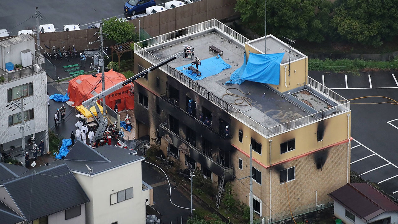 ช็อกฆ่าหมู่สุดสยองญี่ปุ่น รวบชายคลั่งมือราดนํ้ามันเผยแฟนคลับในไทยเพียบหนุ่มคลั่งบุกราดน้ำมันเผาสตูดิโอผลิตการ์ตูนชื่อดังของญี่ปุ่น ดับสยอง 33 ศพ เผยเป็นบริษัทที่เคยผลิต แอนิเมชั่นดัง แนวสาวนักดนตรีมัธยมวัยใส ที่ได้รับความนิยมจากแฟนคลับเมืองไทยเรื่อง “เค-อง! ก๊วนดนตรี แป๋วแหวว” ตำรวจแดนปลาดิบรวบตัวผู้ต้องสงสัยได้แต่ยังไม่กล้าสรุปสาเหตุ ทราบแค่ตะโกนว่า “ไปตายเสีย” ก่อนลงมือเผา ขณะที่ ชาวเน็ตญี่ปุ่นผนึกกำลังร่วมลงขันระดมหาเงินช่วยกอบกู้สตูดิโอดัง นายกฯญี่ปุ่นแถลงการณ์ร่วมแสดงความเสียใจ ชี้เป็นเรื่องน่าสยดสยองจนไม่อาจหาคำมาบรรยายสำนักข่าวต่างประเทศรายงานเหตุสยองในประเทศญี่ปุ่น เมื่อช่วงเช้า 10.30 น. วันที่ 18 ก.ค. ตามเวลาท้องถิ่น หรือเวลา 08.30 น. ตามเวลาประเทศ ไทย ว่า ได้เกิดเพลิงไหม้ที่อาคารบริษัท เกียวโต แอนิเมชั่น ผู้ผลิตการ์ตูนอนิเมะชื่อดังของญี่ปุ่น ส่งผลให้มีผู้เสียชีวิตอย่างน้อย 33 ศพ ขณะที่ผู้บาดเจ็บมีทั้งสิ้น 35 ราย จำนวนนี้อาการสาหัส 10 ราย สำหรับ สถานที่เกิดเหตุเป็นอาคารพาณิชย์สูง 3 ชั้น ตั้งอยู่ในเขตอุจิ ทางภาคใต้ของนครเกียวโต เมืองหลวงเก่าของญี่ปุ่น พระเพลิงลุกไหม้เผาผลาญลุกลามไปทั่วอาคาร ที่ชั้น 2 และชั้น 3 เปลวไฟพุ่งออกจากหน้าต่างพ่นเขม่าควันสีขาวฟุ้งไป ทั่วเจ้าหน้าที่ต้องใช้เวลากว่า 2 ชั่วโมงจึงควบคุมเปลวเพลิงให้สงบลงเจ้าหน้าที่ดับเพลิงระบุว่า จากการเข้าตรวจสอบในอาคาร พบศพเหยื่อเคราะห์ร้ายนอนตายกระจัด กระจายเกลื่อนที่บริเวณชั้น 1 จำนวน 12 ศพ ชั้น 2 จำนวน 1 ศพ โดยเฉพาะช่องทางบันไดเดินขึ้นชั้น 3 ของอาคาร มีศพผู้เสียชีวิตกองรวมกันนับกว่า 10 ศพอย่างน่าสยดสยอง ทั้งคาดว่าน่าจะมีผู้สูญหายอีก จำนวนหนึ่ง เนื่องจากขณะเกิดเหตุมีผู้อยู่ในอาคารถึง 70 คนขณะที่สถานีโทรทัศน์เอ็นเอชเคของญี่ปุ่นรายงานว่า มีความเป็นไปได้ว่าเหตุการณ์สยองครั้งนี้เป็นคดีวางเพลิง เพราะหลังเกิดเหตุเพลิงไหม้ ตำรวจญี่ปุ่นจับกุมชายต้องสงสัย 1 ราย เป็นชาวญี่ปุ่น อายุ 41 ปี ไม่เปิดเผยชื่อ ซึ่งพยานในที่เกิดเหตุระบุว่า ชายรายนี้ได้ลงมือราดน้ำมันรอบๆอาคารก่อนจุดไฟ พร้อมตะโกนว่า “ไปตายเสีย” จากนั้นก็วิ่งหนีออกจากที่เกิดเหตุก่อนล้มนอนกับพื้น ในสภาพผมถูกไฟไหม้ และมีรอยเลือดเปื้อนเท้า ทั้งนี้ จากการสอบสวนเบื้องต้นทราบว่าผู้ต้องสงสัยไม่ใช่อดีตพนักงาน หรือมีความเกี่ยวข้องใดๆกับสตูดิโอทั้งสิ้นหลังเกิดเหตุการณ์นายชินโสะ อาเบะ นายกรัฐมนตรีญี่ปุ่น ออกแถลงการณ์แสดงความเสียใจต่อเหตุการณ์ว่าเป็นเรื่องน่าสยดสยองจ