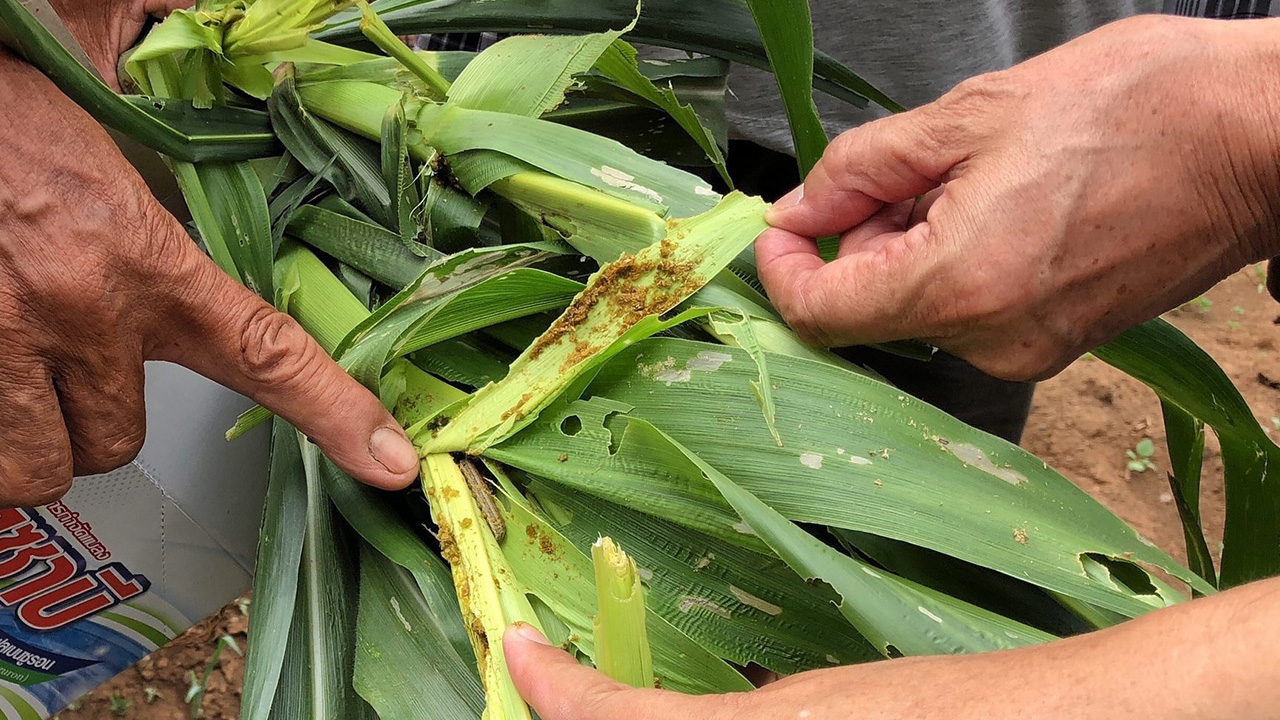 สถานการณ์ภัยแล้งเริ่มส่งผลกระทบต่อเกษตรกร ล่าสุดเกษตรกรชาวไร่ข้าวโพดสุพรรณบุรี วอนภาครัฐช่วย หลังเจอหนอนกระทู้ลายจุดทำลายเพียงข้ามคืนนายชากร จงสมจิตต์ ชาวบ้านหมู่ 14 ต.จรเข้สามพัน อ.อู่ทอง จ.สุพรรณบุรี เผยว่าหลังรัฐประกาศภัยแล้ง เกษตรกรในพื้นที่จึงปรับพื้นที่นามาทำไร่ข้าวโพดประมาณ 4,000 ไร่ ลงเมล็ดพันธุ์ได้ 14 วัน ข้าวโพดเจริญเติบโตวัดจากพื้นดินสูง 1 ฟุต แต่เพราะสภาพอากาศแล้ง ทำให้หนอนกระทู้ข้าวโพดลายจุดขาดแหล่งอาหาร จึงระบาดเข้ากัดกินต้นอ่อนข้าวโพด ทั้งๆที่ก่อนหน้านี้ชาวบ้านเกษตรกรพยายามฉีดพ่นยาเคมีกำจัดแต่ไม่ได้ผล “แปลงข้าวโพดเลี้ยงสัตว์ที่ปลูกไว้หลายช่วงอายุ ใบพรุน ใบเหลือง หักต้นแล้วฉีกยอดตรวจสอบพบมีหนอนกระทู้ข้าวโพดลายจุด และไข่ที่รอการฟักตัว ต้นไหนยอดใบอ่อนหมด หนอนตัวเต็มวัยมีน้อย จะเหลือเพียงไข่ที่วางไว้ คาดว่าตัวที่โตคงย้ายไปกัดกินยอดอ่อนต้นอื่นๆ สร้างความเดือดร้อนให้ชาวไร่ข้าวโพด บางรายแทบไม่มีทุนปลูกใหม่” ด้าน ร.ต.ท.สมิตร ปิยะพันธุ์ นายตำรวจที่ใช้เวลาว่างทำไร่ข้าวโพด บอกว่า ปลูกข้าวโพดเลี้ยงสัตว์มาหลายรุ่นไม่ค่อยเจอปัญหาหนอนกระทู้ลายจุดทำลาย กระทั่งช่วงอากาศร้อน ฝนไม่ตก ทำให้เกิดการระบาดอย่างรวดเร็ว ชาวไร่หลายรายเริ่มวิตกว่า จะไม่สามารถเก็บเกี่ยวผลผลิตได้ เพราะหนอนทำลายต้นข้าวโพดจนเสียหายหมด พื้นที่ 12 ไร่ ลงทุนค่าเมล็ดพันธุ์ ปุ๋ย เคมี ค่าปรับพื้นที่ ค่าแรง 26,060 บาท หวังจะมีรายได้เสริม แต่เพียงชั่วข้ามคืน หนอนกระทู้ลงทำลายหมดแปลง เช้าเหลือแต่ตอข้าวโพด นางสมศรี เผดิมอรรถ เกษตรกรอีกรายกล่าวว่า ปลูกข้าวโพด 70 ไร่ ที่ผ่านมาเจอปัญหาหนอนเข้าระบาดในช่วงต้นข้าวโพดยอดโตสูงถึงเอว หลังจากฉีดยาเคมีสามารถกำจัดหนอนได้ แต่ปีนี้หนอนกระทู้ข้าวโพดลายจุดระบาดเร็วค่อนข้างรุนแรงในช่วงต้นข้าวโพดยังโตไม่เต็มที่ ลงทุนทั้งค่าปรับพื้นที่ ค่าไถ ปุ๋ย เมล็ดพันธุ์ อาจต้องตัดต้นอ่อนขายเป็นอาหารให้วัวแทน คงไม่คุ้มทุนที่ลงไป 150,000 บาท จึงขอวิงวอนให้ภาครัฐเข้ามาช่วยแก้ปัญหาให้ด้วย.