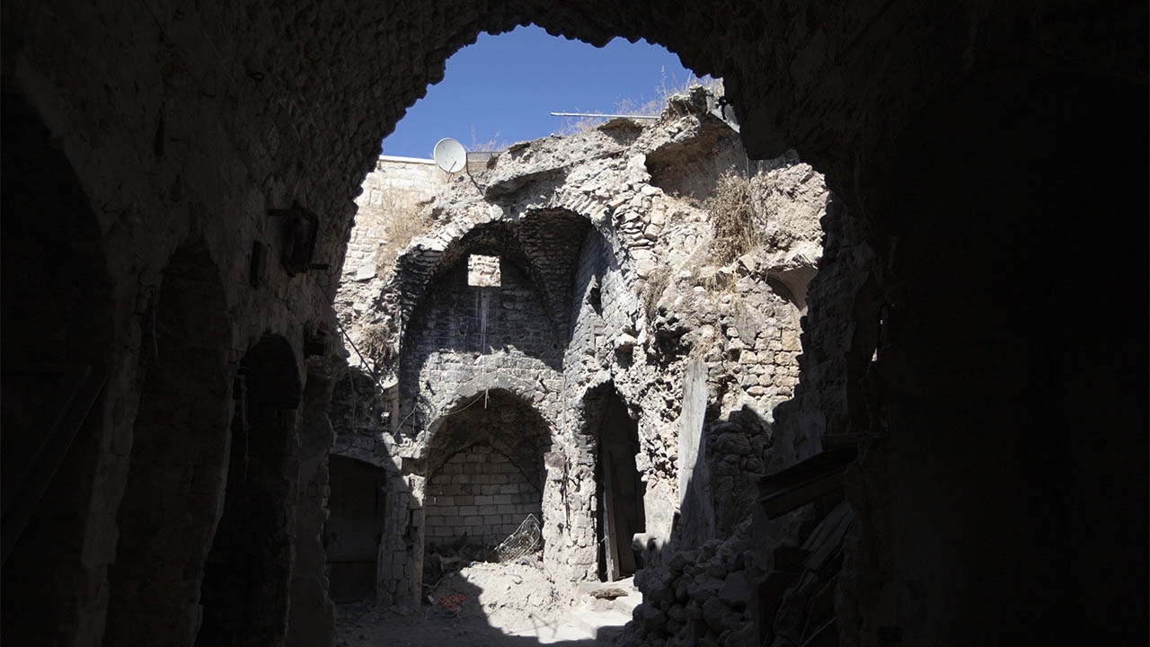 ซากปรักหักพังและบรรยากาศอันหดหู่ของย่านตลาดเก่าในเมืองอะเลปโป แห่งซีเรีย ที่ผ่านช่วงเวลาการต่อสู้และถูกทำลายมายาวนานกว่า 8 ปี ซึ่งขณะนี้ทางการซีเรียได้ร้องขอให้หน่วยงานและองค์การนานาชาติ สนับสนุนทุนช่วยเหลือเพื่อการบูรณะฟื้นฟูเมืองโบราณแห่งนี้.