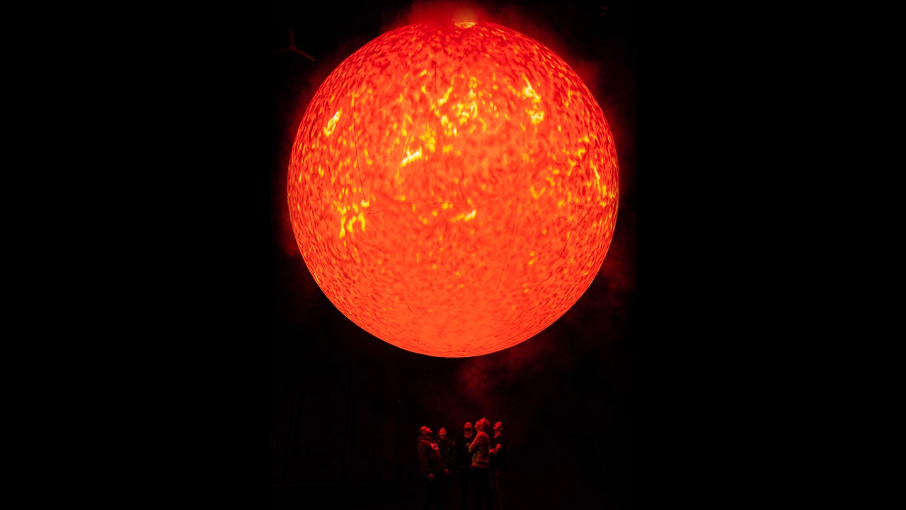 งานศิลปะชื่อ “ซัน” (SUN) เป็นรูปทรงกลมเส้นผ่าศูนย์กลาง 7 เมตร ใช้ข้อมูลดาราศาสตร์จากหอสังเกตการณ์พลังงานแสงอาทิตย์แบบไดนามิกขององค์การนาซา ชี้ให้เห็นถึงดาวฤกษ์ที่ใกล้ที่สุดของเราในเวลาจริง ฝีมือศิลปินชื่ออเล็กซ์ รินสเลอร์ และโรเบิร์ต วอลช์ นักฟิสิกส์แสงอาทิตย์จากมหาวิทยาลัยเซ็นทรัลแลงคาเชียร์ จัดแสดงในวินเทอร์ การ์เดนส์ ซึ่งเป็นส่วนหนึ่งของเทศกาลทัศนศิลป์ไลท์พูล ในเมืองแบล็คพูล ทางตอนเหนือของอังกฤษ.