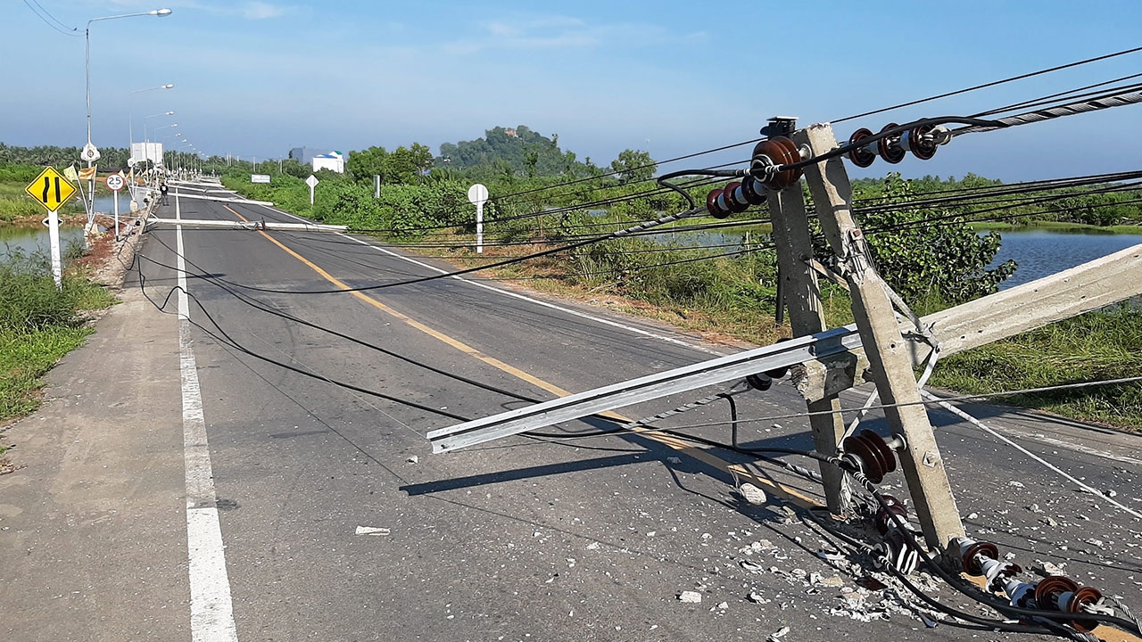 พายุหมุนถล่ม 41 เสาไฟฟ้าล้ม เพชรบุรี-มหาชัย บ้านพังพินาศ