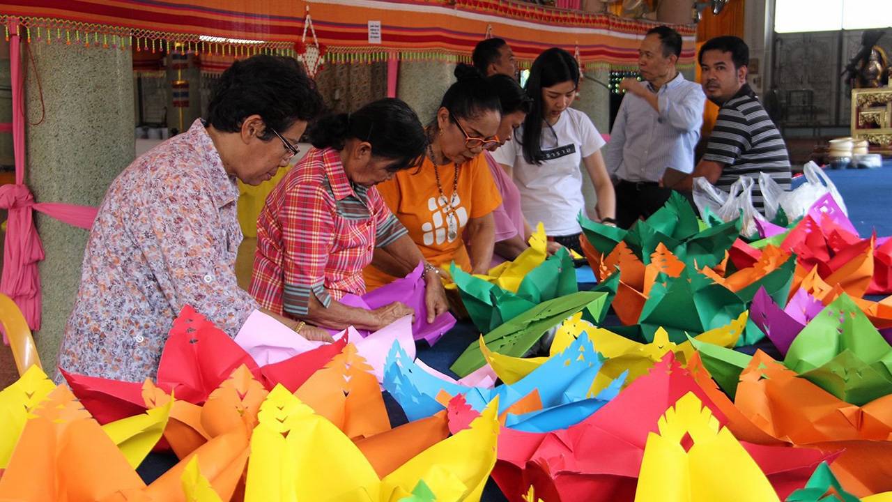 ทุกปีเมื่อถึงช่วงประเพณีลอยกระทง หลายพื้นที่เตรียมจัดงานกันอย่างคึกคัก โดยเฉพาะกระทงที่จะนำมาใช้เน้นผลิตจากวัสดุธรรมชาติ ไม่เป็นพิษต่อสิ่งแวดล้อมชาวไทยเชื้อสายมอญวัดไทรอารีรักษ์ เขตเทศบาลเมืองโพธาราม จ.ราชบุรี ก็เป็นหนึ่งในชุมชนที่ร่วมใจกันประดิษฐ์กระทงสีจากกระดาษสีสันสวยงามหลากหลายขนาด เพื่อเตรียมกิจกรรมจัดงานสืบสานอนุรักษ์ประเพณีลอยกระทงของชาวไทยเชื้อสายมอญ ระหว่างวันที่ 9-11 พ.ย.62นายอภิชาต ศิริอุดมเศรษฐ อายุ 59 ปี ประธานชมรมอย่าลืมโพธาราม เผยว่า วัดไทรอารีรักษ์มีวัฒนธรรมประเพณี มีการจุดประทีปรอบโบสถ์มายาวนานหลาบสิบปีในช่วงเทศกาลลอยกระทง อีกทั้งในอดีตมีชาวจีนอาศัยอยู่จำนวนมาก ทำให้มีวัฒนธรรมที่ผสมผสานกันคนมอญจะบูชาประทีปมีลักษณะสวยงาม จึงนำประทีปแบบมอญมาใช้ที่วัดเพื่อให้เกิดความสวยงาม เอาน้ำมันมาใส่ ทำตีนกาไว้ตรงกลาง อีกทั้งยังได้รับคำแนะนำจากวัดม่วงบน อ.บ้านโป่ง จ.ราชบุรี ที่มีชุมชนชาวไทย-มอญอาศัยอยู่ เขาทำกระทงแบบใช้กระดาษ สืบทอดแนวคิดมาจากหลวงพ่ออุตตมะ จ.กาญจนบุรีนายอภิชาต เผยอีกว่า สมัยก่อนชาวมอญจะนำกระทงใส่ไปในถาดจุ่มลงในน้ำแล้วดึงถาดออก กระทงก็จะลอยไปตามน้ำ แต่เขาจะเอากระบอกไม้ไผ่ไปวางปิด รอให้มีจำนวนมากแล้วค่อยดึงไม้ไผ่ออก ทำให้กระทองลอยเป็นสายออกไปเลยเรียกว่ากระทงสายการลอยกระทงของชาวมอญจัดต่อเนื่องมาทุกปี มีการพัฒนาการพับแบบกระทงที่สวยงามแปลกตา บริเวณกลีบมีการตัดฉลุลวดลายที่สวยงามออกมาทั้งขนาดใหญ่ กลางและเล็กชาวบ้านคนไหนว่างก็จะมาช่วยกันทำกระทงไว้จำหน่ายในงานลอยกระทง นำเงินเข้าวัด กระทงสีทำจากวัสดุที่ย่อยสลายง่าย ข้อดีสามารถลอยน้ำได้นานนับชั่วโมงหรือจนกว่าน้ำมันจะหมดสำหรับในปีนี้นอกจากลอยกระทงแล้วทางวัดยังได้จัดให้นักท่องเที่ยวได้เดินชมซุ้มพวงมะโหตร สักการะพระบรมสารีริกธาตุจำลอง มีเรือสะเดาะเคราะห์ไว้ริมแม่น้ำแม่กลอง พร้อมทั้งอุปคุต เพื่อให้นักท่องเที่ยวได้ร่วมทำบุญด้วย.ศุภโชค สร้อยน้ำ