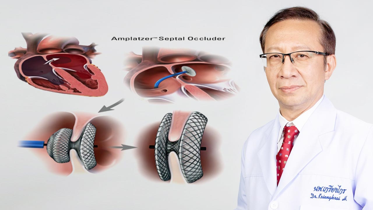 โรคหัวใจแต่กำเนิดชนิดผนังกั้นหัวใจห้องบนรั่ว...เป็นโรคที่เกิดขึ้นได้ทั้งกับเด็กและผู้ใหญ่ หากรูรั่วมีขนาดเล็กอาจยังไม่แสดงอาการ แต่เมื่ออายุมากขึ้นอาการที่ผิดปกตินั้น ก็จะแสดงออกมา เช่น อาการหอบ เหนื่อยง่าย ใจสั่น ถ้าปล่อยไว้...อาจทำให้หัวใจเต้นผิดจังหวะจนถึงหัวใจล้มเหลวได้นพ.เกรียงไกร เฮงรัศมี ผู้อำนวยการ รพ.หัวใจกรุงเทพ และในฐานะอายุรแพทย์โรคหัวใจ ชำนาญด้านหัตถการปฏิบัติรักษาโรคหัวใจและหลอดเลือด บอกว่า สาเหตุโรคหัวใจแต่กำเนิด หมายความว่าตั้งแต่เกิดมา เนื่องจากว่าตอนที่อยู่ในครรภ์มารดาการฟอร์มของผนังหัวใจไม่สมบูรณ์ตั้งแต่ 3 เดือนแรก ก็เลยเป็นช่องโหว่เกิดขึ้นหรือ...ผนังรั่วขึ้น ซึ่งเกิดได้ไม่บ่อย ดูจากสถิติ สมมติว่าเด็กเกิดใหม่จำนวน 1,000 คน มีโอกาสเป็นโรคนี้ได้ 1 คนเท่านั้นย้ำว่า...สาเหตุมาจากการพัฒนาของร่างกาย บางคน...ก็เชื่อว่าจากอาหารไม่พอ ติดเชื้อบางอย่าง ซึ่งเหล่านี้ไม่ร้อยเปอร์เซ็นต์ แต่ว่าอะไรก็ตาม...ที่มีผลต่อการฟอร์มผนังหัวใจที่ไม่สมบูรณ์อย่าเพิ่งตกใจกันจนเกินกว่าเหตุ เอาแค่ว่าโรคนี้...เป็นโรคที่เจอได้ แต่อาการที่เป็นที่มาพบแพทย์มักจะเป็นช่วงวัยรุ่น วัยผู้ใหญ่ เพราะปัญหาจะเกิดขึ้น กระทบต่อการดำเนินชีวิตมากน้อยแค่ไหนนั้น ขึ้นอยู่กับรูรั่วว่าใหญ่หรือเล็ก ส่วนใหญ่...มักจะเป็นขนาดปานกลาง ไม่ใหญ่มากจะเริ่มมีอาการในช่วงวัยรุ่นไปจนถึงอายุมากก็พบได้ที่เคยเจอ อายุ 80 ปีก็เป็นได้ เพิ่งมาทราบในช่วงหลัง“อาการเฉพาะไม่มี ก็เหมือนกับโรคหัวใจทั่วๆไป แต่ว่าจะมีอาการเหนื่อยง่ายเวลาออกแรง ใจสั่น บางคนเป็นมากๆก็เกิดภาวะหัวใจล้มเหลว หรือบางคนพออายุมากขึ้นก็จะมีหัวใจโตขึ้น เกิดภาวะเต้นผิดจังหวะ...ที่อันตรายมากๆก็คือบางคนมาด้วยอาการอัมพาต หมายความว่า...มีลิ่มเลือดที่ไหลผ่านจากหัวใจห้องขวาหลุดผ่านผนังไปห้องบนซ้ายและขึ้นไปสมอง แม้ว่าจะมีโอกาสเกิดขึ้นเป็นส่วนน้อย แต่ก็เป็นกรณีที่อันตราย”ส่วนอีกกลุ่มหนึ่ง เนื่องจากพวกนี้รูใหญ่มาก แล้วก็ความดันในหัวใจห้องซ้ายห้องขวาไม่เท่ากัน จะมาด้วยอาการเขียว...สีม่วง เนื่องจากคนธรรมดาเลือดฝาดจะสีแดง มีออกซิเจนในเลือดสูง ที่เป็นคือเลือดดำเลือดแดงอยู่ปนกัน ก็เลยกลายเป็นสีม่วงๆเนื่องจากออกซิเจนในเลือดน้อย... เลือดช่องทางขวาสีดำที่ยังไม่ได้ฟอกที่ปอดมาปนห้องซ้ายถูกสูบฉีดไปเลี้ยงร่างกาย เมื่อถึงจุดนี้แล้วก็ทำอะไรไม่ได้เลย จะติดอุปกรณ์หรือจะผ่าก็รักษาไม่ได้เลย“เลือดไหลย้อนทางอันตรายมาก ถ้าเป็นแล้ว...ส่วนใหญ่ที่ทำได้ก็คือการให้ยา