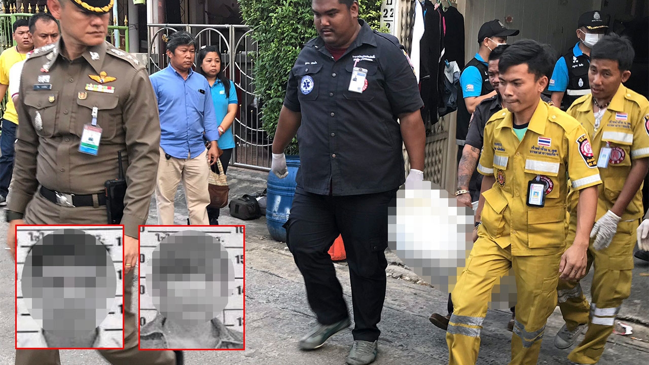 เจ้าหน้าที่มูลนิธิฯนำศพ น.ส.ยุรีย์ เถาวัลย์ (รูปเล็กขวา) ออกจากบ้านในซอยท่าข้าม 28 หลังถูกลูกชายคือนายศิระ สมเดช นักศึกษาชั้นปีที่ 2 มหาวิทยาลัยเทคโนโลยีราชมงคลกรุงเทพ (รูปเล็กซ้าย) ป่วยซึมเศร้าฆ่าหั่นศพ ยัดตู้เย็นเป็นท่อนๆ พอเพื่อน น.ส.ยุรีย์สงสัยติดต่อไม่ได้ มาหาที่บ้าน ก่อนพบศพถูกยัดตู้เย็น นายศิระถึงได้ชักปืนยิงตัวไปตาย รพ.