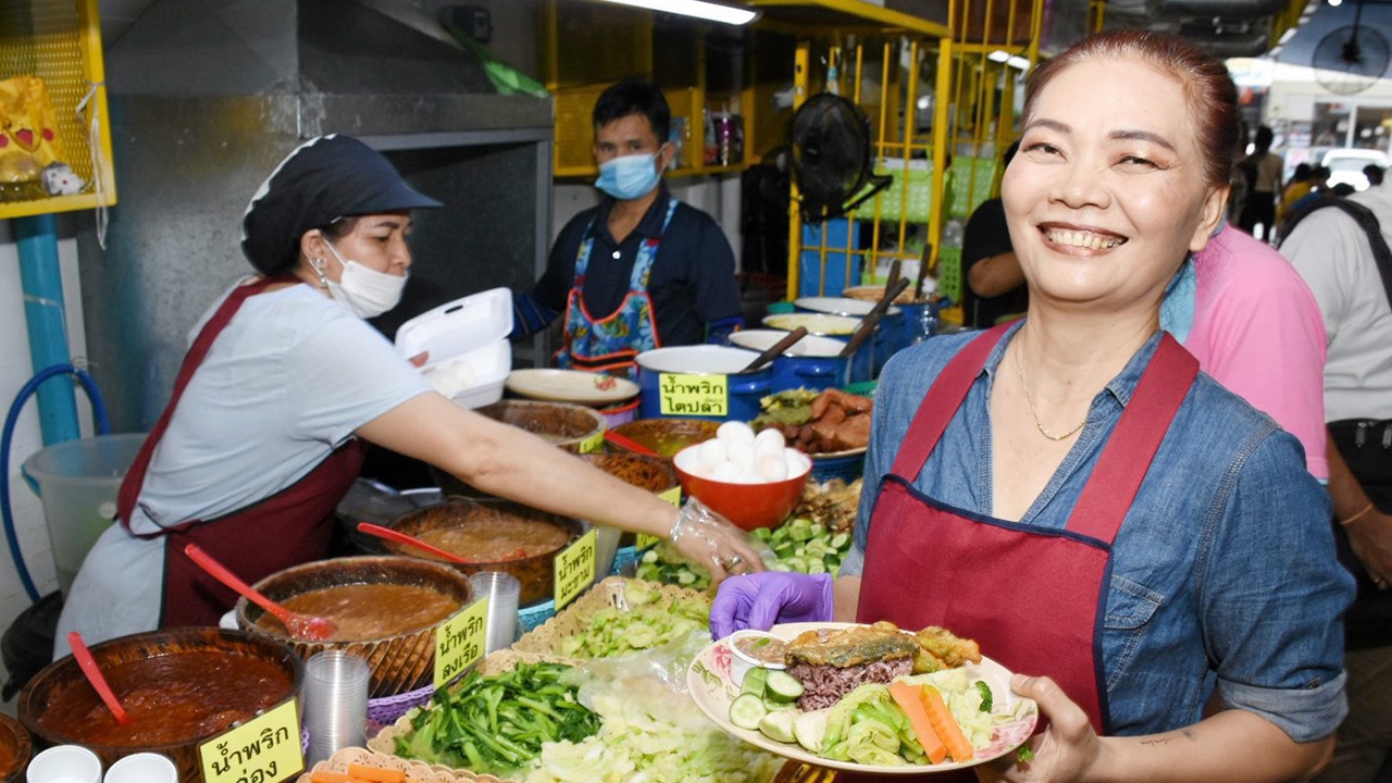 ใจกลางเมืองอย่าง “สยามสแควร์” อาหารฟู้ดคอร์ตในห้างดังๆที่ตั้งอยู่รายล้อม จานเดียวราคาเฉียดร้อย ปริมาณอาจเพียงครึ่งกระเพาะคนอวบระยะสุดท้ายอย่าง “คุณชายแป๊ะ” ลำพังคนมาเที่ยวพร้อมจ่ายแลกกับความสุข สะดวกสบายอยู่แล้ว แต่เหล่ามนุษย์เงินเดือน หนุ่มสาวชาวออฟฟิศถ้าใช้ชีวิตกินในห้างครบ 3 มื้อต่อวัน คงหนีไม่พ้นภาวะเดือนชนเดือน สัปดาห์นี้ “คุณชายแป๊ะ” ขอแนะนำตรอกแคบๆ เชื่อมระหว่างสยามสแควร์ซอย 5 กับซอย 6 หลังธนาคารกรุงเทพ สาขาสยามสแควร์ ซอยเล็กๆยาวประมาณ 50 เมตร เป็นแหล่งรวมของกินอาหารไทยสตรีทฟู้ดส์ นานาชนิดราว 40 ร้าน มารวมกันไว้ในซอยนี้ “Food+Plus” ลูกค้าหลักคือ พนักงานในห้างสรรพสินค้า รวมถึงนักท่องเที่ยวชาวต่างชาติ ขอคัดร้านที่ประทับใจมาให้รู้จักสัก 6 ร้าน เรียกว่าผ่านลิ้นทุกร้าน ดี เด็ด แค่ไหนตามไปอ่านกันเลย ร้านแรกจัดว่าเด็ดสุด “น้ำพริกเรยา” ของ พี่ยา-เรยา แซ่ตั้ง อายุ 51 ปี ชาว จ.สุราษฎร์ธานี โทรศัพท์ 08-5675-4342 น้ำพริกกุ้งเสียบรสชาติเด็ดขาด กุ้งกรุบกรอบรสกลมกล่อม น้ำพริกกะปิเคล้ามะม่วงเปรี้ยวสับซอยกินกับปลาทูของคู่กัน อร่อยคุ้มค่า คุ้มราคา 45 บาท “พี่ขายมา 6 ปีแล้วค่ะ มีทั้งน้ำพริกลงเรือ น้ำพริกมะขาม น้ำพริกกุ้งเสียบ น้ำพริกไตปลา และน้ำพริกกะปิ ตำเองสดใหม่ทุกวัน พร้อมผักบริการ ใครชอบทานผักอะไรเป็นพิเศษบอกพี่ได้เลย พี่จัดการให้เต็มอิ่มค่ะ ข้าวไรซ์เบอร์รีผสมข้าวหอมมะลิ 1 จาน ได้น้ำพริก 2 ถ้วยเล็กๆ เลือกว่าจะทานคู่กับอะไรได้ 1 อย่าง มีทั้งปลาทู ทอดมัน ไข่ต้ม หมูทอด และกุนเชียง อยากให้ลูกค้าได้กินของดีในราคาที่เหมาะสม ลูกค้าพอใจ เราเองอยู่ได้ด้วย ต่างคนต่างเกื้อกูลกัน ด้วยสภาพเศรษฐกิจตอนนี้มันต้องช่วยกัน” พี่เรยากล่าวไว้ ร้านถัดมา “เจ๊แอ๋วเจ้าเก่า ก๋วยเตี๋ยวหมูน้ำตก” ของ เจ๊แอ๋ว-บุญส่ง อินทราชบัณฑิตย์ อายุ 67 ปี ชาว จ.พระนครศรีอยุธยา เบอร์โทรศัพท์ 08-9053-6480 หมูตุ๋นละลายในปาก รสชาติตามแบบฉบับคนอยุธยา “ป้าขายมา 20 กว่าปีแล้ว ด้วยว่าพื้นเพเป็นคนอยุธยา จึงถนัดทำก๋วยเตี๋ยวหมูน้ำตกมาแต่ไหนแต่ไร สูตรของป้าไม่เหมือนใคร คือไร้กะทิ หมูตุ๋นที่ลูกค้าติดใจใช้ส่วนสันคอหมูหั่นเป็นท่อนตุ๋นนาน 4 ชั่วโมง ใครลองต้องติดใจเพราะเนื้อหมูตุ๋นละลายในปาก กระเทียมเจียวทำสดใหม่ให้ความหอม ส่วนเครื่องเคราครบครัน ทั้งเนื้อและเครื่องในหมู คุ้มราคาชามละ 45 บาท ที่ป้าขายไม่แพงเพื่อให้ลูกค้าพนักงานในห้างร้านต่างๆเขารับประทานได้ รวมไปถึงนักท่องเที่ยวชาวต่างชาติด้วย” เจ๊แอ๋วเล่าถึงความแจ๋วในฝีมือ ร้านที่ 3 “ข้าวแกงสุ ๑,๐๐๐ สองพี่น้