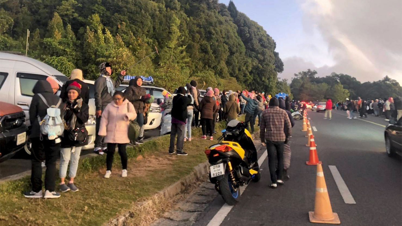 คึกคักรับลมหนาว อากาศลดลงฮวบต่อเนื่อง นักท่องเที่ยวร่วมหมื่นแห่ขึ้นดอยอินทนนท์สัมผัสอากาศติดลบ 1 องศาฯ เหมยขาบขาวโพลน ส่วนที่อุทยานน้ำร้อนแจ้ซ้อน จ.ลําปาง เนืองแน่นไปด้วยผู้คนไปรับไออุ่นจากธรรมชาติ ที่ภูกระดึงและภูเรือเย็นยะเยือก สภาพอากาศหนาวสังเวยชีวิตไปแล้ว 3 ศพ ขณะที่กรมอุตุฯแจ้งเตือนเหนือและอีสานอุณหภูมิลดลงอีก 4-8 องศาฯนักท่องเที่ยวคึกคักรับลมหนาว เมื่อเช้าวันที่ 7 ธ.ค. นายกริชสยาม คงสตรี หัวหน้าอุทยานแห่งชาติดอยอินทนนท์ เปิดเผยว่า ดอยอินทนนท์อุณหภูมิติดลบ 1 องศาเซลเซียส ติดต่อกันเป็นวันที่ 2 แล้ว นับว่าถึงจุดเยือกแข็งที่สุดในรอบปี และมีเหมยขาบโผล่ตามดอกไม้และใบหญ้า มีนักท่องเที่ยวเข้าชม อุทยานฯ 12,114 คน ส่วนที่กิ่วแม่ปานอุณหภูมิ 2 องศาเซลเซียส และที่ทำการอุทยานฯ 6 องศาเซลเซียส ขณะที่พื้นราบ 15 องศาเซลเซียส สภาพอากาศโดยทั่วไปของ จ.เชียงใหม่ หนาวเย็นในช่วงรุ่งสางไปจนถึงช่วงเช้า ชาวบ้านต่างพากันสวมเสื้อกันหนาว เพื่อทำให้ร่างกายอบอุ่น ที่ อ.เวียงแก่น จ.เชียงราย อุณหภูมิลดต่อเนื่องเป็นวันที่ 4 ยอดดอย 3-4 องศาเซลเซียส พื้นราบ 6-7 องศาเซลเซียส ด้านนายประจญ ปรัชญ์สกุล ผวจ.เชียงราย ในฐานะ ผอ.ป้องกันและบรรเทาสาธารณภัยจังหวัดเชียงราย มีหนังสือสั่งการให้ส่วนราชการทุกหน่วยงานใน จ.เชียงราย จัดเตรียมกำลังเจ้าหน้าที่ วัสดุอุปกรณ์ เครื่องจักรกล และยานพาหนะให้พร้อมปฏิบัติงานตลอด 24 ชั่วโมง เพื่อช่วยเหลือประชาชน และเตรียมพร้อมรับมือสถานการณ์ภัยหนาวด้านนายสุทัศน์ มณีแสงดาว ผู้ช่วยผู้ใหญ่บ้านร่มโพธิ์เงิน ต.ปอ อ.เวียงแก่น จ.เชียงราย เปิดเผยว่า นักท่องเที่ยวเดินทางขึ้นมาพักรีสอร์ตในพื้นที่ร่วม 200 คน ช่วงเช้าเดินทางขึ้นยอดภูไปสัมผัสหนาว ชมวิวทะเลหมอกและแสงอาทิตย์ อุณหภูมิ 3-4 องศา เซลเซียส และมีลมกระโชกแรง ส่วนที่ดอยผาตั้ง ต.ปอ อ.เวียงแก่น จุดชมวิวทะเลหมอก นักท่องเที่ยวเดินทางไปพักแรมที่รีสอร์ต และกางเต็นท์ใกล้จุดชมวิว ส่งผลให้ร้านค้า ร้านขายของที่ระลึก และร้านอาหาร ต่างคึกคักในช่วงระยะนี้ ที่บริเวณอุทยานน้ำพุร้อนแจ้ซ้อน อ.เมืองปาน จ.ลําปาง นักท่องเที่ยวจำนวนมากเดินทางเข้ามาภายในอุทยานฯ เพื่อพักผ่อนสัมผัสกับธรรมชาติ อุณหภูมิลดตํ่าสุด 5 องศาเซลเซียส นายเทวัญ จันทร์พรหม หัวหน้าอุทยานน้ำพุร้อนแจ้ซ้อน เปิดเผยว่า สภาพอากาศหนาวเย็น ทำให้นักท่องเที่ยวแห่กันมารับไออุ่นจากบ่อน้ำแร่ในอุทยานฯ และนำไข่มาต้มที่น้ำพุร้อน ส่งผลให้ชาวบ้านใน อ.เมืองปาน มีรายได้เพิ่มขึ้น ด้าน พล.ต.ต.อนุชา อ่วมเจริญ ผบก.ภ.จ.ลําปาง สั