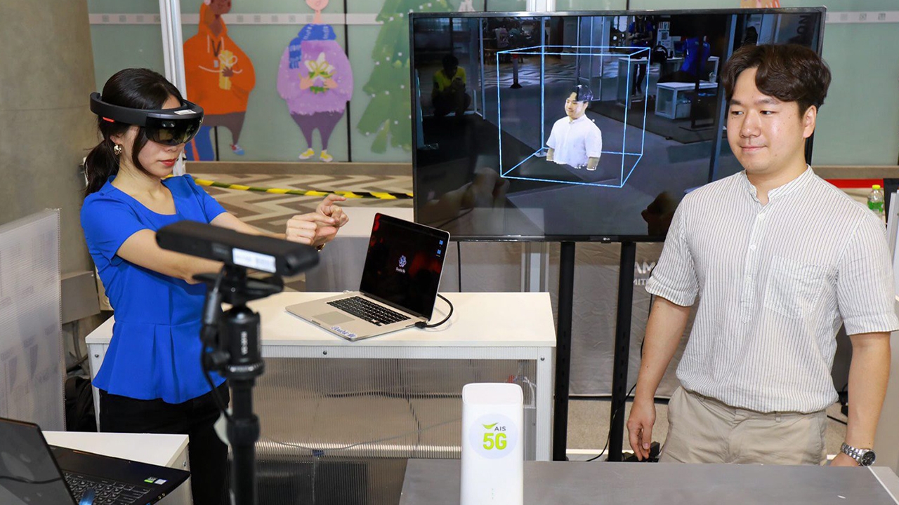 เปิดโชว์โฮโลแกรม (Hologram) เทคโนโลยีบนเครือข่าย 5 จี ใหม่เอี่ยม รองรับโลกการสื่อสารระยะไกล ที่สามารถถ่ายทอดภาพวิดีโอ 3 มิติได้ 360 องศา เปรียบเสมือนได้เห็นตัวเป็นๆของคู่สนทนาผู้สื่อข่าวรายงานว่า ในช่วงโค้งสุดท้ายก่อนการเปิดประมูลคลื่น 5 จี จะมีขึ้นในวันที่ 16 ก.พ.2563 บรรดาค่ายมือถือซึ่งกำลังอยู่ระหว่างทดลองให้บริการ 5 จี กระจายอยู่ตามพื้นที่ต่างๆทั่วประเทศ ต่างขมีขมันเปิดทดสอบบริการที่ตอบโจทย์ทางธุรกิจ (Use Case) อย่างต่อเนื่อง จากที่ก่อนหน้านี้ได้มีการทดสอบบริการ เช่น การใช้ 5 จีควบคุมมือกลระยะไกลในโรงงานอุตสาหกรรม ตลอดจนโชว์รถไร้คนขับ หรือ Autonomous Car เป็นต้นล่าสุด บริษัท แอดวานซ์ อินโฟร์ เซอร์วิส จำกัด (มหาชน) หรือเอไอเอส ได้เปิดทดลอง 5 จี อีก 1 บริการ นั่นคือ โฮโลแกรม (Hologram) ซึ่งเป็นเทคโนโลยีที่ยังไม่เคยเปิดโชว์ที่ไหนมาก่อน โดยเริ่มโชว์ที่งาน “AIS 5G ที่ 1 ตัวจริง ทดสอบแล้วทั่วไทย” ตั้งแต่วันที่ 13 ธันวาคม 2562- 3 มกราคม 2563 ณ สามย่านมิตรทาวน์ กรุงเทพมหานคร ทั้งนี้ โฮโลแกรม (Hologram) เป็นบริการด้านการสื่อสารระยะไกลที่สามารถถ่ายทอดภาพวิดีโอ 3 มิติ ได้แบบ 360 องศา มีความเสมือนจริงและเรียลไทม์ ภายใต้เทคโนโลยี 5 จีโดยเทคโนโลยีโฮโลแกรมที่ถูกนำมาทดลองใช้งานในครั้งนี้ ได้แก่ HoloPort เป็นการสาธิตการสื่อสารระยะไกลระหว่างบุคคลต้นทางและปลายทางที่อยู่ต่างสถานที่กัน ให้สามารถโต้ตอบแบบตัวต่อตัวและมองเห็นภาพคู่สนทนาได้แบบ 3 มิติ รอบด้าน 360 องศาโดยที่ฝ่ายต้นทางจะเป็นผู้สร้างภาพโฮโลแกรม 3 มิติของตัวเองผ่านหน้ากล้อง เพื่อให้ระบบประมวลผลเปลี่ยนภาพ 2 มิติ ไปเป็นภาพเคลื่อนไหวแบบ 3 มิติ และส่งเป็นภาพเคลื่อนไหวแบบ 3 มิติออกมา โดยวิดีโอแบบ 3 มิตินี้ จะถูกส่งแบบสตรีมมิงไปยังผู้รับผ่านเครือข่าย 5 จี ซึ่งปลายทางหรือผู้รับจะต้องสวมแว่นตา Hololens เพื่อให้วัตถุในคอมพิวเตอร์แสดงผลเป็นภาพโฮโลแกรม 3 มิติ หรือเป็นภาพเสมือนจริงขึ้นมา ทำให้รู้สึกว่าคู่สนทนาปรากฏตัวอยู่ตรงหน้าในสถานที่เดียวกัน ส่วนบริการต่อมา ได้แก่ Shared Mixed Reality เป็นการสาธิตภาพโฮโลแกรม 3 มิติที่ผู้ใช้งานมากกว่า 1 คน สามารถมองเห็นภาพวิดีโอวัตถุ 3 มิติเดียวกันได้ ในสถานที่เดียวกัน ด้วยมุมมองแบบ 360 องศา ผ่านแว่นตา Hololens ซึ่งจะช่วยให้กลุ่มผู้ใช้งานสามารถแชร์ไอเดียและพัฒนาชิ้นงานร่วมกันได้พร้อมกันแบบเรียลไทม์ทั้งนี้ เทคโนโลยีโฮโลแกรม สามารถนำไปประยุกต์ใช้ในการประชุมธุรกิจ, การศึกษาทางไกล, การแพทย์, การเกษตร, งานด้านแฟชั่นและบันเทิง, การพัฒนาเกม, แอนิเมชัน 3 มิติ, AR (Augmented Reality), VR (Virtual Reality) และ MR (Mixed Reality) ซึ่งจะช่วยสร้างความชัดเจน