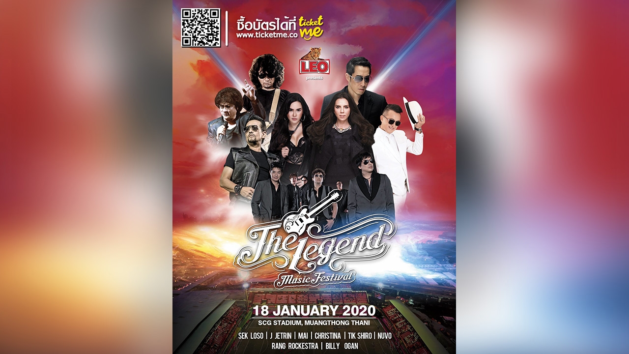เทศกาลดนตรี Leo Presents “The Legend Music Festival 2020” รวมพลัง 8 สุดยอดศิลปินครั้งยิ่งใหญ่แห่งยุค 90’s เสก โลโซ/บิลลี่ โอแกน/หรั่ง ร็อคเคสตร้า/นูโว/เจ-เจตริน/ติ๊นา-คริสติน่า/ใหม่ เจริญปุระ และติ๊ก ชิโร่ พร้อมเขย่าเวที SCG Stadium มาราธอน 8 ชั่วโมงเต็ม เสาร์ที่ 18 ม.ค.นี้ มาดู 8 เหตุผล กับ 8 สุดยอดศิลปินดังยุค 90’s ที่ทำไมต้องควรไปดู คริสติน่า อากีล่าร์ ฉายาว่า Queen of Dance ใหม่ เจริญปุระ ร็อกเกอร์สาว เสกสรรค์ ศุขพิมาย “เสก โลโซ” นักร้องระดับตำนาน บิลลี่ โอแกน เพลงร็อกเข้มข้น นูโว วงที่มีเพลงฮิตมากมาย เจ-เจตริน เจ้าพ่อ Rapper ติ๊ก ชิโร่ ความสามารถหลากหลาย หรั่ง ร็อคเคสตร้า เสียงร้องมีบันไดเสียงที่กว้างเสมือนฟ้าประทาน ซื้อบัตรได้ที่ www.ticketme.co ติดตามทาง www.facebook.com/thelegendmusicfestival