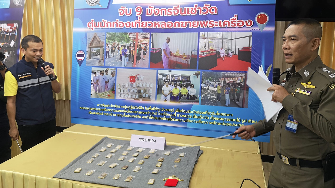 ยังคงเป็นข่าวออกมาอย่างต่อเนื่องแก๊งมิจฉาชีพชาวต่างชาติที่ฉวยโอกาสเข้ามาก่อคดีสร้างความเสียหายกับนักท่องเที่ยวต่างชาติ และทำลายภาพลักษณ์การท่องเที่ยวไทยล่าสุด พล.ต.ท.สมพงษ์ ชิงดวง ผบช.สตม. พล.ต.ต.อาชยน ไกรทอง ผบก.ตม.3 พ.ต.อ.รัชธพงศ์ เตี้ยสุด ผกก.สส.บก.ตม.3 พ.ต.ท.เจษฎา บุรินทร์สุชาติ รอง ผกก.สส.บก.ตม.3 จับกุมนักท่องเที่ยวชาวจีน 9 ราย ร่วมกันหลอกลวงนักท่องเที่ยวชาวจีนชาติเดียวกันแก๊งชาวจีนทั้ง 9 คนเข้ามาแฝงตัวเป็นลูกศิษย์ของ วัดห้วยกรุ ต.บางพระ อ.ศรีราชา จ.ชลบุรี หากินกับการหลอกขายพระเครื่องพระบูชาให้กับกรุ๊ปทัวร์นักท่องเที่ยวจีนที่มากราบไหว้สิ่งศักดิ์สิทธิ์ที่วัดห้วยกรุหลังผู้ต้องหาชาวจีนทั้ง 9 คน ทำทีเข้ามากราบสักการะสิ่งศักดิ์สิทธิ์ภายในวัดห้วยกรุ วันต่อมานักท่องเที่ยวจีนกลุ่มนี้ได้กลับเข้ามาที่วัดพร้อมกับนุ่งขาวห่มขาว อ้างมานั่งสมาธิที่วัดทั้งวันไม่ยอมออกไปไหนวัดต้องจัดสถานที่ให้ปฏิบัติธรรมบริเวณศาลาวัด จนมีกรุ๊ปทัวร์จีนที่นิยมมากราบไหว้สิ่งศักดิ์สิทธิ์ที่วัดเป็นประจำวันละ 1-2 เที่ยว ชาวจีนทั้ง 9 คนจะนำนักท่องเที่ยวจีนกราบไหว้ตามจุดต่างๆภายในวัด ตอนแรกทางวัดคิดว่าน่าจะเป็นเรื่องที่น่ายินดีที่ชาวต่างชาติศรัทธาในพระธรรมแต่พอมีกรุ๊ปทัวร์จีนใกล้กลับ ลูกวัดเห็นว่ากลุ่มชาวจีนทั้ง 9 คนแนะนำให้เช่าวัตถุมงคลเป็นพระเครื่องหลากหลายรูปแบบให้แก่กลุ่มคณะทัวร์ชาวจีนทางวัดกังวลพฤติกรรมเข้าข่ายทำผิดกฎหมาย วัดแจ้งให้เจ้าหน้าที่ บก.ตม.3 เข้ามาตรวจสอบพบว่า กลุ่มชาวจีนทั้ง 9 คนเข้ามาประเทศไทยด้วยวีซ่านักท่องเที่ยว และเพิ่งเข้ามาประเทศไทยเมื่อเดือน พ.ย.รับเพิ่งทำเป็นครั้งแรกผู้ต้องหารับสารภาพว่า มีชายชาวจีนเป็นผู้ว่าจ้างให้ขายวัตถุมงคลแก่นักท่องเที่ยวให้เดือนละ 20,000 บาท แต่อ้างเพิ่งเข้ามาทำกันได้เพียง 5 วัน ก่อนถูกชุดสืบสวน ตม.จับกุมเสียก่อนผู้ต้องหาชาวจีนทั้ง 9 คนมีหน้าที่พยายามโน้มน้าวให้เช่าวัตถุมงคลพระเครื่องประเภทต่างๆ พร้อมอธิบายพุทธคุณ และอภินิหารหลอกขายในราคาสูงกว่าความเป็นจริง ตั้งแต่หลักพันถึงหมื่นบาทตามแต่ความศรัทธาพฤติกรรมของกลุ่มมิจฉาชีพชาวต่างชาติที่อาศัย “วีซ่านักท่องเที่ยว” เข้ามาสร้างความเดือดร้อน ทำความเสียหายให้กับประเทศไทยในหลายรูปแบบ มีผลกระทบต่อการท่องเที่ยวไทยเป็นบางส่วนพฤติกรรมของแก๊งมิจฉาชีพชาวต่างชาติที่หาช่องทางเข้ามาก่อคดีทุกรูปแบบในเมืองไทย ทำความสับสนและสร้างความเสียหายอย่างมาก ยังดีที่ บก.ตม.3 มาตรวจสอบจับกุมใช้เวลาไม่นานก่อนทำเสียหาย