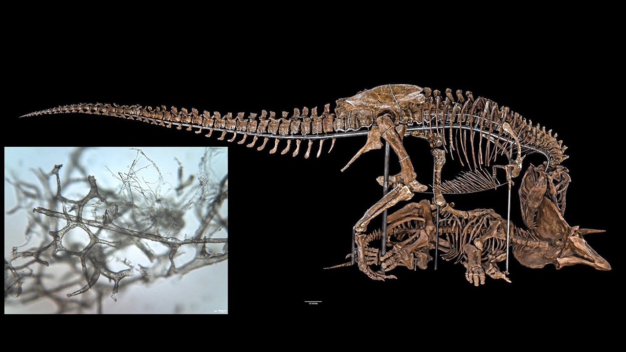 ภาพ : Boatman et al. and Smithsonian Instituteหนึ่งในสิ่งที่นักวิทยาศาสตร์พยายามหาคำตอบในซากดึกดำบรรพ์หรือฟอสซิลโครง กระดูกไดโนเสาร์ ก็คือโครงสร้างเนื้อเยื่ออ่อนถูกเก็บไว้ในกระดูกอย่างไร เนื่องจากความเชื่อทางวิทยาศาสตร์เกี่ยวกับส่วนที่เป็นโปรตีนจะไม่สามารถอยู่รอดได้มากกว่า 1 ล้านปี เมื่อเร็วๆนี้ นักวิทยาศาสตร์จากมหาวิทยาลัยวิสคอนซิน สเตาท์ ในสหรัฐอเมริกา ผู้นำการวิจัยครั้งใหม่ ได้นำเทคโนโลยีสมัยใหม่มาใช้ตรวจสอบถึงวิธีการเก็บรักษาโครงสร้างเนื้อเยื่อโบราณเหล่านั้นโดยการใช้เทคนิคอินฟราเรดสเปกโตรสโกปีร่วมกับกล้องจุลทรรศน์ ในวิธีที่เรียกว่า Synchro tron radiation-based Fourier-trans form infrared spectromicros copy (SR-FTIR) ดำเนินงานโดยแผนกแอดวานซ์ ไลก์ทซอส (Advanced Light Source-ALS) แห่งเบิร์กลีย์ แล็บ มาวิเคราะห์ฟอสซิลกระดูกแข้งไดโนเสาร์ไทแรนโนซอรัส เร็กซ์ (Tyrannosau rus rex) หรือ ที.เร็กซ์ อายุ 66 ล้านปี เพื่อหาหลักฐานว่ามีระบบไหลเวียนโลหิตที่กระดูกสันหลัง พิสูจน์ว่าโครงสร้างที่มีอยู่ในฟอสซิลนั้นเป็นเนื้อเยื่อคอลลาเจนดั้งเดิมของไดโนเสาร์ รวมถึงตรวจสอบวิธีการจัดเรียงโมเลกุลคอลลาเจน และใช้เทคนิคการเรืองรังสีเอกซ์ (x-ray fluorescence) วิเคราะห์ชนิดและการกระจายของโลหะที่มีอยู่ในเส้นเลือดของ ที.เร็กซ์SR-FTIR ถ่ายภาพและสเปกตรัมของฟอสซิลและเปิดเผยการกระจายของรูปแบบการพับตัวของโปรตีนซึ่งช่วยระบุกลไกการเชื่อมโยงที่เป็นไปได้ของโมเลกุล ส่วน XR microprobe ทำให้เกิดการปรากฏตัวของแร่เหล็กออกไซด์เกอไทต์ (goethite) นักวิทยาศาสตร์ระบุว่าออกไซด์ไฮดรอกไซด์ (oxyhydroxide) ที่มีความเสถียรสูงบนเส้นโลหิตน่าจะมีส่วนช่วยในการเก็บรักษาโมเลกุลของสารอินทรีย์.
