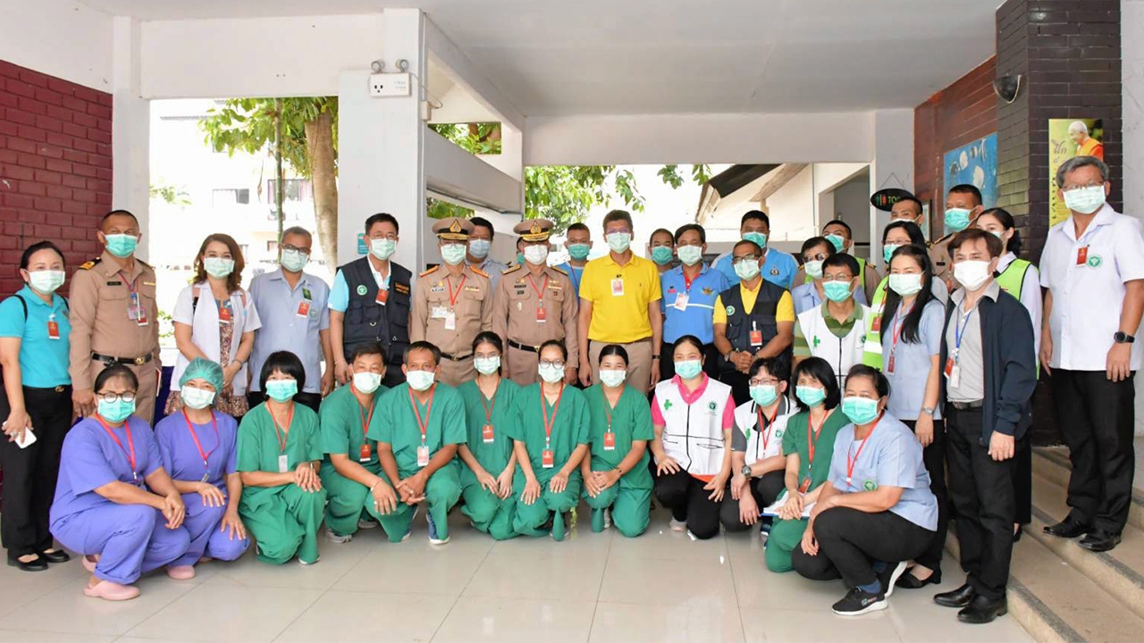 ภาพ : ส่วนหนึ่งของคณะแพทย์ พยาบาล และบุคลากรทางการแพทย์ ที่เสียสละในการร่วมปฏิบัติหน้าที่ดูแลคนไทย 138 คน ที่เดินทางกลับจากเมืองอู่ฮั่น จีน เพื่อเฝ้าดูอาการการติดเชื้อ ไวรัส “โคโรนา 2019” หรือโควิด-19 ในศูนย์ดูแลฯ ในอาคารรับรองฐานทัพเรือสัตหีบ จ.ชลบุรี.ไวรัส “โคโรนา 2019” หรือ “โควิด-19” ที่แพร่ระบาดอย่างหนักในเมืองอู่ฮั่น ประเทศจีน และขยายวงกว้างไปในหลายประเทศทั่วโลก รวมทั้งประเทศไทย กลายเป็นที่วิตกของคนทั่วโลก คร่าชีวิตของผู้คนไปแล้วเกือบ 2 พันกว่าราย มีผู้ป่วยหลายหมื่นรายสำหรับคนไทยที่อยู่ในเมืองอู่ฮั่น รัฐบาลไทย ได้ส่งเครื่องบินสายการบิน แอร์เอเชีย ไปรับตัวคนไทยจำนวน 138 คน ที่เมืองอู่ฮั่น ประเทศจีนจุดที่มีการแพร่ระบาดอย่างหนักของเชื้อไวรัสมรณะเดินทางกลับประเทศไทย เมื่อวันที่ 4 ก.พ.2563 โดยการประสานงานของ กระทรวงการต่างประเทศ คนไทยที่ถูกกักตัวดูอาการ 14 วัน ต่างหอบหิ้วสัมภาระเดินทางกลับสู่ครอบครัว หลังผลการตรวจของแพทย์ยืนยันว่าแต่ละคนไม่ติดเชื้อไวรัสโควิด-19.ก่อนที่ทั้งหมดจะถูกนำไปกักตัวเฝ้าดูแลไว้ที่อาคารรับรองภายในฐานทัพเรือสัตหีบ จ.ชลบุรี เพื่อรอดูอาการเป็นเวลา 14 วัน และเมื่อวันที่ 19ก.พ.ที่ผ่านมา คนไทยทั้งหมดถูกส่งตัวกลับสู่อ้อมกอดของครอบครัวแล้ว เหลือเพียง1คน ที่พบว่ามีการติดเชื้อและอยู่ระหว่างการรักษาตัวในโรงพยาบาลภารกิจเฝ้าดูแลคนไทยที่กลับจากเมืองอู่ฮั่นครั้งนี้ต้องขอชื่นชมเจ้าหน้าที่ทุกหน่วยงาน คณะแพทย์ พยาบาล และบุคลากรทางการแพทย์ทุกคนที่เสียสละและเสี่ยงอันตรายในการปฏิบัติหน้าที่ จึงต้องติดตามภารกิจมาเล่าสู่กันฟัง บุคลากรทางการแพทย์ในศูนย์ดูแลฯ สวมชุดและอุปกรณ์ป้องกันการติดเชื้อโรคอย่างรัดกุม.นพ.สุเทพ เพชรมาก ผู้ตรวจราชการเขตสุขภาพที่ 6 เผยว่า หลังรัฐบาลส่งเครื่องบินเที่ยวพิเศษไปรับคนไทยกลับ วันแรกพบว่ามีไข้ 4 คน และจัดอยู่ในกลุ่มเสี่ยง จึงได้แยกตัวไปอยู่ รพ.สมเด็จพระนางเจ้าสิริกิติ์ กรมแพทย์ทหารเรือ ทันที ผลการตรวจไม่พบเชื้อไวรัสโควิด-19ส่วนที่เหลืออีก 134 คน รวมทั้งทีมแพทย์อีก 15 คน ถูกนำขึ้นรถบัสไปกักตัวไว้ที่อาคารรับรองของกองทัพเรือ เฝ้าสังเกตอาการของทุกคน ผ่านไป 4 วัน พบว่ามีผู้ติดเชื้อเพียง 1 ราย จึงได้แยกไปรักษาตัวที่ รพ.ชลบุรีซึ่งขณะนี้อาการดีขึ้นเป็นลำดับ นายอนุทิน ชาญวีรกูล รมว.สาธารณสุข ไปตรวจดูอุปกรณ์การแพทย์ที่ใช้ในการป้องกันเชื้อไวรัสฯ และให้กำลังใจคณะแพทย์พยาบาล และบุคลากรทุกคน.“ในช่วง 3 วันแรก ทุกคนต้องอยู่ในห้องนอนของแต่ละคน เพื่อเข้าสู่ระบบคั