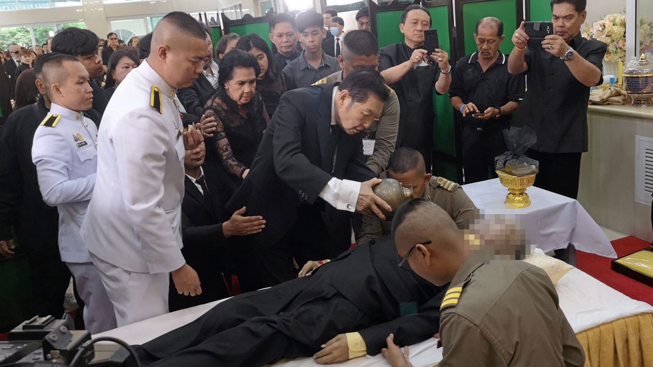 นายชรินทร์ นันทนาคร เพื่อนสนิทพร้อมญาติ ร่วมพิธีน้ำหลวงอาบศพ ร.ต.สุเทพ วงศ์กำแหง ศิลปินแห่งชาติ สาขาศิลปะการแสดง 2533 ที่ศาลาพระครูประจักษ์ วัดธาตุทอง หลังเสียชีวิตด้วยโรคชรา สิริอายุ 86 ปี.