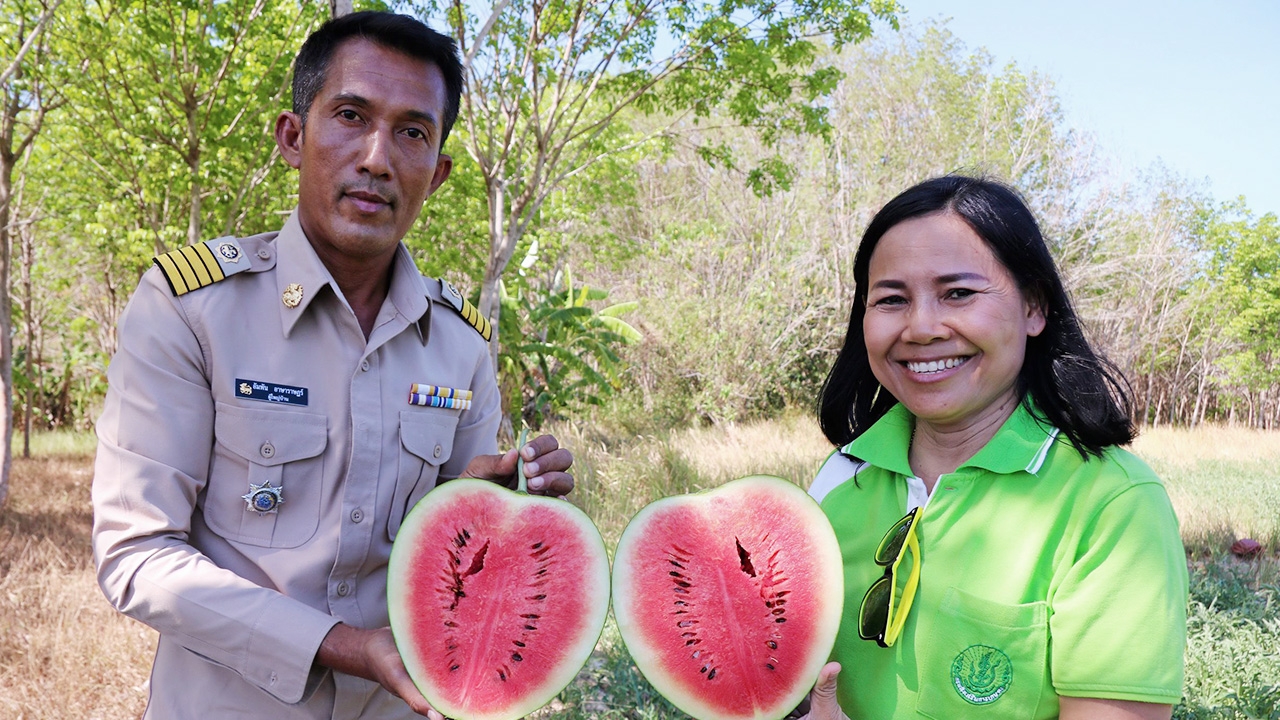 ช่วงนี้ไม่ว่าจะไปที่ไหนก็มีแต่คนบ่นว่าอากาศร้อน ผลไม้ที่สามารถดับร้อน และแก้กระหายได้ดีก็คือ “แตงโม” ที่หมู่ 6 ต.พรุใน อ.เกาะยาว จ.พังงา เกษตรกรได้รวมกลุ่มกันปลูกแตงโมปลอดสารพิษในทุ่งนาหลังฤดูกาลเก็บเกี่ยว โดยนำผลแตงโมใส่บล็อกรูปหัวใจ เพื่อเพิ่มมูลค่าและประชาสัมพันธ์การท่องเที่ยวเชิงเกษตรนายประดิษฐ์ วิจิตรนวี หรือ “บังอุบ” เกษตรกรชาวสวนแตงโม กล่าวว่า หลังฤดูการทำนาเสร็จสิ้น เกษตรกรในพื้นที่จะปลูกแตงโม ซึ่งเป็นผลไม้ที่ได้รับความนิยมในช่วงหน้าร้อนโดยรวมกลุ่มกันปลูก 11 ราย พันธุ์ที่ปลูกได้แก่ กินรี และไฮร็อก เน้นปลูกแบบปลอดภัย ไม่มีการใช้สารเคมี นอกจากนี้ ยังได้ทดลองปลูกแตงโมในบล็อกรูปหัวใจ เพื่อเพิ่มมูลค่าและประชาสัมพันธ์การท่องเที่ยวเชิงเกษตรที่ผ่านมาได้รับคำแนะนำและสนับสนุนบล็อกรูปหัวใจจากสำนักงานเกษตรอำเภอเกาะยาว ส่วนวิธีการไม่ยุ่งยาก หลังแตงโมผลิดอกประมาณ 7-8 วัน จะเห็นผลแตงโม ให้คัดเลือกผลแตงโมที่เรียวยาวได้รูปขนาดประมาณ 6 นิ้ว ไว้ผลเดียว ส่วนที่เหลือตัดทิ้งจากนั้นเอาบล็อกรูปหัวใจขนาด 10 นิ้ว มาสวมผลแตงโมเอาไว้ รดน้ำตามปกติ เฝ้าระวังอย่าให้โดนแดดจัดเพราะผิวแตงโมจะเสีย หาหญ้า ฟาง หรือวัสดุมาคลุม ภายใน 45-50 วัน ก็จะได้แตงโมรูปหัวใจด้าน นางอุษณี เจียมรา เกษตรอำเภอเกาะยาว เผยว่า สำนักงานเกษตรอำเภอเกาะยาวได้ส่งเสริมให้เกษตรกรปลูกพืชในฤดูแล้งเพื่อเพิ่มรายได้ในภาวะราคาพืชเศรษฐกิจหลักมีความผันผวนในด้านราคาโดยส่งเสริมการปลูกแตงโมหลังการทำนา พื้นที่ 40 ไร่ จะได้ผลผลิตเฉลี่ย 3,100 กิโลกรัมต่อไร่ เกษตรกรสามารถจำหน่ายได้ราคากิโลกรัมละ 20-25 บาท สร้างรายได้ให้เกษตรกร ประมาณ 3,000,000 บาท เน้นย้ำให้เกษตรกรปลูกโดยไม่ใช้สารเคมีเพื่อความปลอดภัยของผู้บริโภคการปลูกแตงโมใส่บล็อกรูปหัวใจเป็นสิ่งแปลกใหม่ที่นักท่องเที่ยวให้ความสนใจ จึงขอเชิญชวนให้บริโภคแตงโมกันให้มากๆ เนื่องจากราคาถูก แต่มีประโยชน์กับร่างกายมาก.สุขสันต์ สมทรัพย์